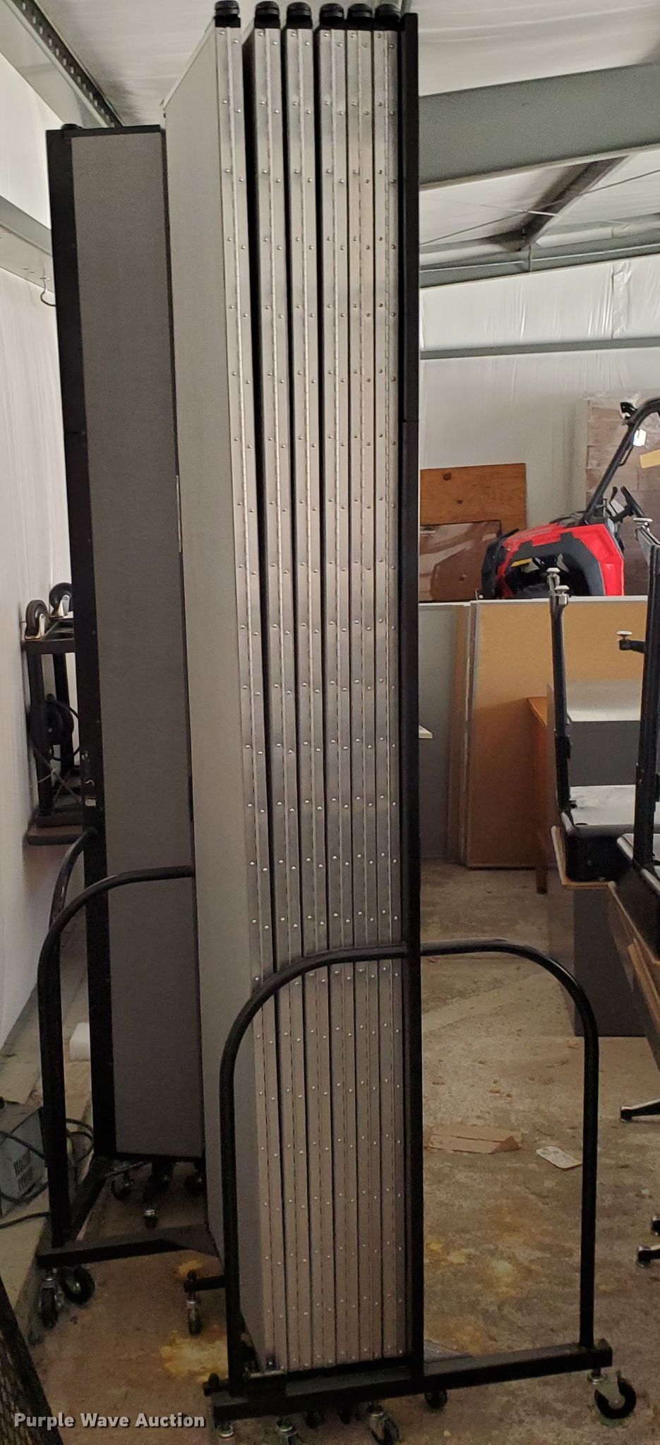 Purple Wave is selling a used Furniture in Kansas. This item is a (2) Screenflex room dividers with the following: Approximately 24'W extended, Approximately 8'H