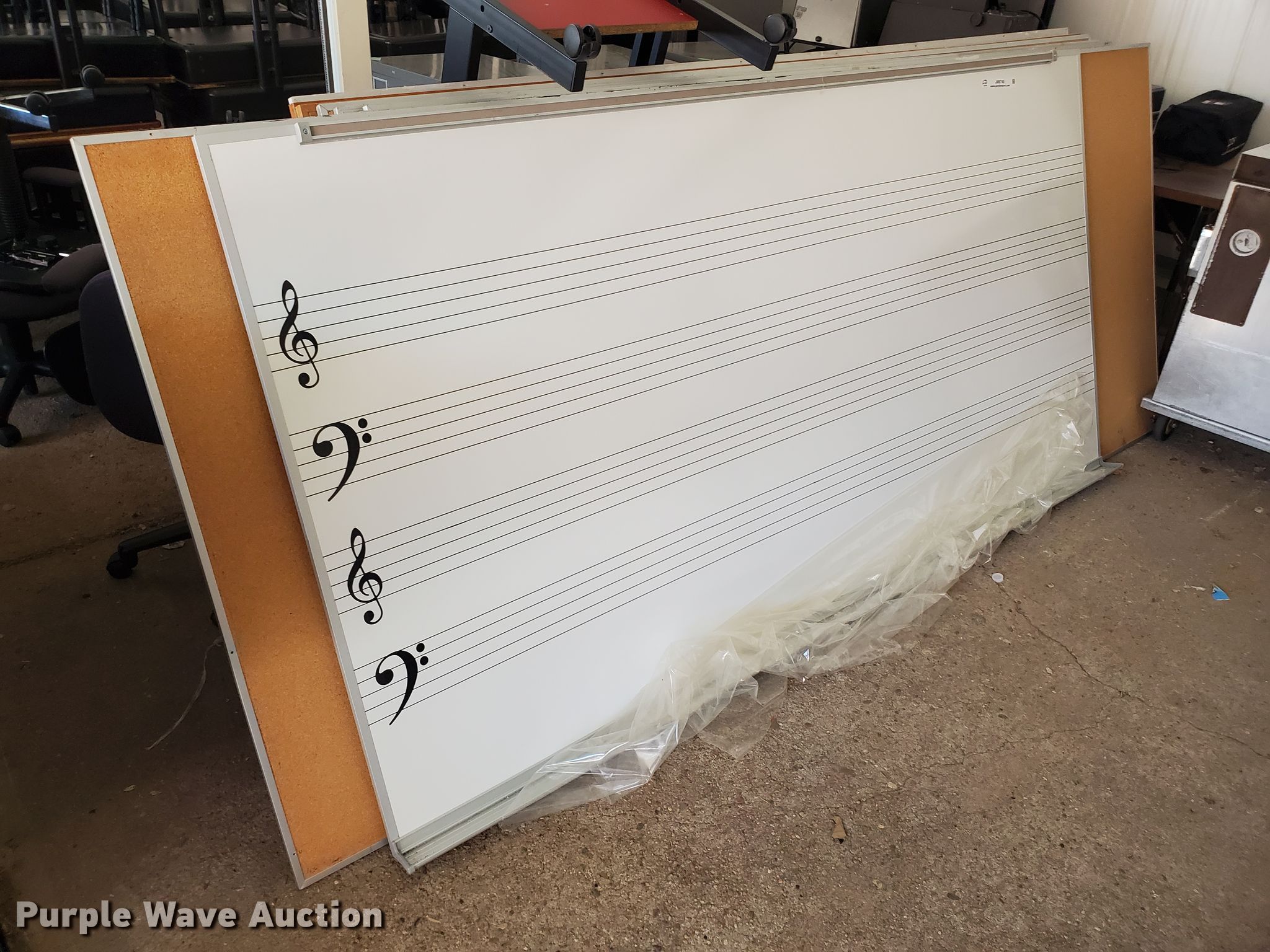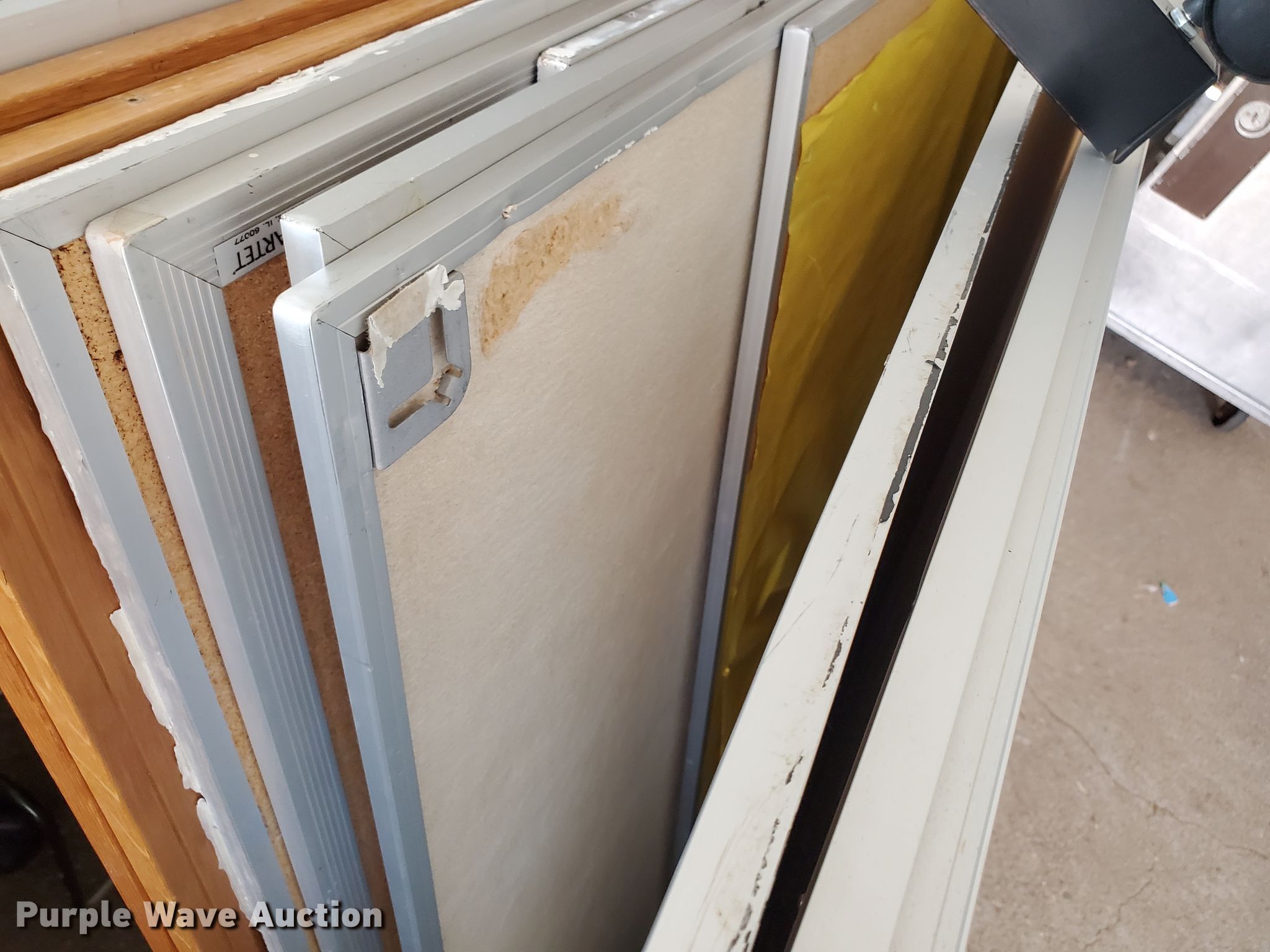Purple Wave is selling a used Office Supplies and Equip. in Kansas. This item is a Office supplies with the following: (10) cork boards, Whiteboard