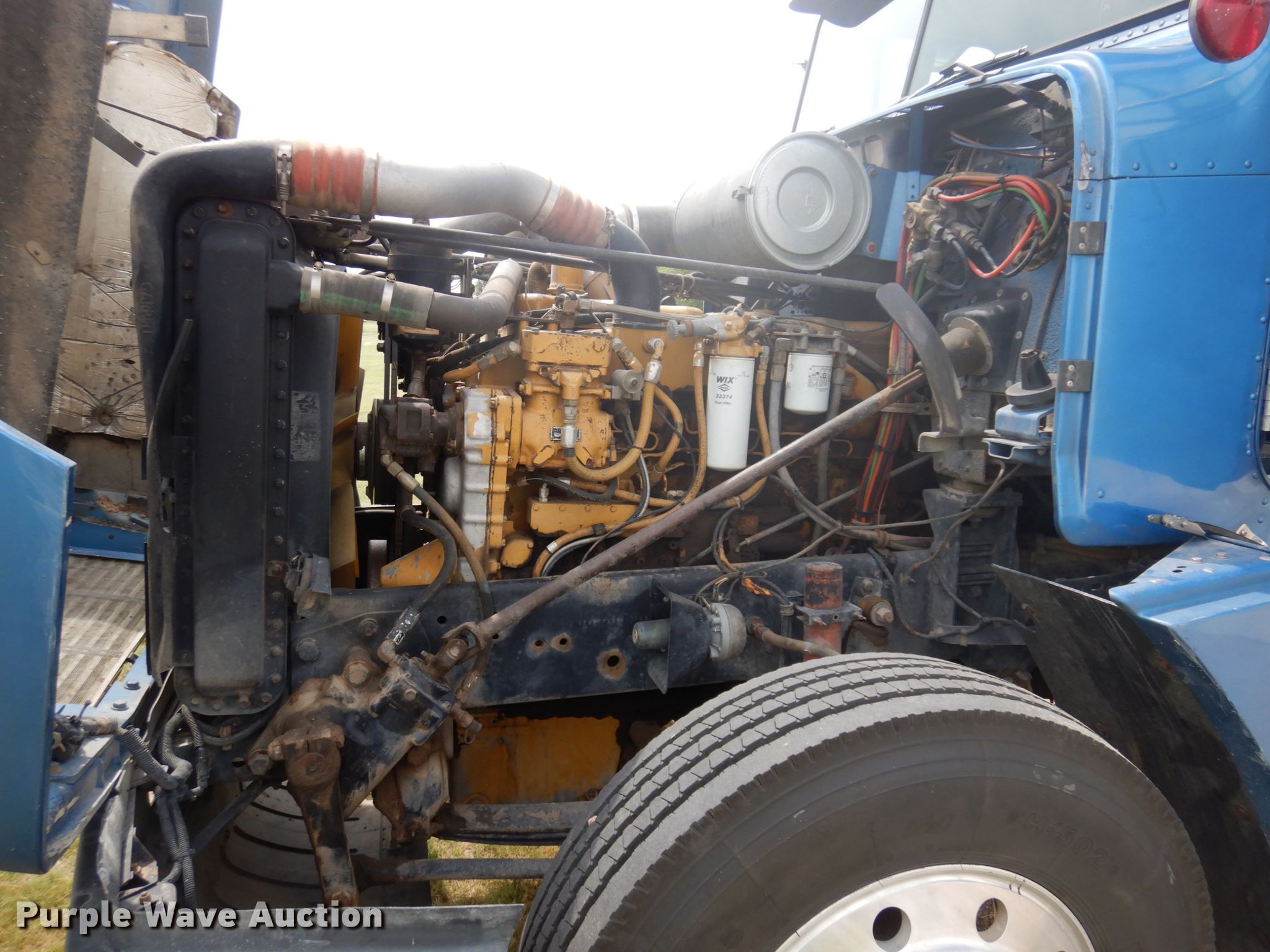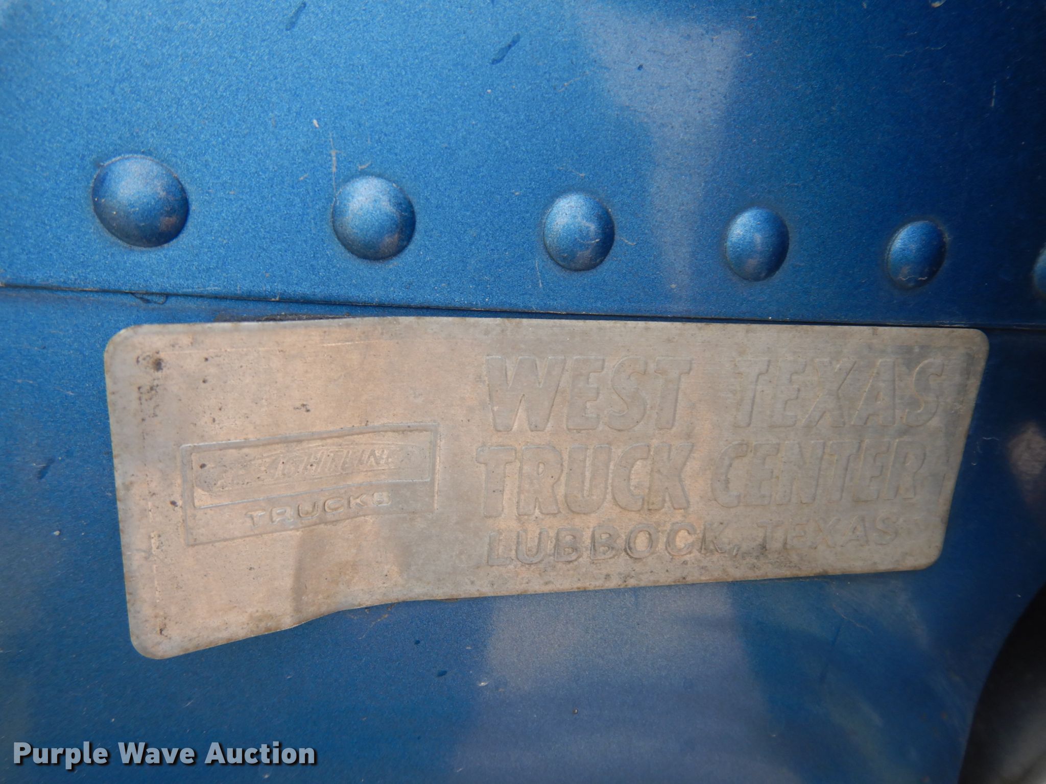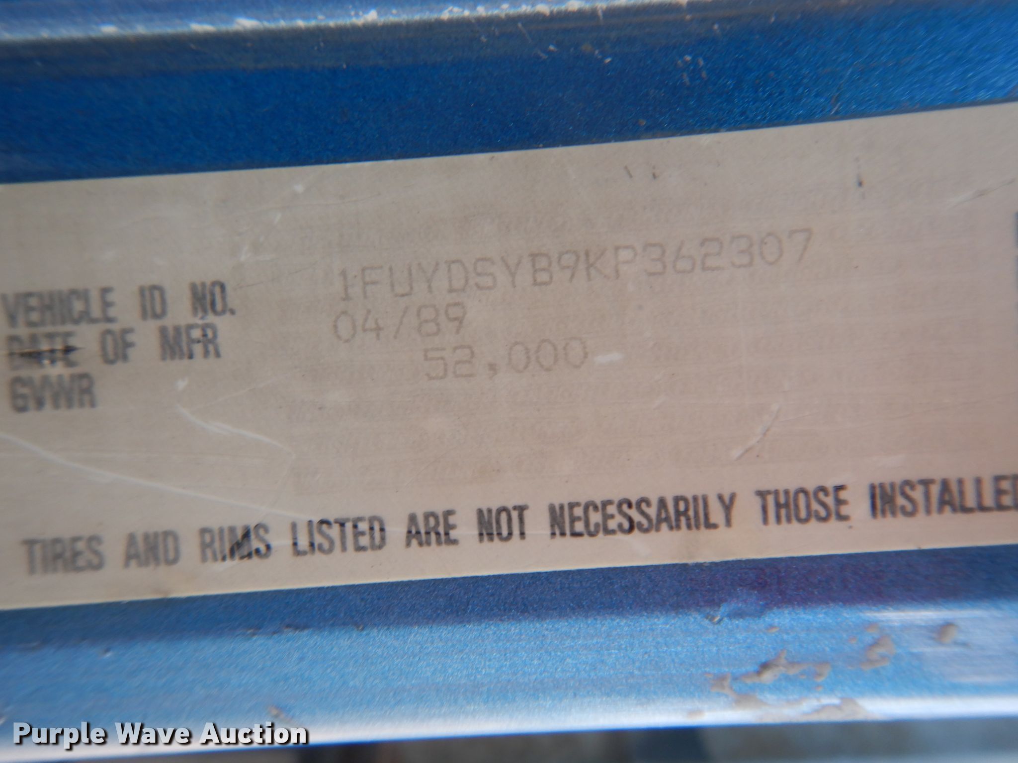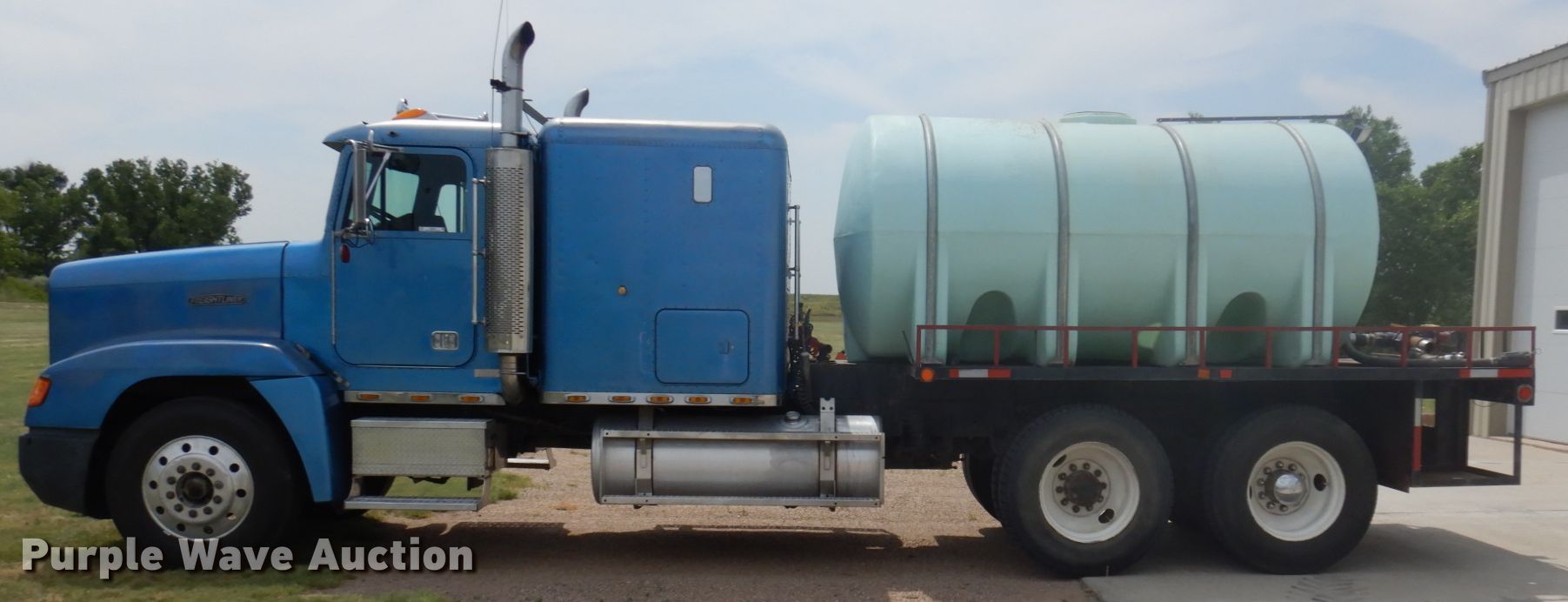 1989 Freightliner FLD120 flatbed truck. 832,712 miles on odometer. Engine Caterpillar 3406B, Serial: 4MG56965, Displacement: 14.6L, Cylinders: 6, Fuel type: Diesel. Transmission Eaton Fuller, Manual, Speed: 13. Chassis Axles: Tandem, Differential lock: Inter-axle, Suspension: Air, Dump valves, Brakes: Air. Interior AC, Heat, Heated mirrors. Operational Flatbed Length: 12' 11", Poly tank Capacity: 2,550 gallons, Top fill.. Tires Size: 11R24.5. Colorado title. 1FUYDSYB9KP362307. Holly Firedept. Holly, CO 81047