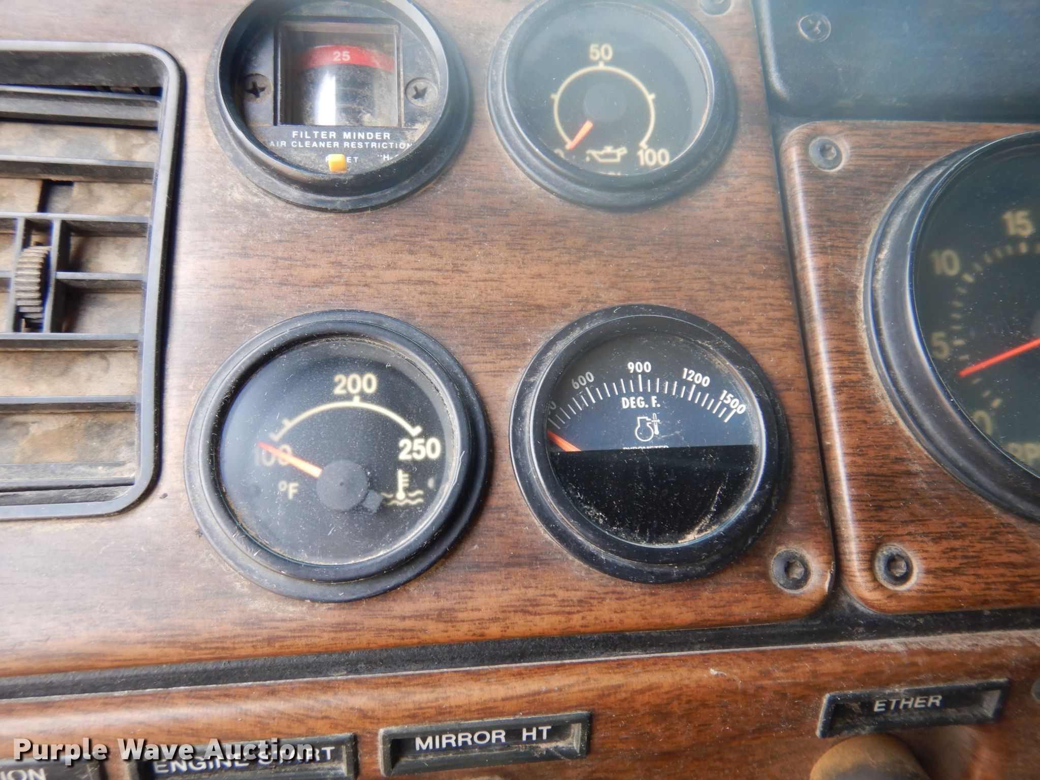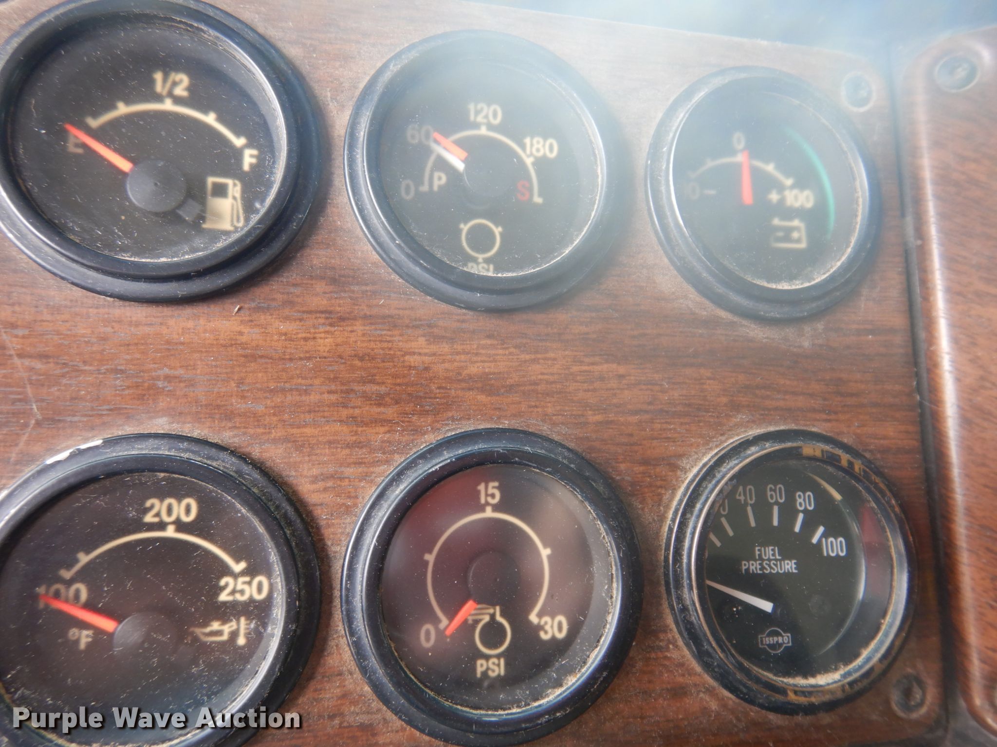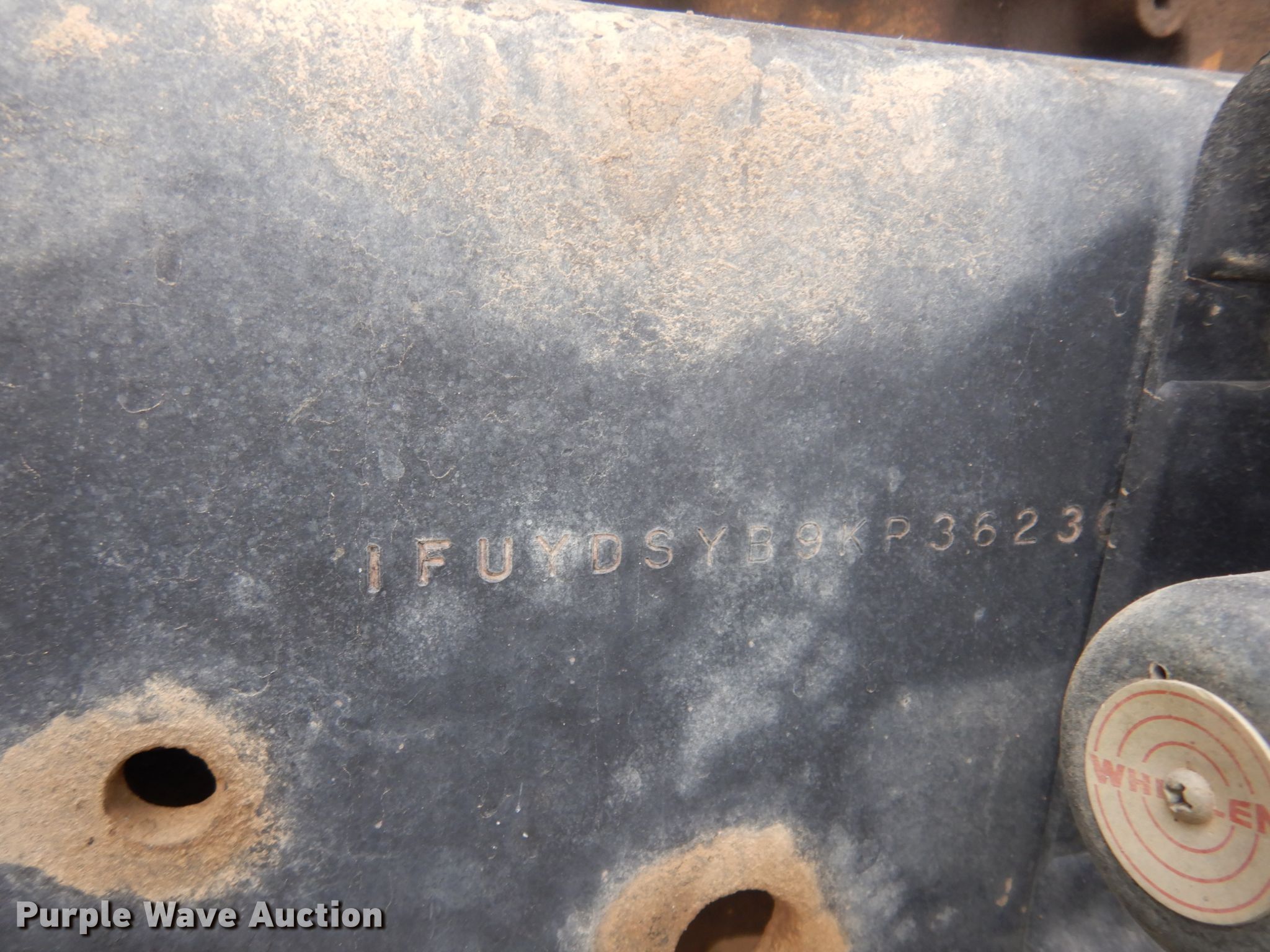 1989 Freightliner FLD120 flatbed truck. 832,712 miles on odometer. Engine Caterpillar 3406B, Serial: 4MG56965, Displacement: 14.6L, Cylinders: 6, Fuel type: Diesel. Transmission Eaton Fuller, Manual, Speed: 13. Chassis Axles: Tandem, Differential lock: Inter-axle, Suspension: Air, Dump valves, Brakes: Air. Interior AC, Heat, Heated mirrors. Operational Flatbed Length: 12' 11", Poly tank Capacity: 2,550 gallons, Top fill.. Tires Size: 11R24.5. Colorado title. 1FUYDSYB9KP362307. Holly Firedept. Holly, CO 81047
