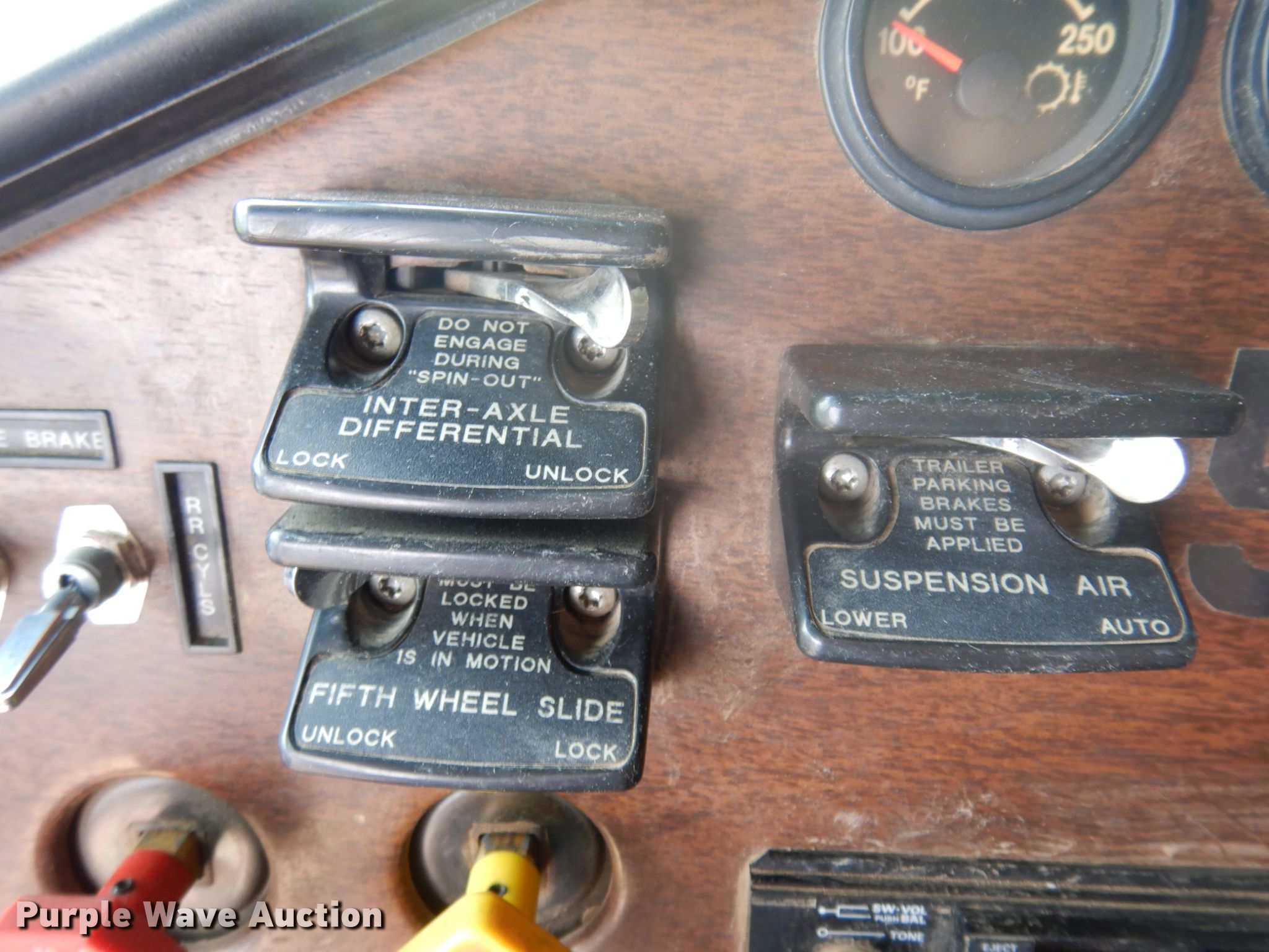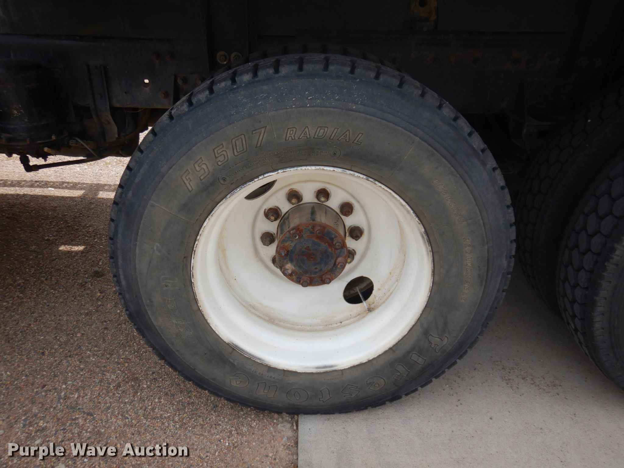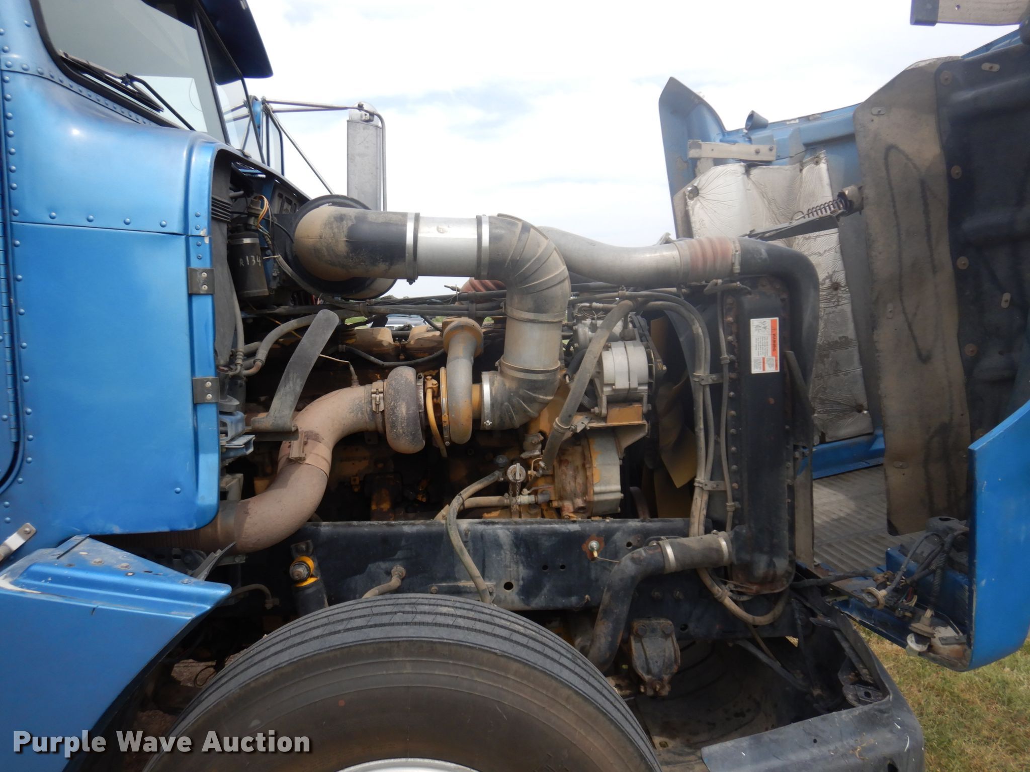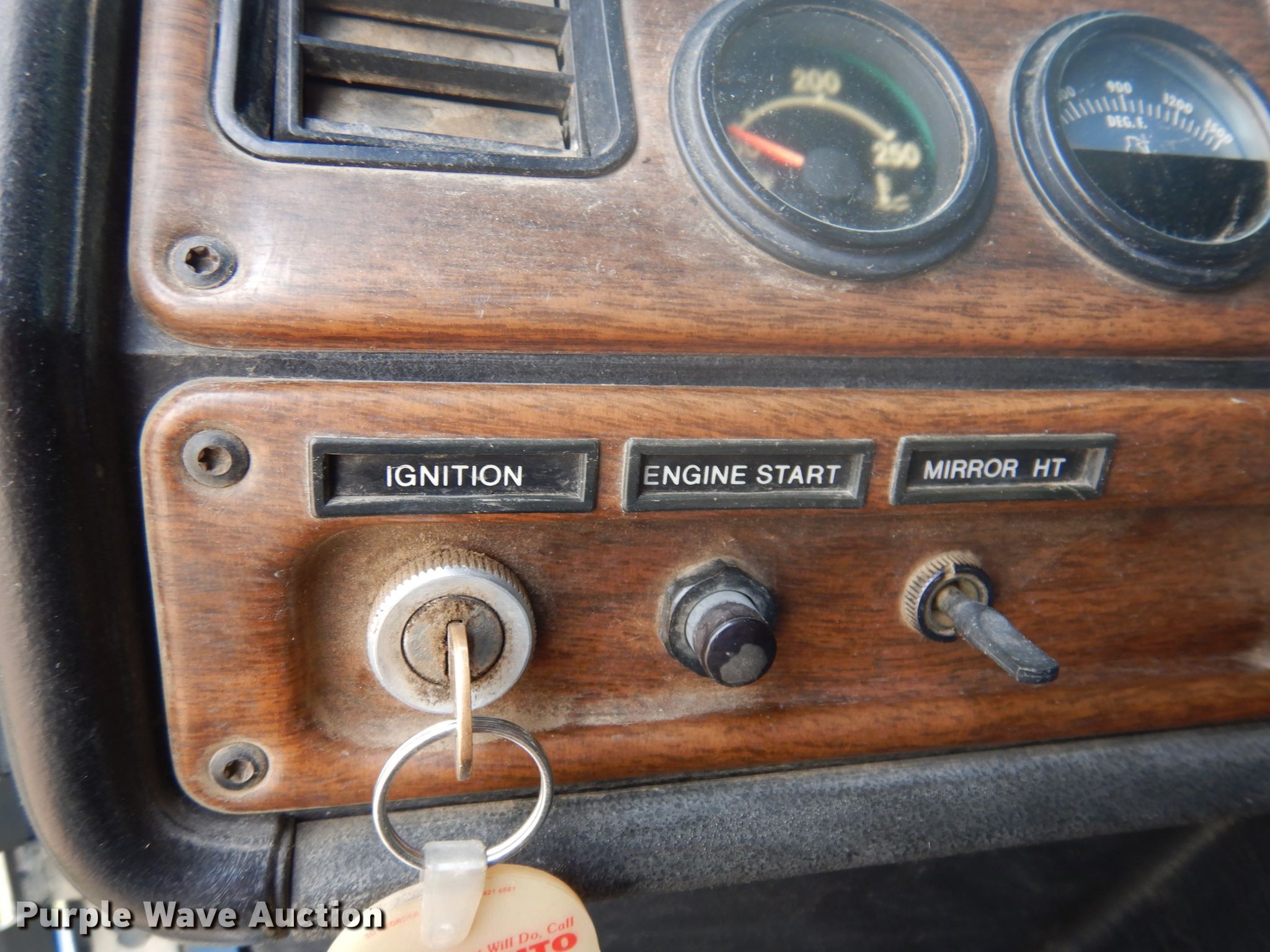 1989 Freightliner FLD120 flatbed truck. 832,712 miles on odometer. Engine Caterpillar 3406B, Serial: 4MG56965, Displacement: 14.6L, Cylinders: 6, Fuel type: Diesel. Transmission Eaton Fuller, Manual, Speed: 13. Chassis Axles: Tandem, Differential lock: Inter-axle, Suspension: Air, Dump valves, Brakes: Air. Interior AC, Heat, Heated mirrors. Operational Flatbed Length: 12' 11", Poly tank Capacity: 2,550 gallons, Top fill.. Tires Size: 11R24.5. Colorado title. 1FUYDSYB9KP362307. Holly Firedept. Holly, CO 81047