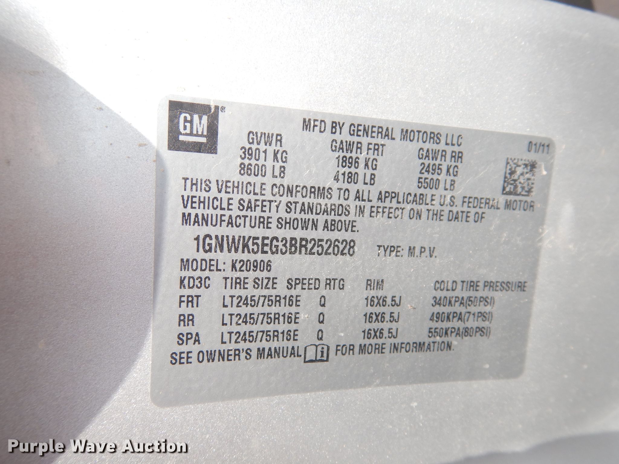 2011 Chevrolet Suburban 2500 SUV. 170,913 miles on odometer, Unit #: 11-918. Engine Displacement: 6.0L V8 OHV 16V FFV, Cylinders: 8, Fuel type: Gas. Transmission Automatic, Four wheel drive. Interior AC, Heat, Seat: Power driver, Power windows, Power locks, Cruise control. Tires Size: 245/75R16. Notes Seller provided Carfax available upon request, Dash warning indicator: TPMS, Windshield chipped or cracked. Kansas title. 1GNWK5EG3BR252628. Kansas Highway Patrol - Open inspection July 19, 20, and 21. 930 NE Strait Ave. Topeka, KS 66616