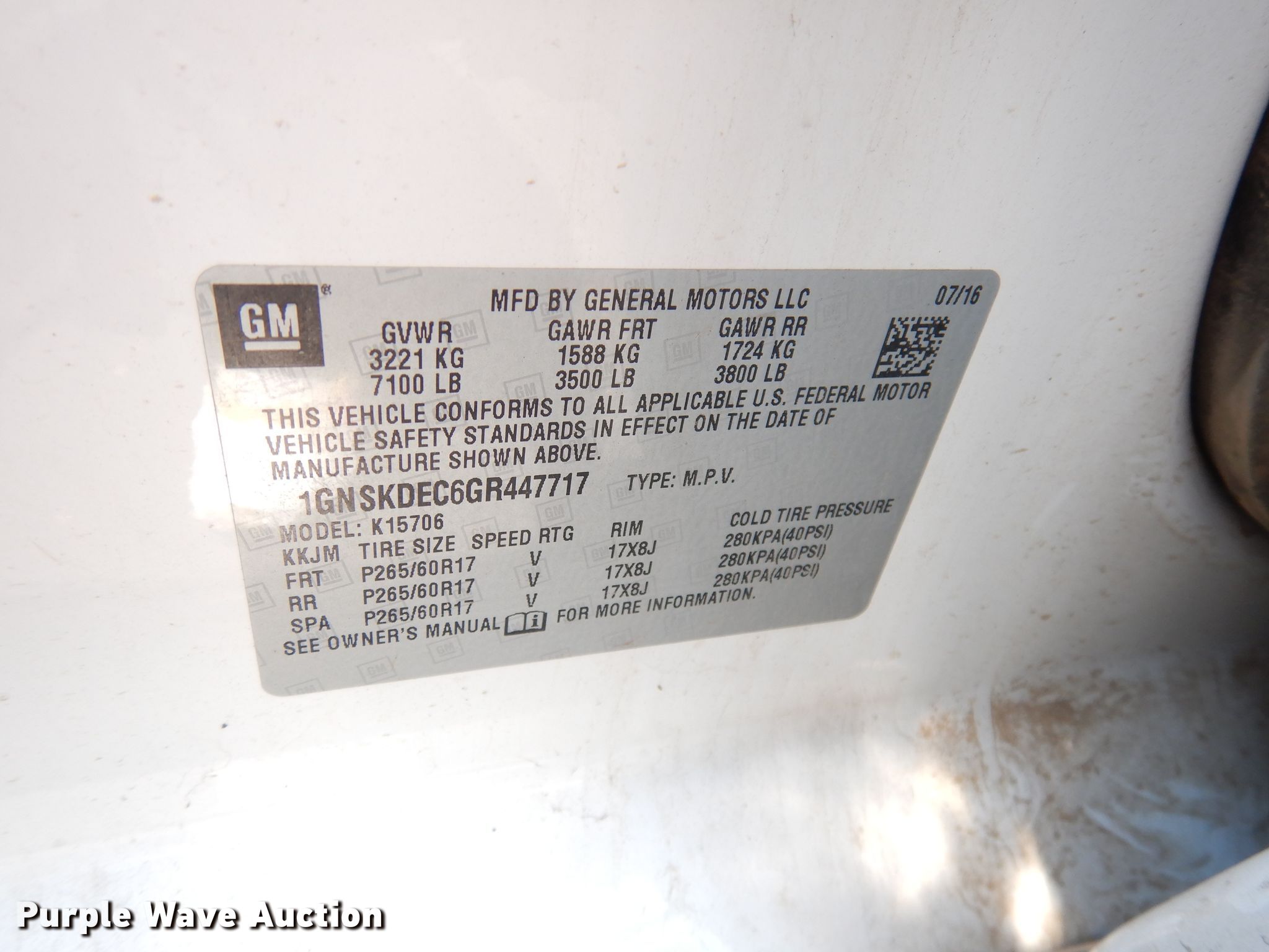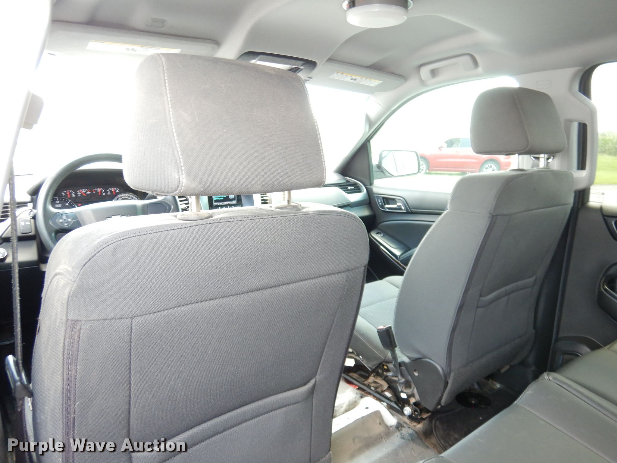 2016 Chevrolet Tahoe Police SUV. 118,374 miles on odometer, Unit #: 16-161. Engine Displacement: 5.3L V8 OHV 16V, Cylinders: 8, Fuel type: Gas. Transmission Automatic. Interior AC, Heat, Seat: Power driver, Power windows, Power locks, Cruise control. Tires Size: 265/60R17. Notes Dead battery, No center console, Transmission issues. Kansas title. 1GNSKDEC6GR447717. Kansas Highway Patrol - Open inspection July 19, 20, and 21. 930 NE Strait Ave. Topeka, KS 66616