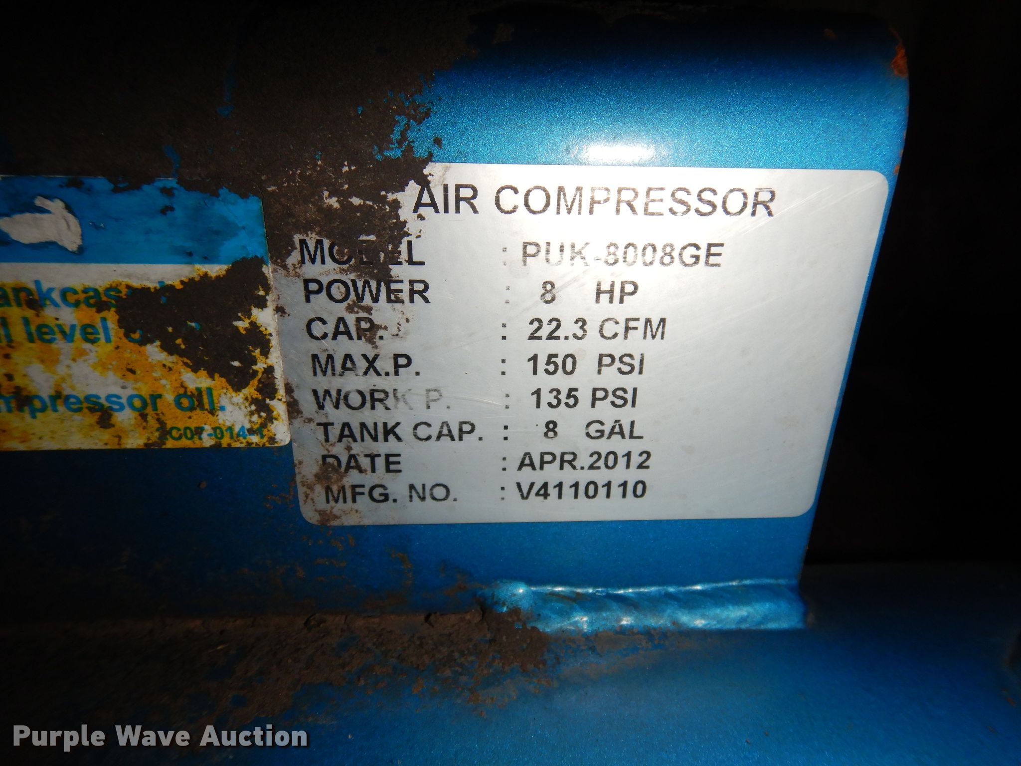 Purple Wave is selling a used Air Compressor in Kansas. This item is a Puma air compressor with the following: Serial: V4110110, Unit #: 36701