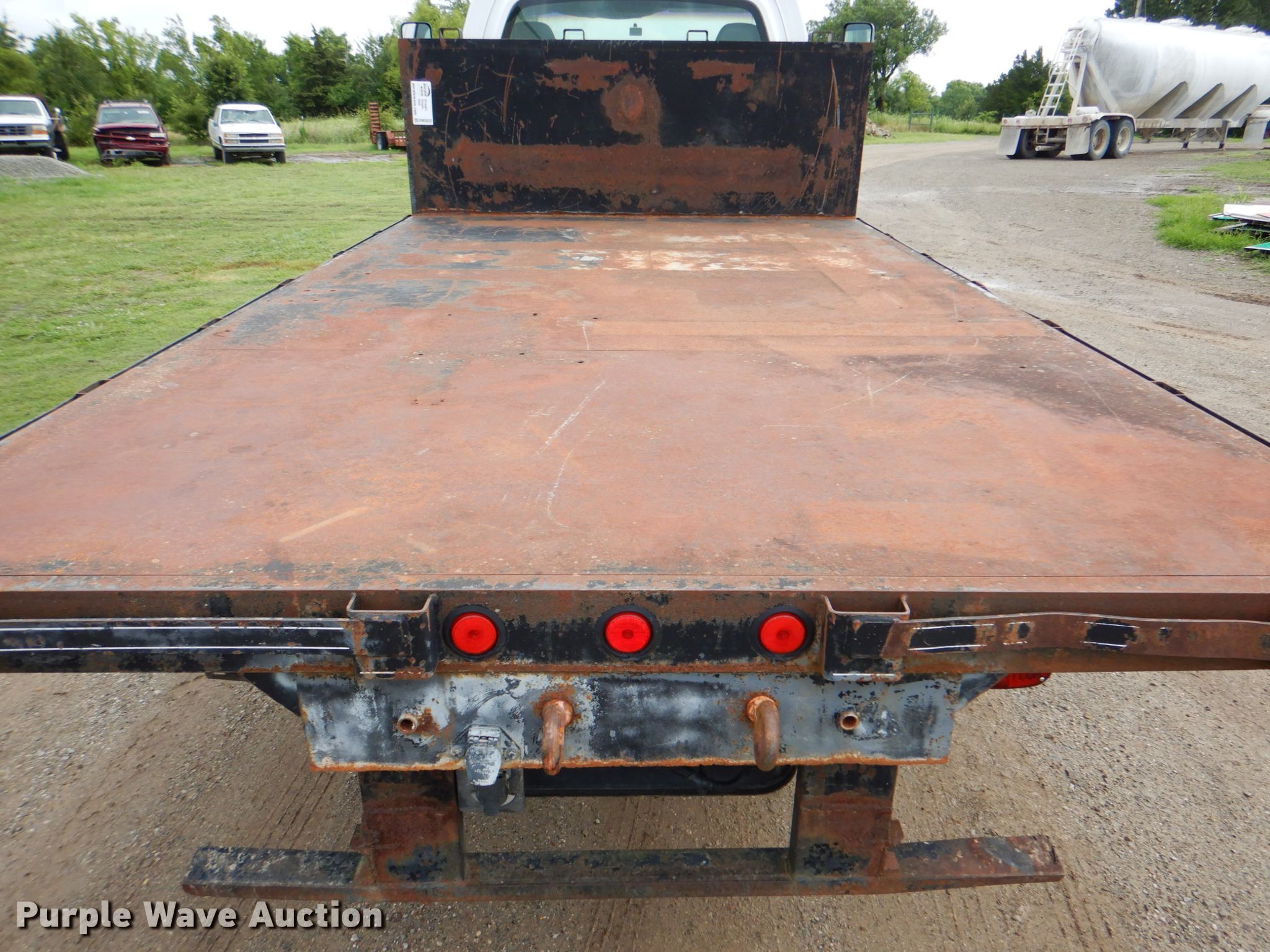 2003 GMC C4500 flatbed truck. 293,108 miles on odometer. Engine Displacement: 6.6L, Cylinders: 8, Fuel type: Diesel. Transmission Automatic. Chassis Axles: Single, Suspension: Spring, Brakes: Hydraulic, GVWR: 16,000 lbs. Interior AC, Heat, Cruise control. Operational Flatbed 13' x 92" W. Tires Size: 225/70R19.5. Notes Dash warning indicator: ABS, Windshield chipped or cracked. Oklahoma title. 1GDC4E1163F501316. A.O. Inc.. Okemah, OK 74859