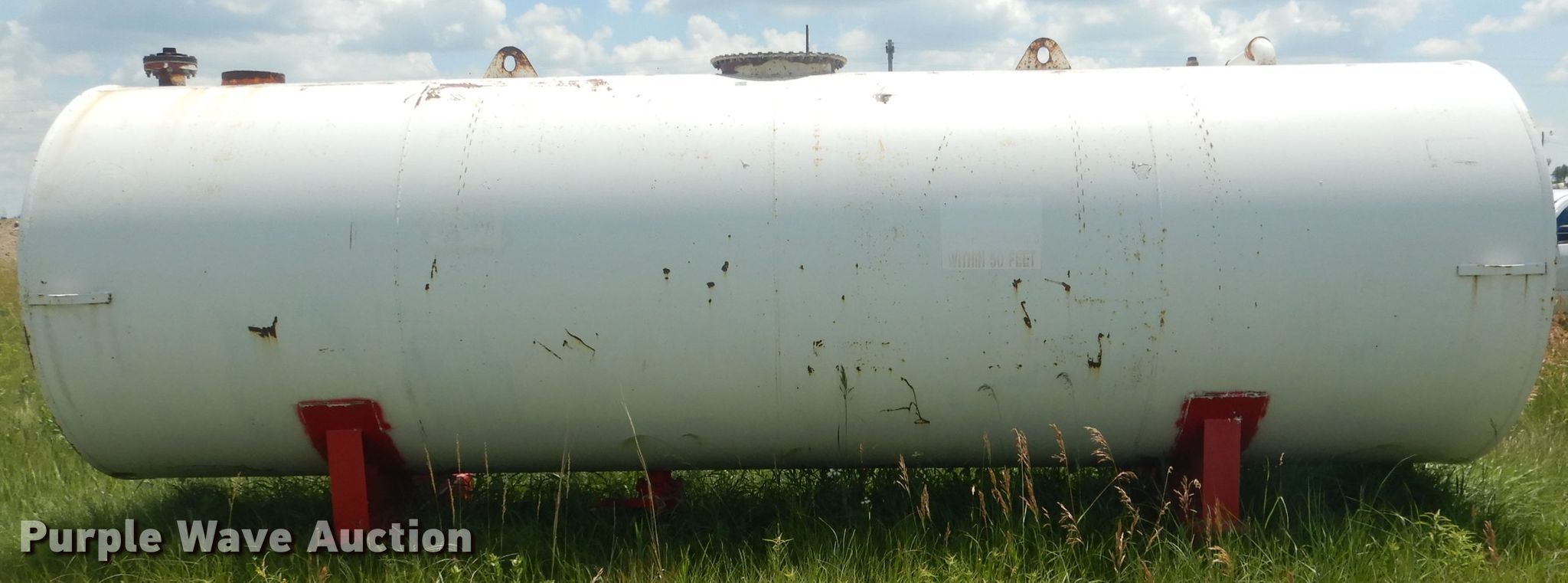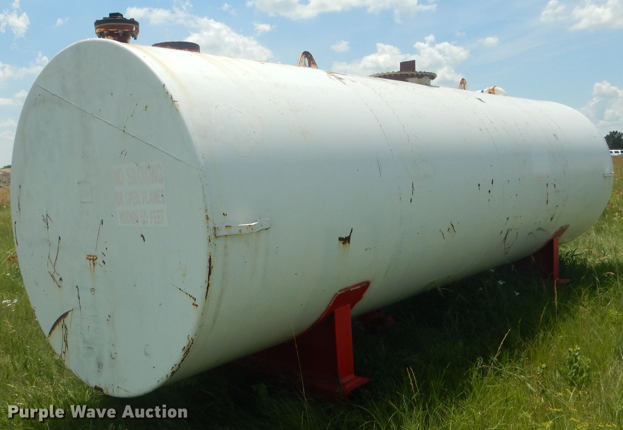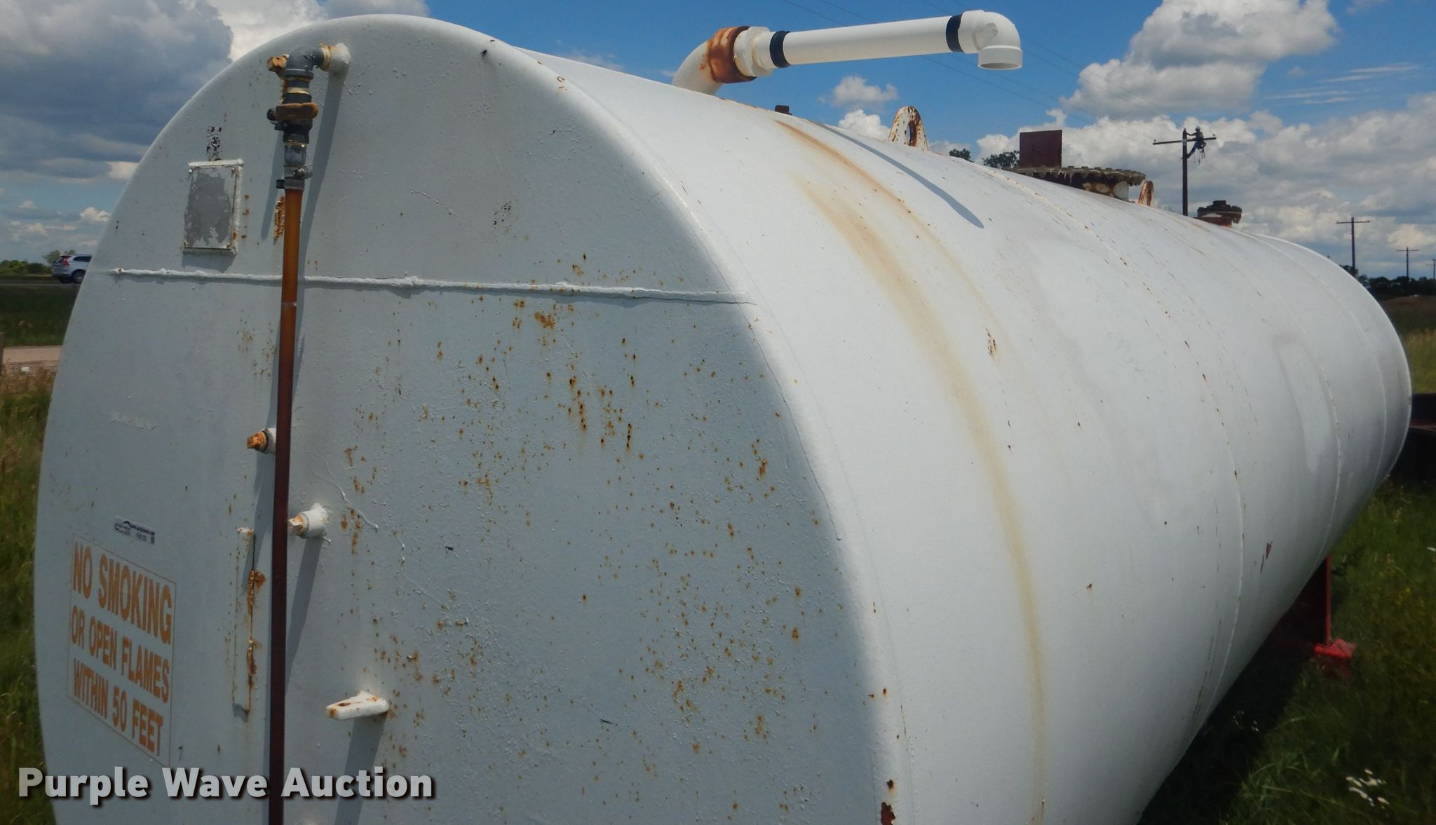 Purple Wave is selling a used Fuel and Lube in Nebraska. This item is a Fuel tank with the following: 6' diameter x 20'L, Approximately 4,000 gallons capacity, (2) steel stands, 3" outlet, Steel