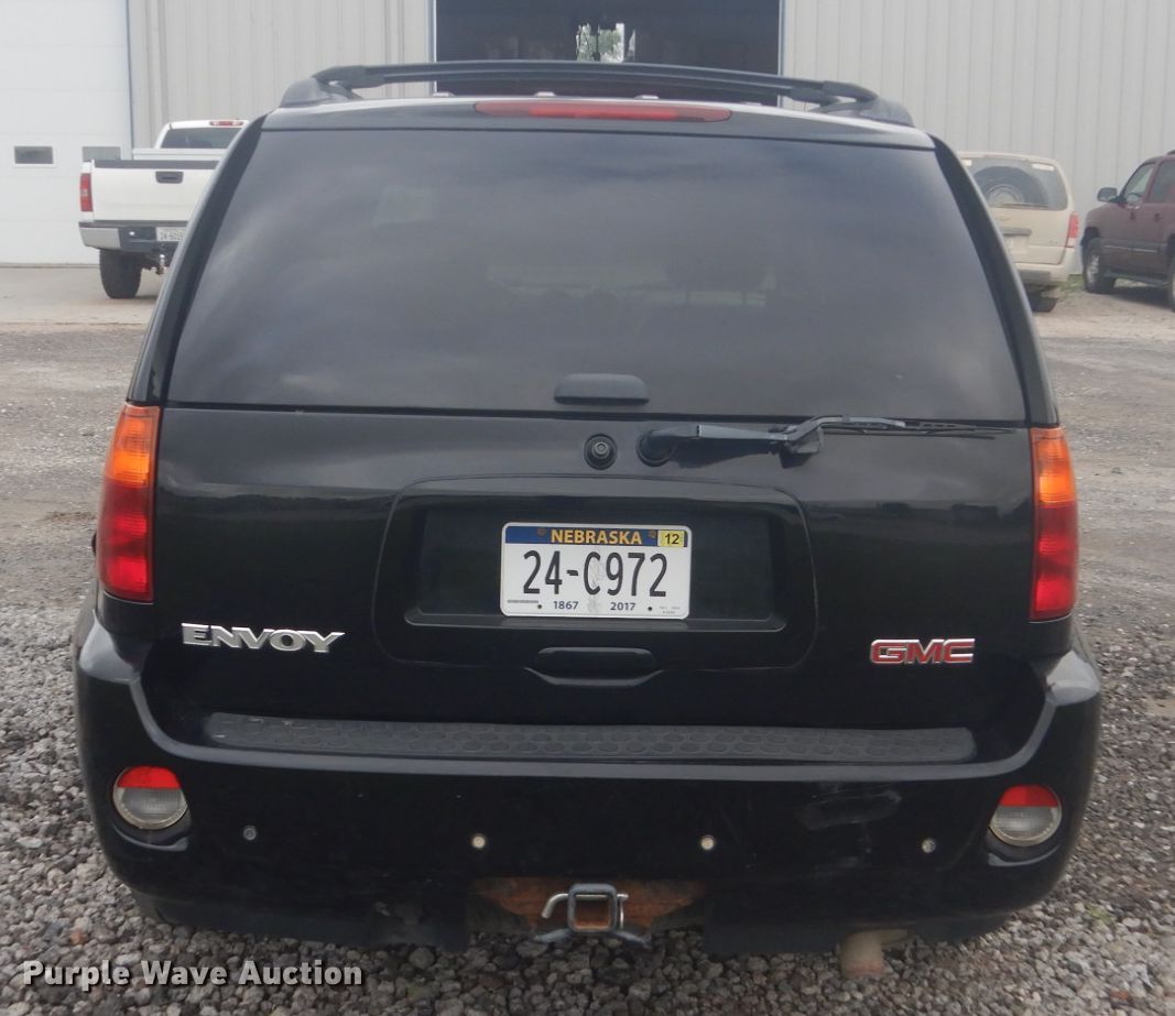 2005 GMC Envoy Denali SUV. 117,807 miles on odometer. Engine Displacement: 5.3L V8 OHV 16V, Cylinders: 8, Fuel type: Gas. Transmission Automatic, Four wheel drive. Interior AC, Heat, Seat: Power driver, Power passenger, Power windows, Power locks, Cruise control, Sunroof. Tires Size: 245/65R17. Notes Windshield chipped or cracked, Oil pressure and fuel gauge intermittently operational, Sunroof track broken. Nebraska title. 1GKET63M652364244. Skywave Wireless Inc... 1510 South beamer St. West Point, NE 68788