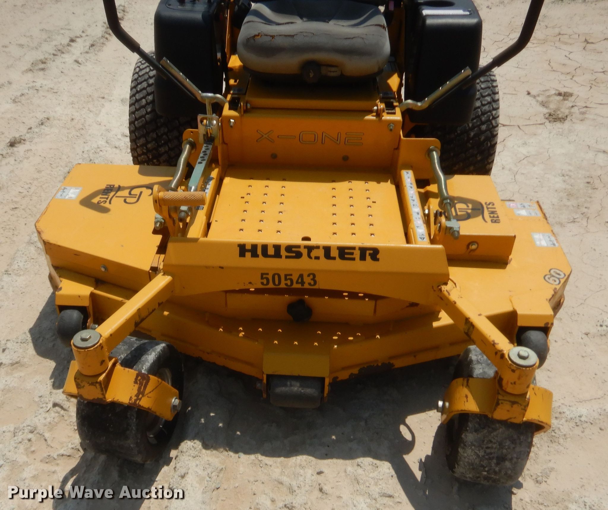 Purple Wave is selling a used Commercial Turf Mower in Oklahoma. This item is a Hustler X-One ZTR lawn mower with the following: 166 hours on meter, Cutting width: 60", Serial: 15050543