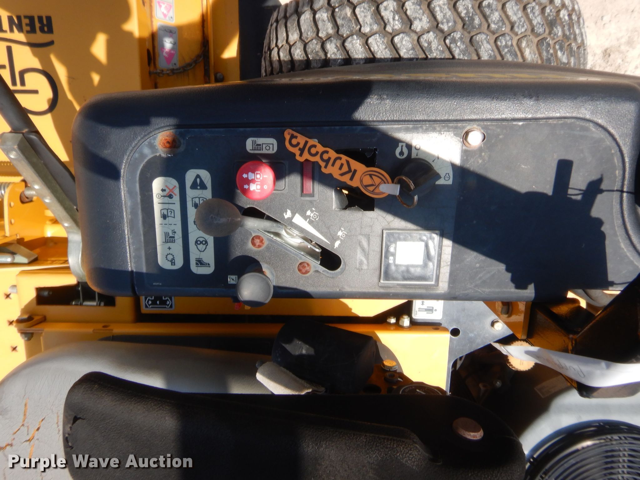 Hustler X-One ZTR lawn mower. 166 hours on meter, Cutting width: 60", Serial: 15050543. Engine Kawasaki FX730V, Cylinders: 2, Fuel type: Gas. Transmission Hydrostatic. Tires Front: 13x6.50-6, Rear: 24x12.00-12. Great Plains Kubota. 14280 US Hwy 177. Shawnee, OK 74804