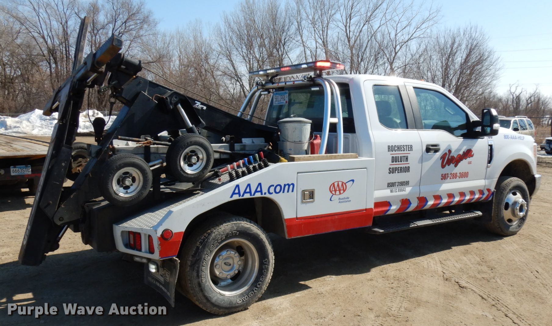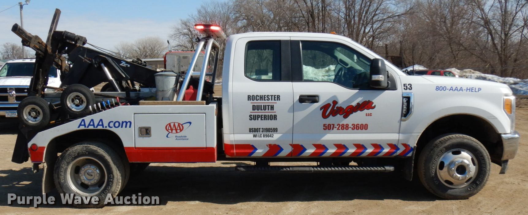 Purple Wave is selling a used Rollback or Tow Truck in Minnesota. This item is a 2017 Ford F350 Super Duty SuperCab tow truck with the following: 130,240 miles on odometer, Unit #: 53