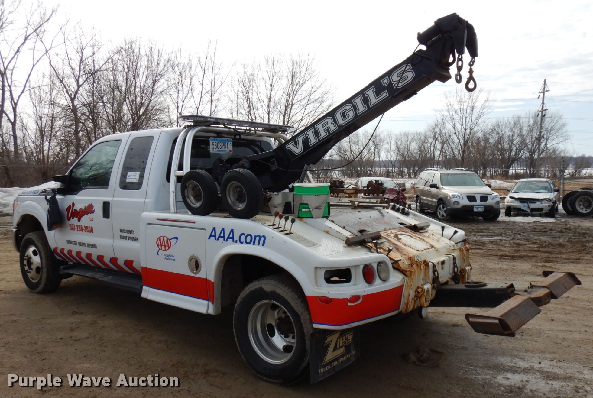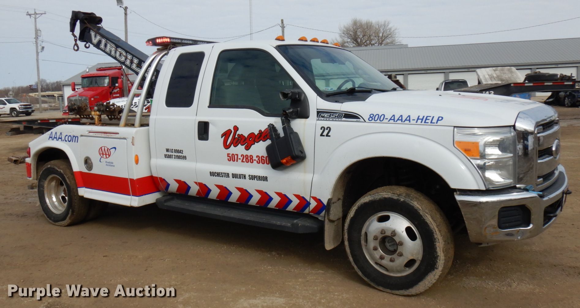 Purple Wave is selling a used Rollback or Tow Truck in Minnesota. This item is a 2011 Ford F350 Super Duty SuperCab tow truck with the following: 212,732 miles on odometer
