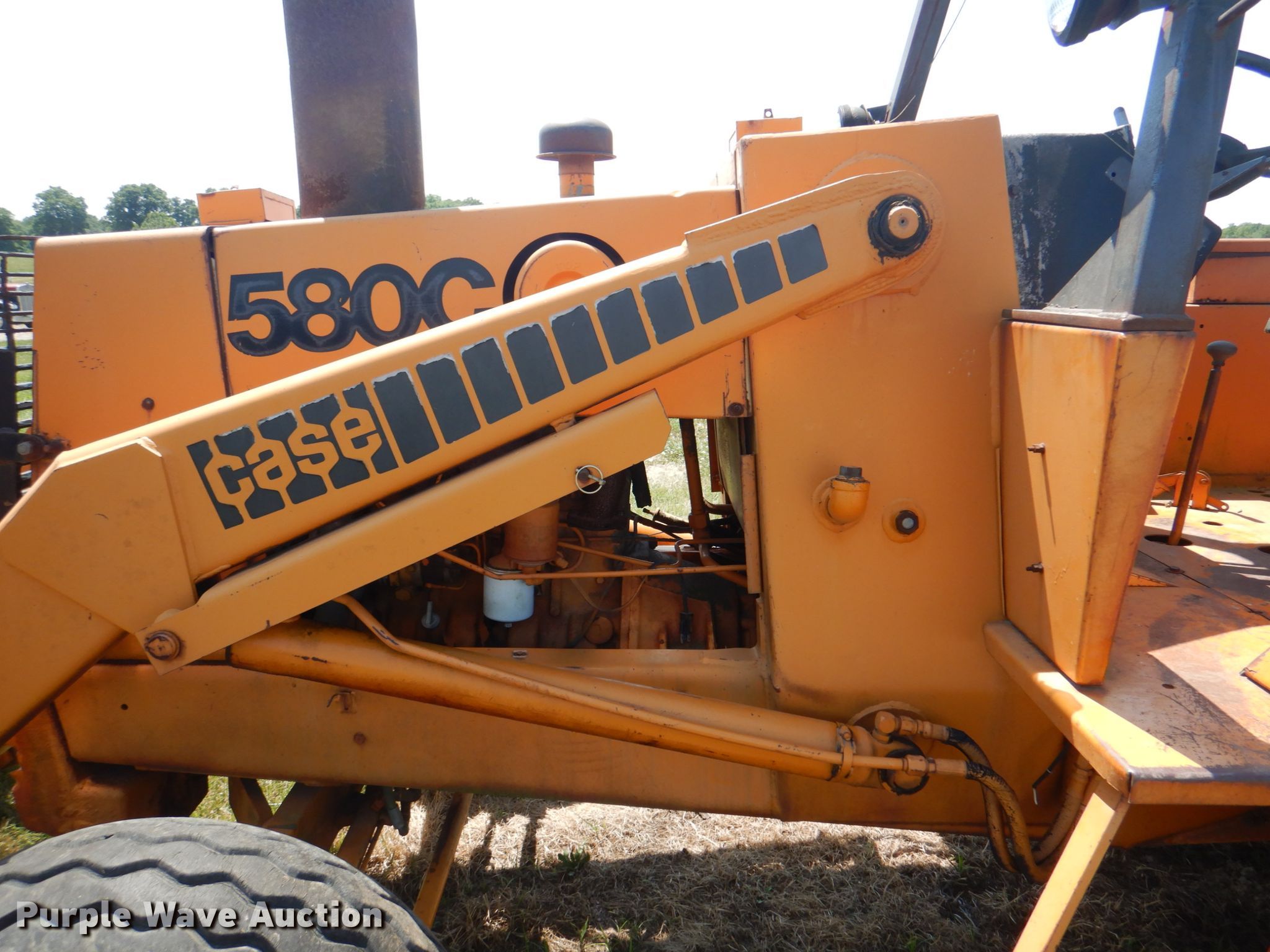 1980 Case 580C backhoe. 1,067 hours on meter, Serial: 9007891. Engine Cylinders: 4, Fuel type: Diesel. Transmission Shuttle shift, 4F - 4R. Chassis Differential lock. Operators station OROPS, Backhoe controls: Four stick Foot control. Operational Loader Bucket Width: 81", Cutting edge: Weld-on, Backhoe Extendable stick, Quick coupler: Manual, Bucket Width: 24", Cutting edge: Weld-on, Teeth: 5.. Tires Front: 11L-16, Rear: 17.5-24. Notes Ignition issues. 26608 S Little Rd. Garden City, MO 64747