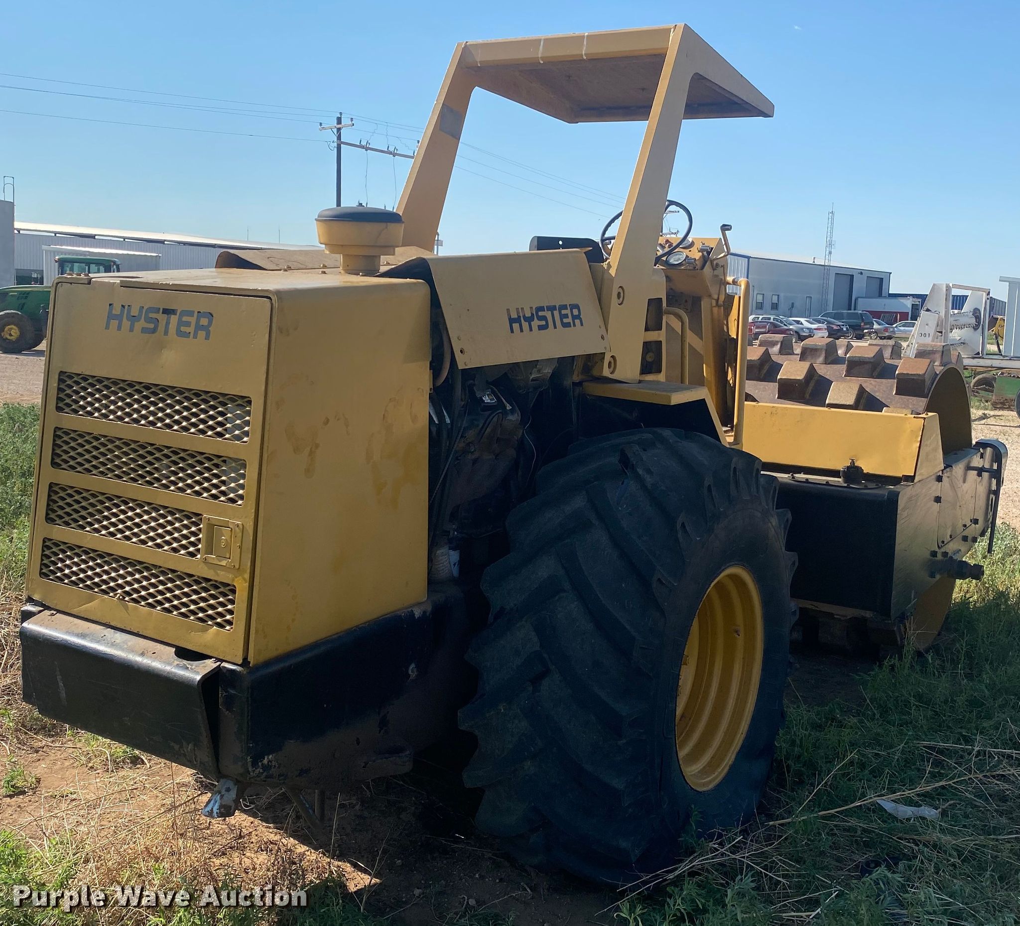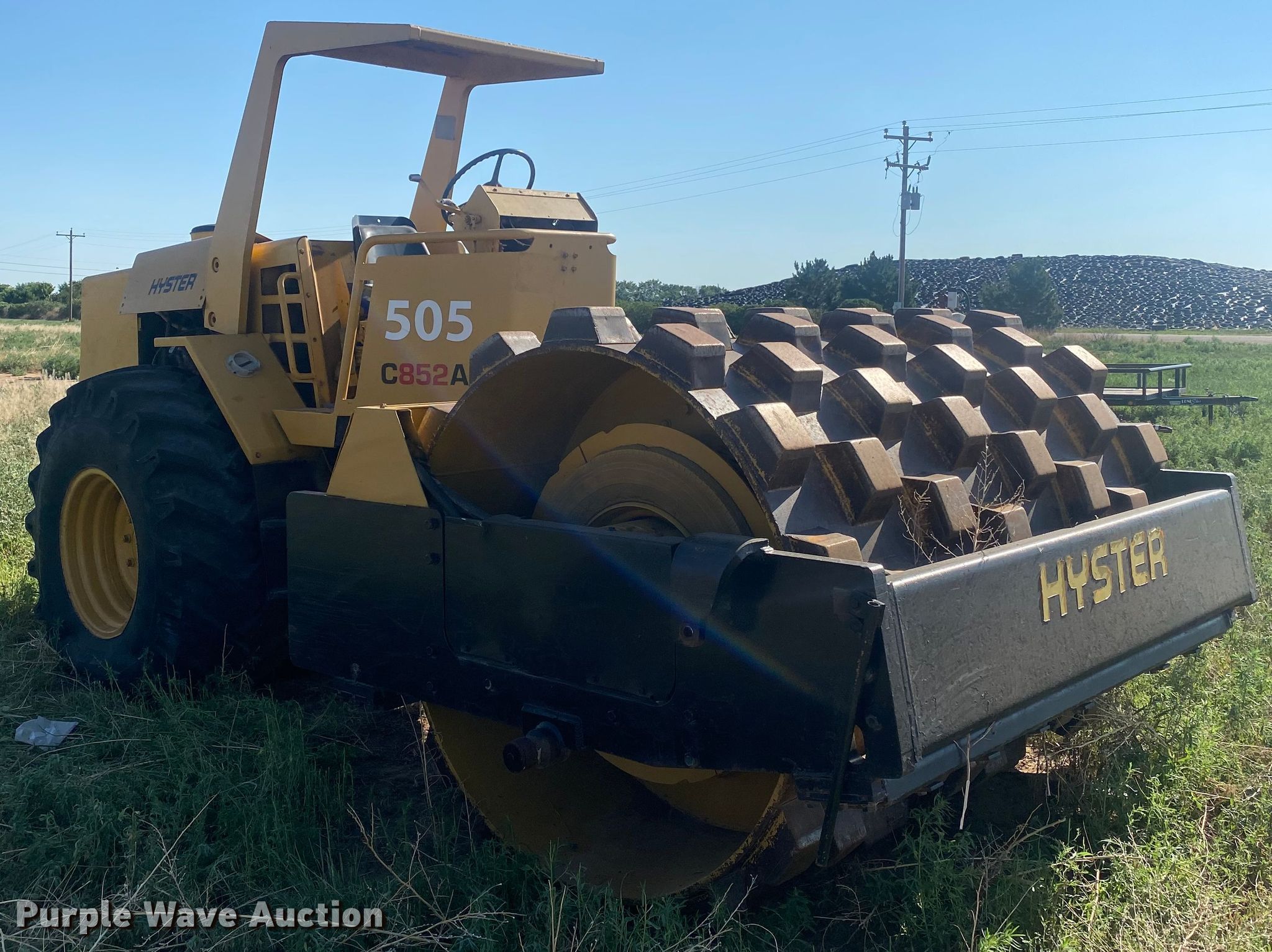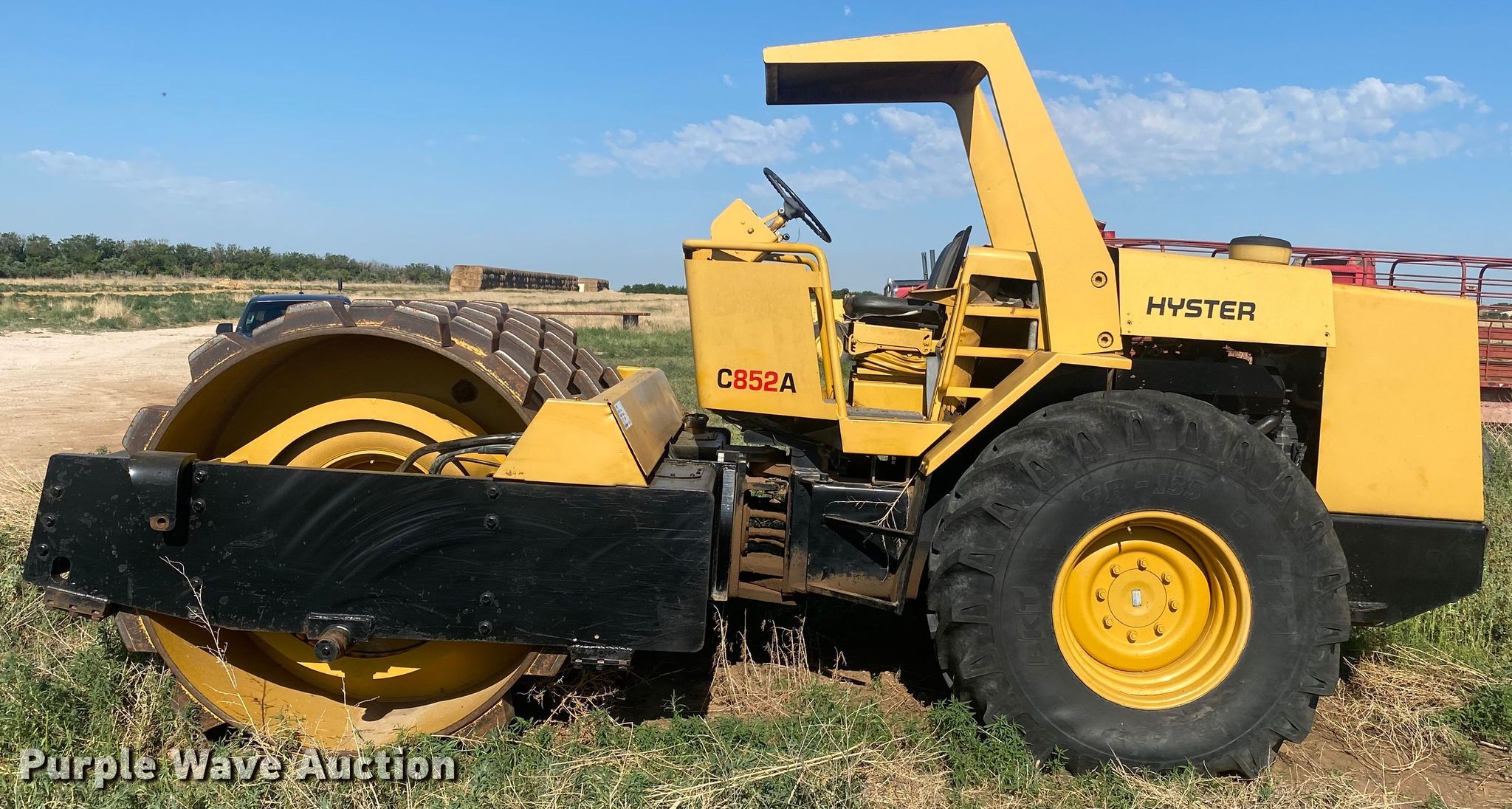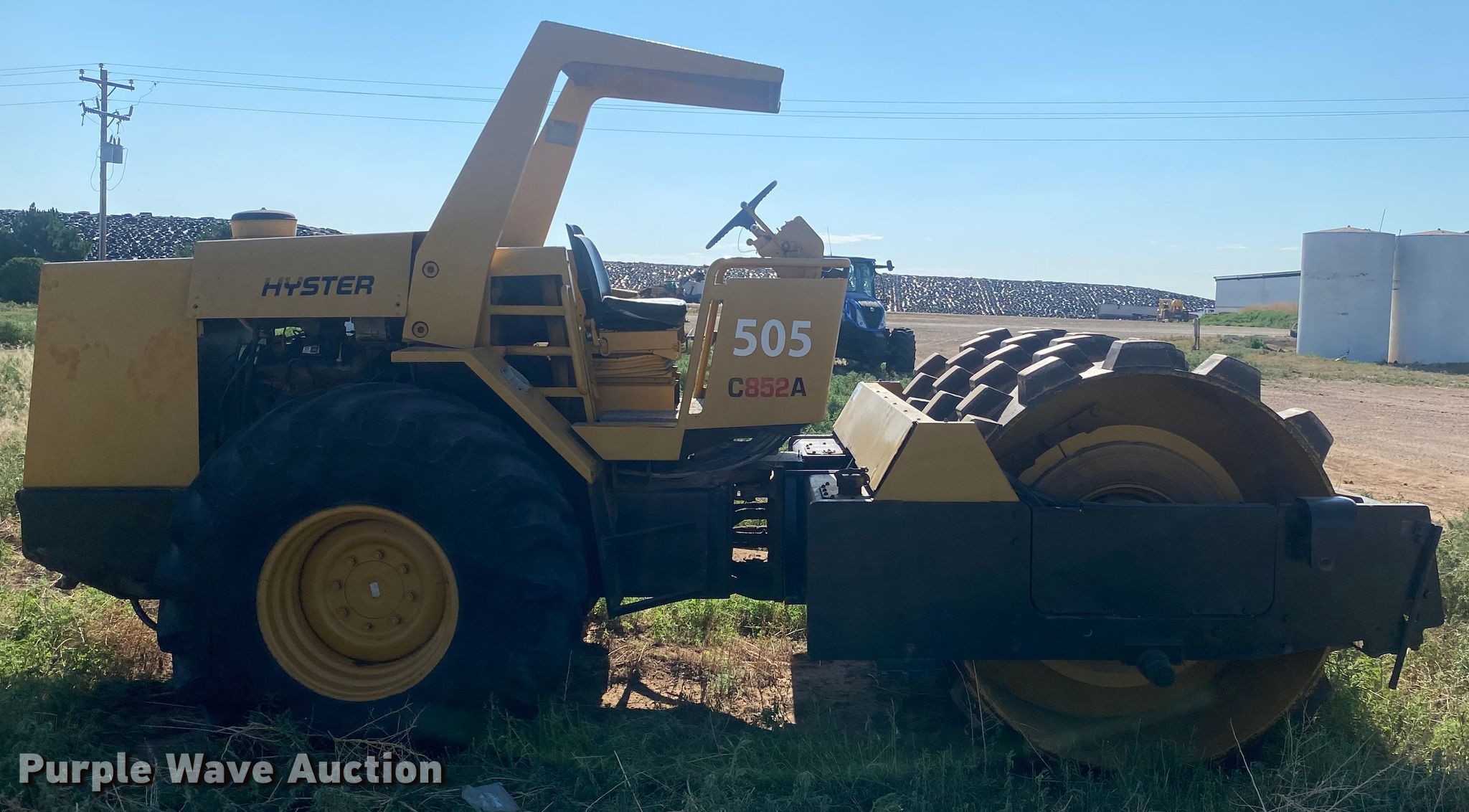 Hyster C852A single drum vibratory roller. 3,975 hours on meter, Serial: A188E5046GH. Engine Detroit Diesel, Displacement: 8.2L, Cylinders: 8, Fuel type: Diesel. Transmission Hydrostatic. Operators station OROPS. Operational Drum: Padfoot, Vibratory system: Single, Front drum, Drum scrapers: Front. Tires Size: 23.1-26. Open C Cattle. 1550 Farm To Market Rd 1727. Dalhart, TX 79022