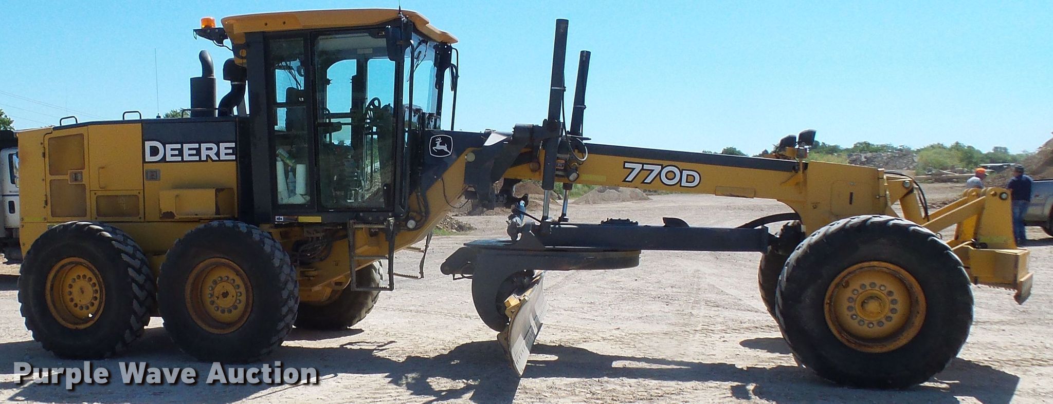 Purple Wave is selling a used Motor Grader in Missouri. This item is a 2008 John Deere 770D motor grader with the following: 9,944 hours on meter, Serial: DW770DX621794