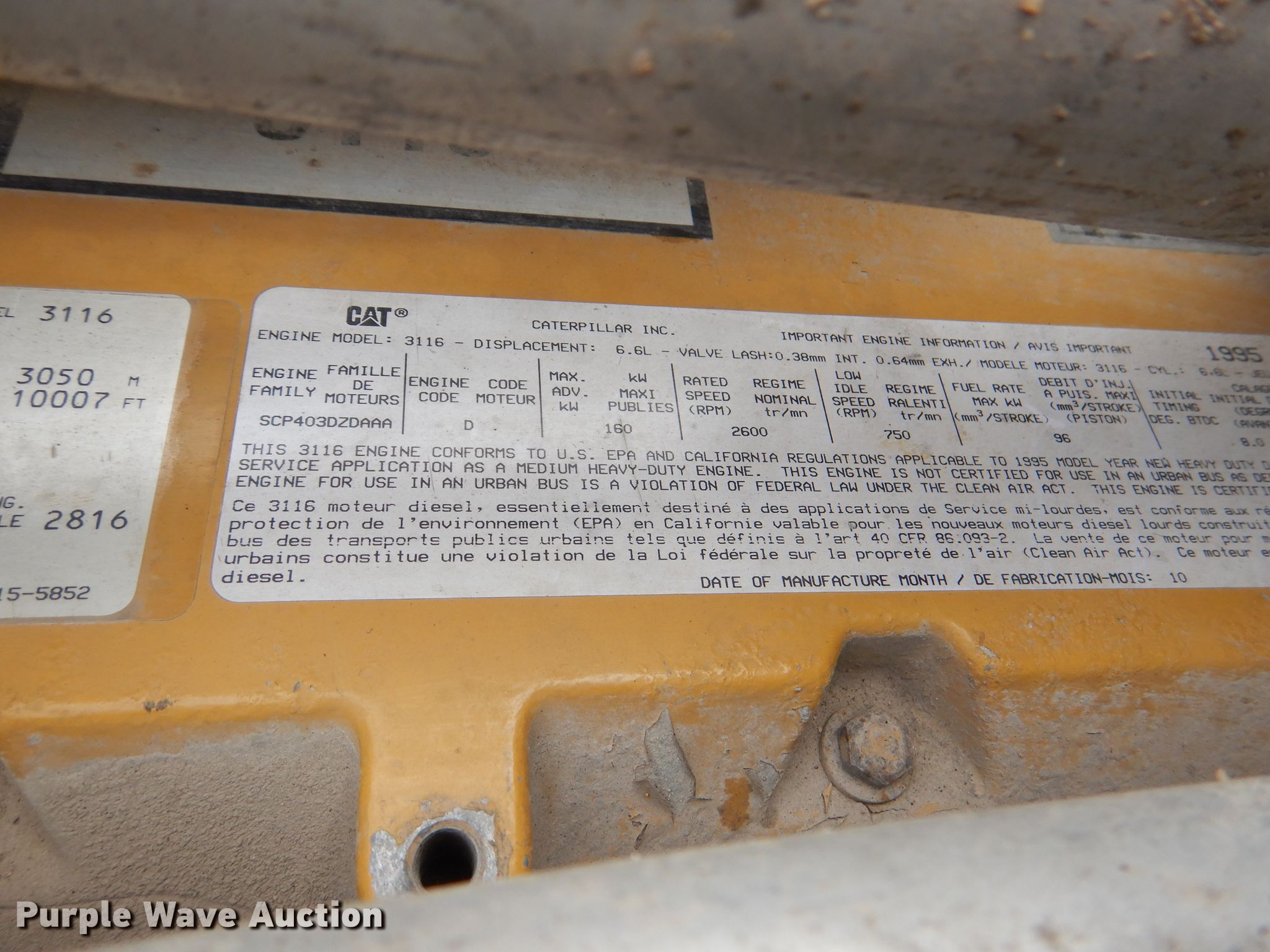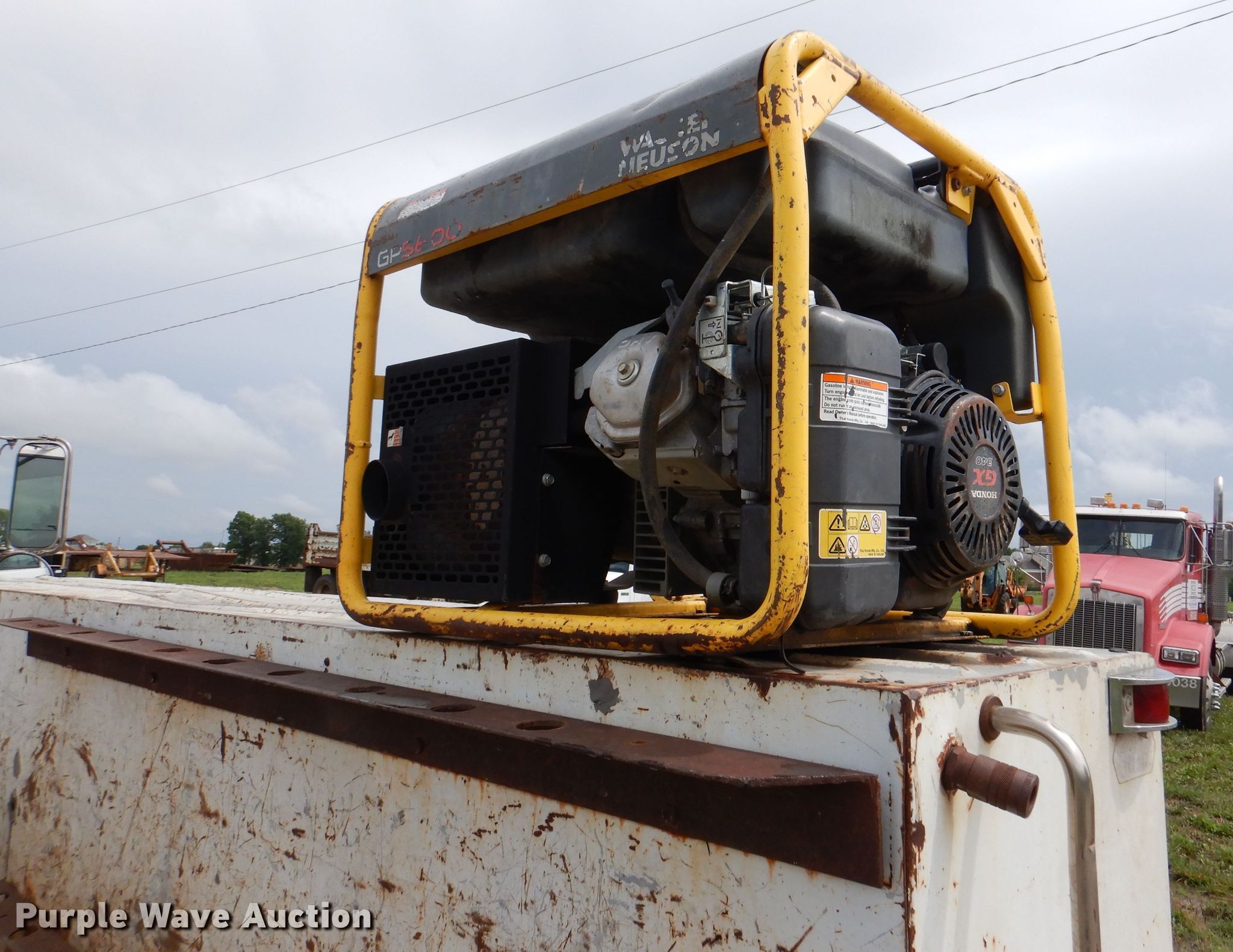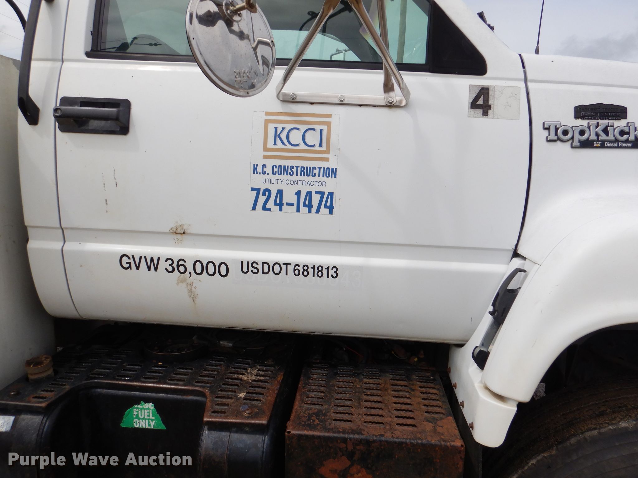 1996 GMC TopKick utility / service truck. 132,775 miles on odometer. Engine Caterpillar 3116, Displacement: 6.6L, Cylinders: 6, Fuel type: Diesel. Transmission Manual, Speed: 5, plus 2. Chassis Axles: Single, Suspension: Spring, Brakes: Air, GVWR: 33,000 lbs. Interior Heat, Brake controller. Operational Bed 11' x 96" W, Generator Wacker Neusen GP5600, Fuel type: Gas, 240V outlets: 2, 120V outlets: 4, Oil/lube system Reservoirs, Fuel tank Nozzles, Pump.. Tires Size: 11R22.5. Kansas title. 1GDM7H1JXTJ505671. K.C. Construction Inc.. 1211 N 158th St. Basehor, KS 66007