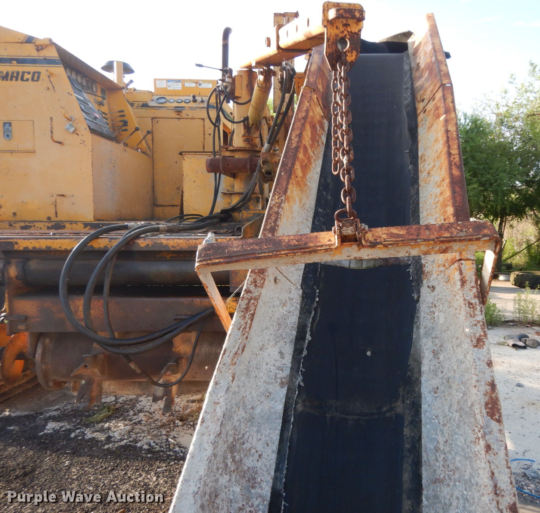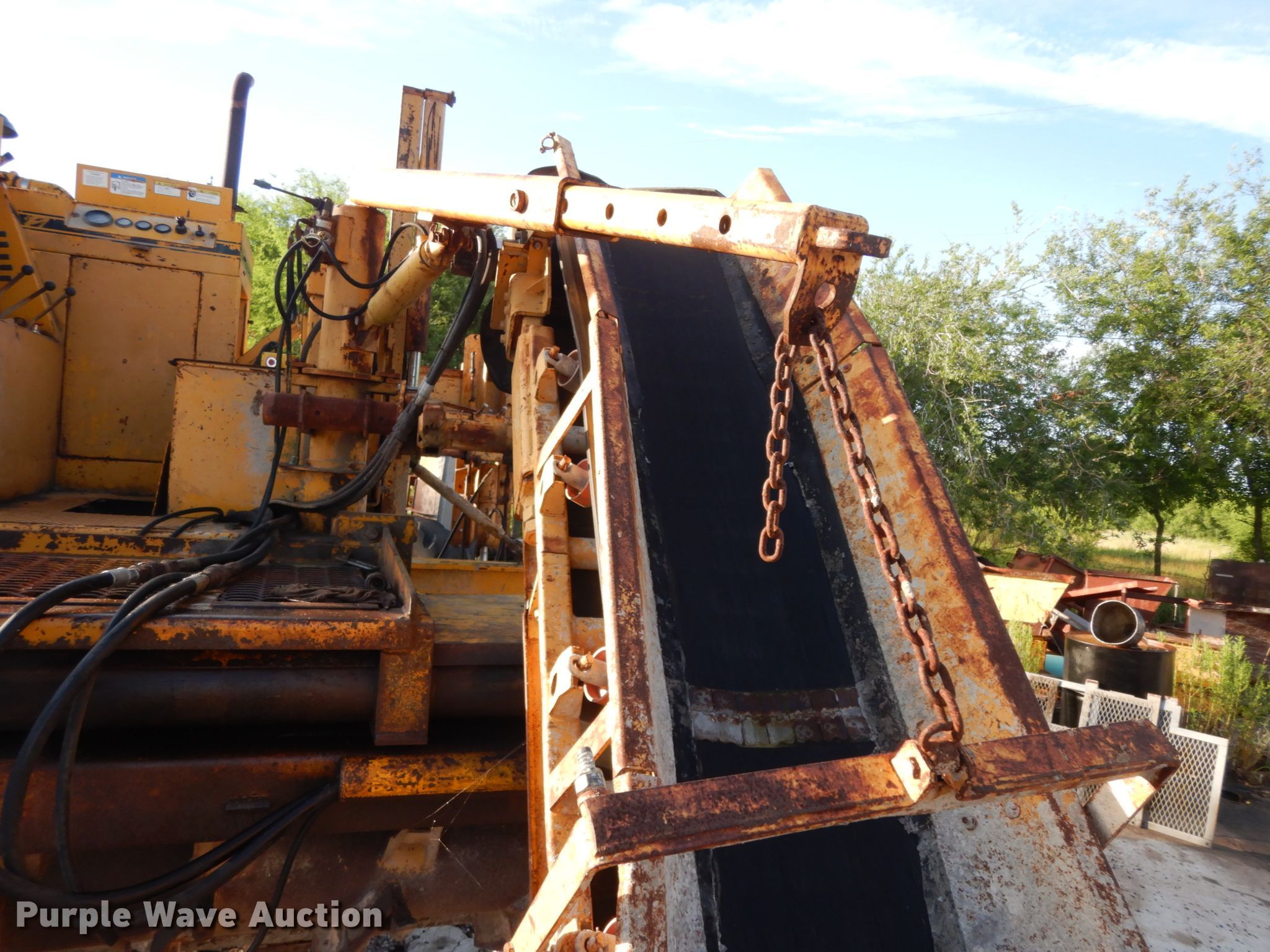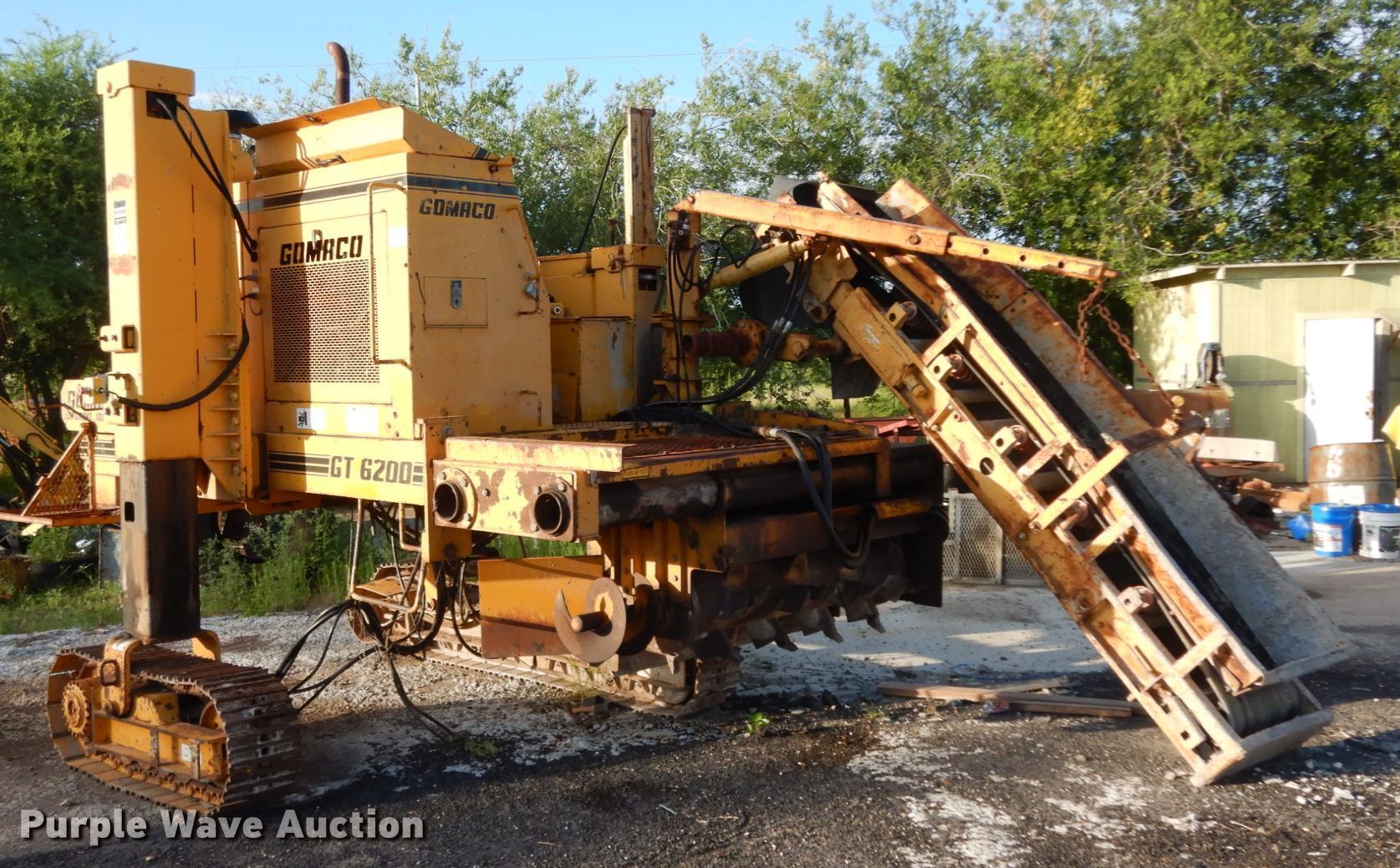 Purple Wave is selling a used Concrete Paver or Curb Machine in Texas. This item is a 1999 Gomaco GT6200 curb machine with the following: 2,845 hours on meter, Four cylinder diesel engine, 24" conveyor, 12" steel tracks, Grouser: Triple, Serial 903300-059