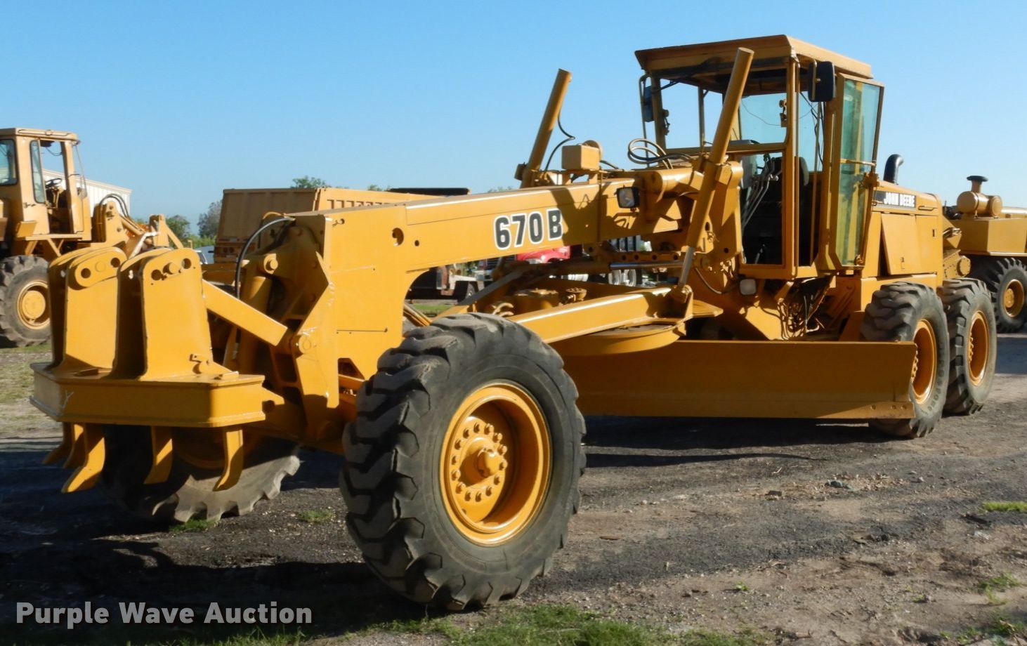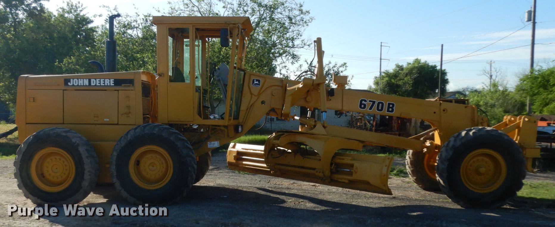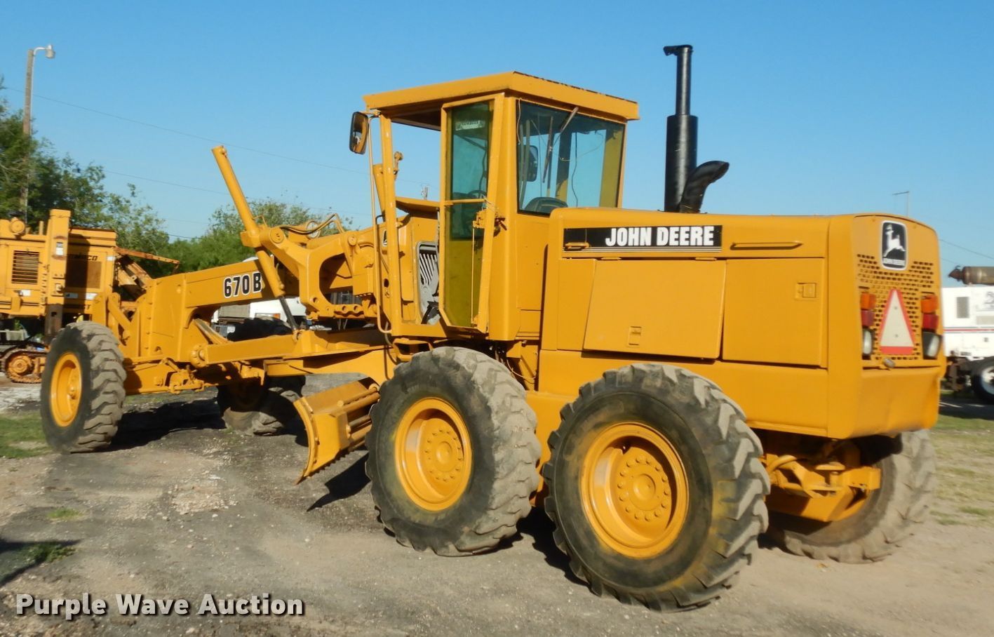 Purple Wave is selling a used Motor Grader in Texas. This item is a 1990 John Deere 670B motor grader with the following: 3,380 hours on meter, Serial: DW670BX527433