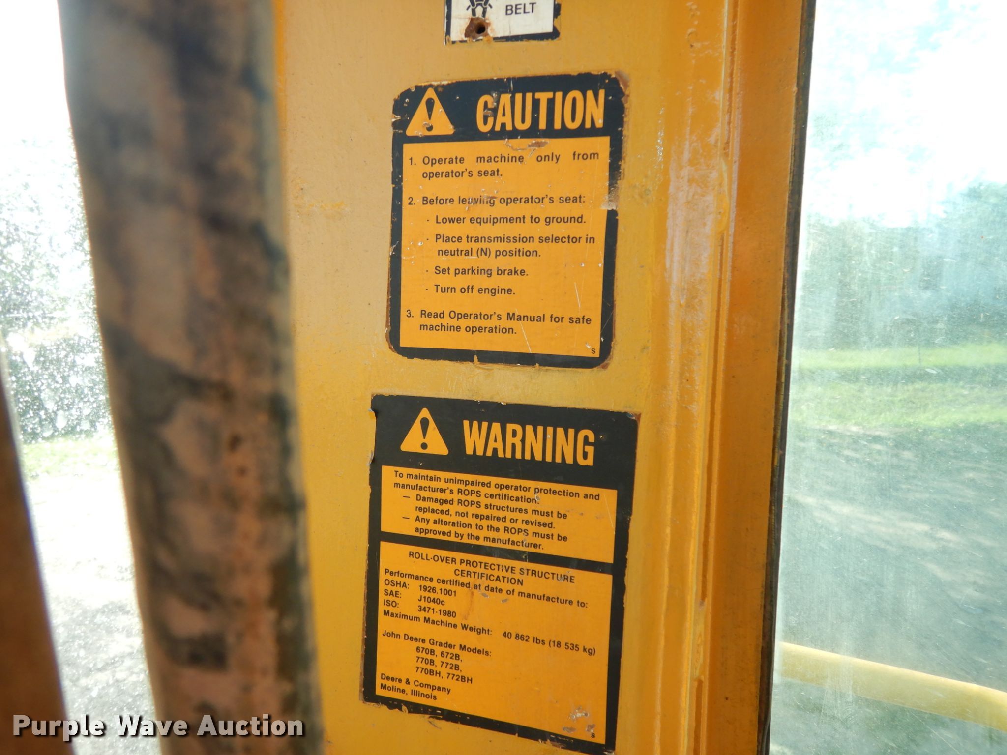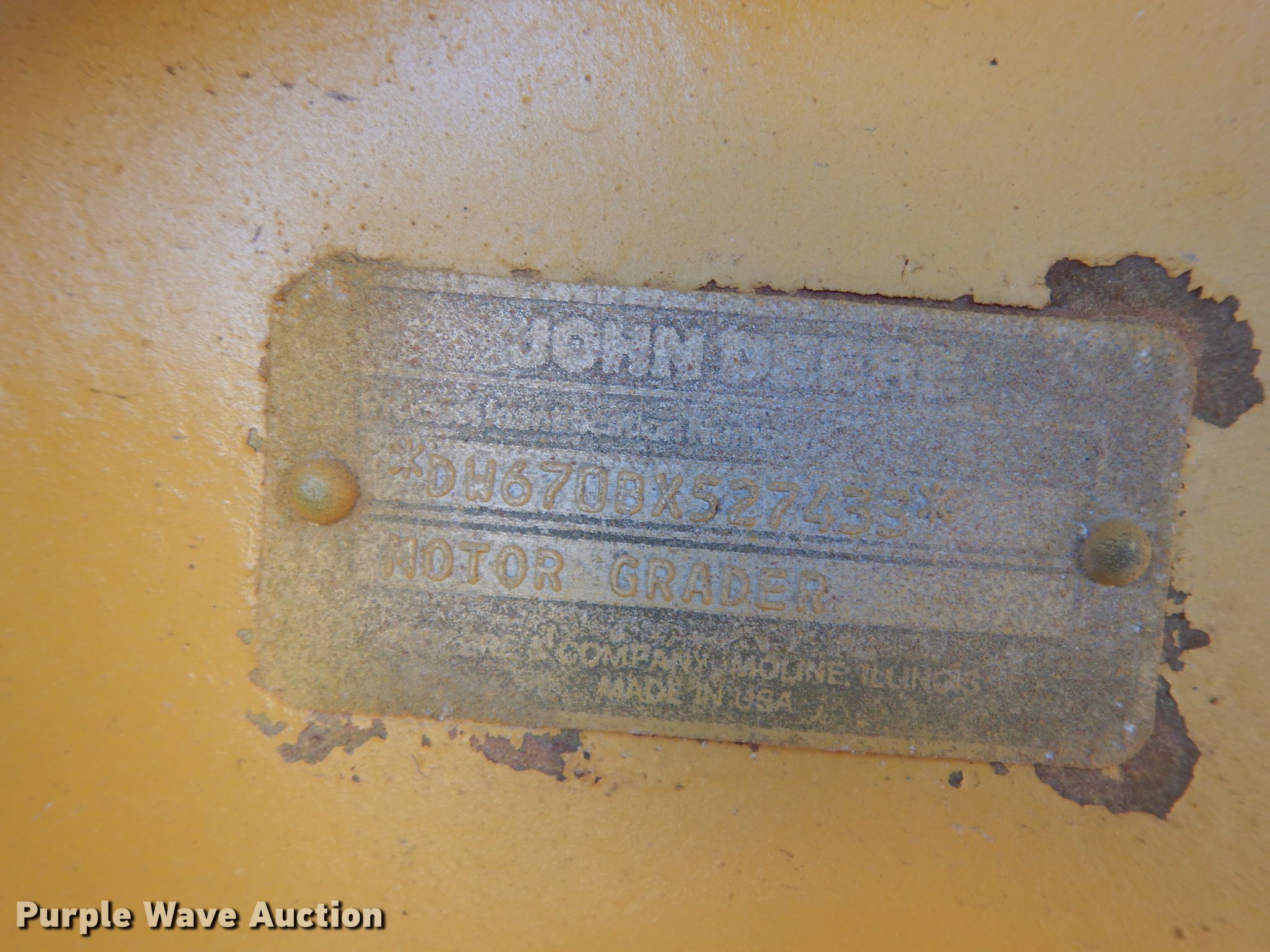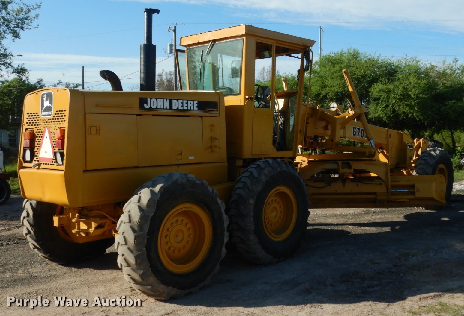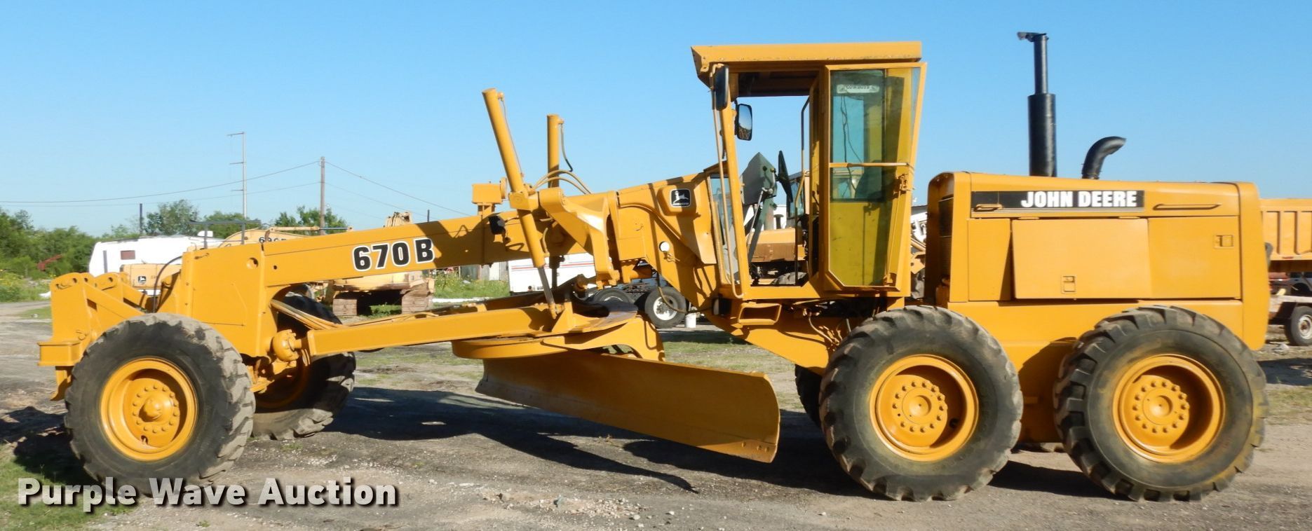 Purple Wave is selling a used Motor Grader in Texas. This item is a 1990 John Deere 670B motor grader with the following: 3,380 hours on meter, Serial: DW670BX527433
