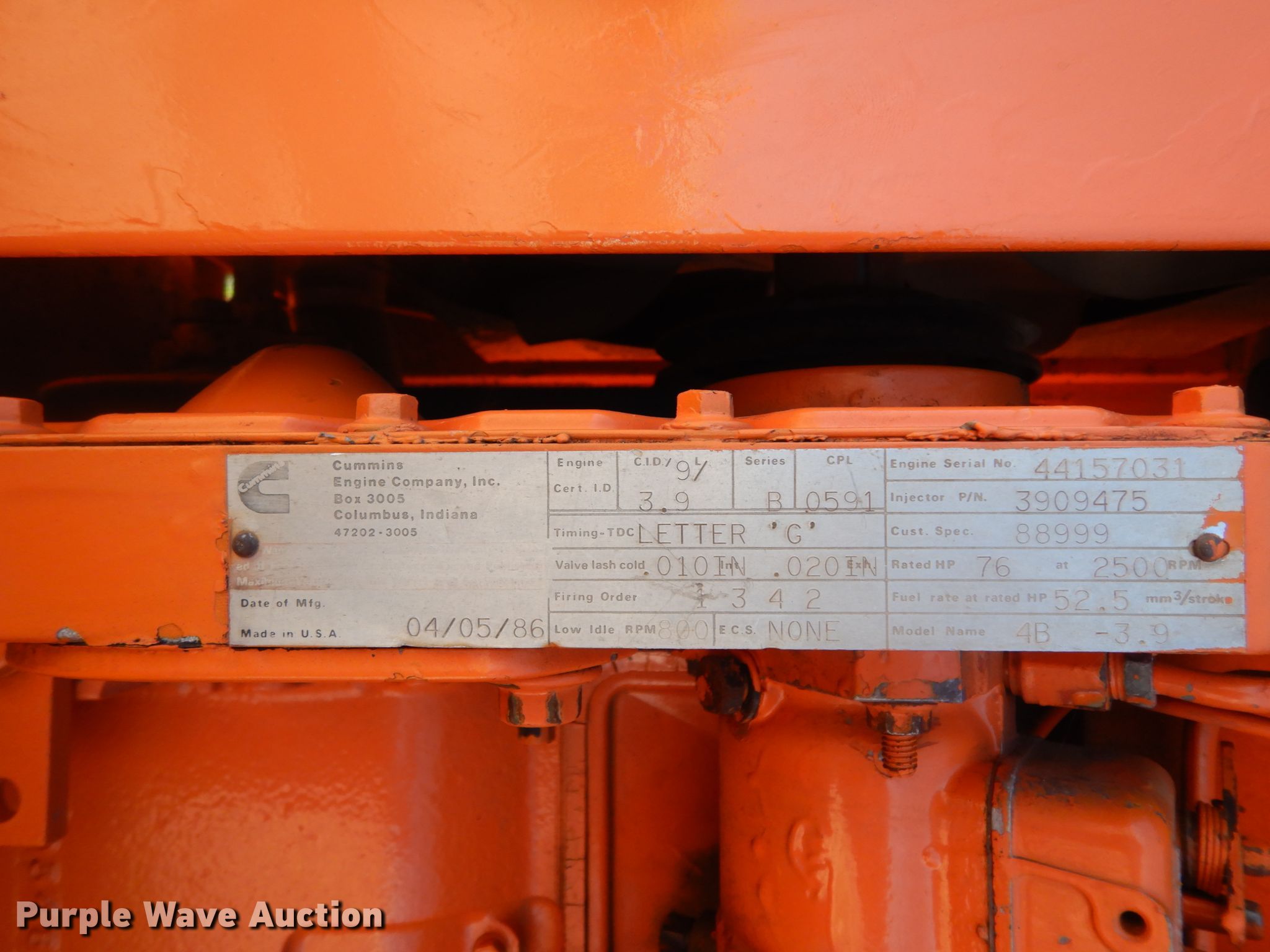 Full-Vision 28-1102A broom. 1,061 hours on meter, Serial: 510110. Engine Cummins 4B, Displacement: 3.9L, Fuel type: Diesel. Transmission Hydrostatic. Chassis Brakes: Hydraulic. Operators station OROPS. Operational Width: 96", Water spray system. Tires Front: 28L-26. Notes Windshield chipped or cracked, Non-operational water spray system. D & T Construction, Inc. 31094 FM 1575. Los Fresnos, TX 78566