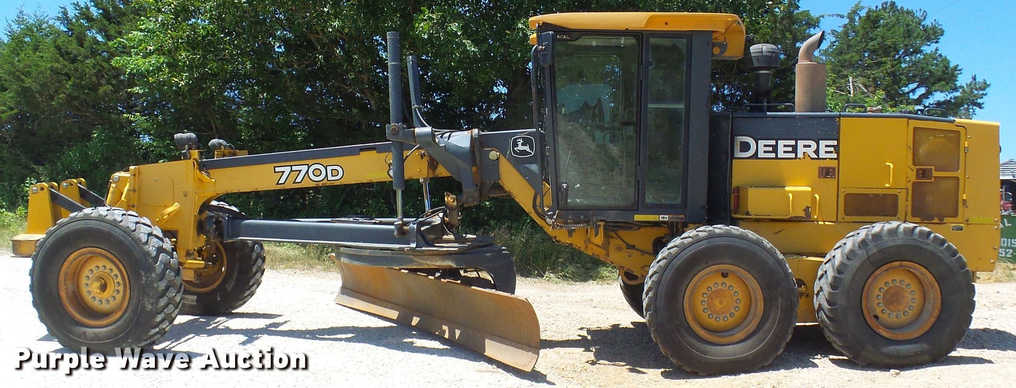 Purple Wave is selling a used Motor Grader in Missouri. This item is a 2007 John Deere 770D motor grader with the following: 11,450 hours on meter, Serial: DW770DX612331