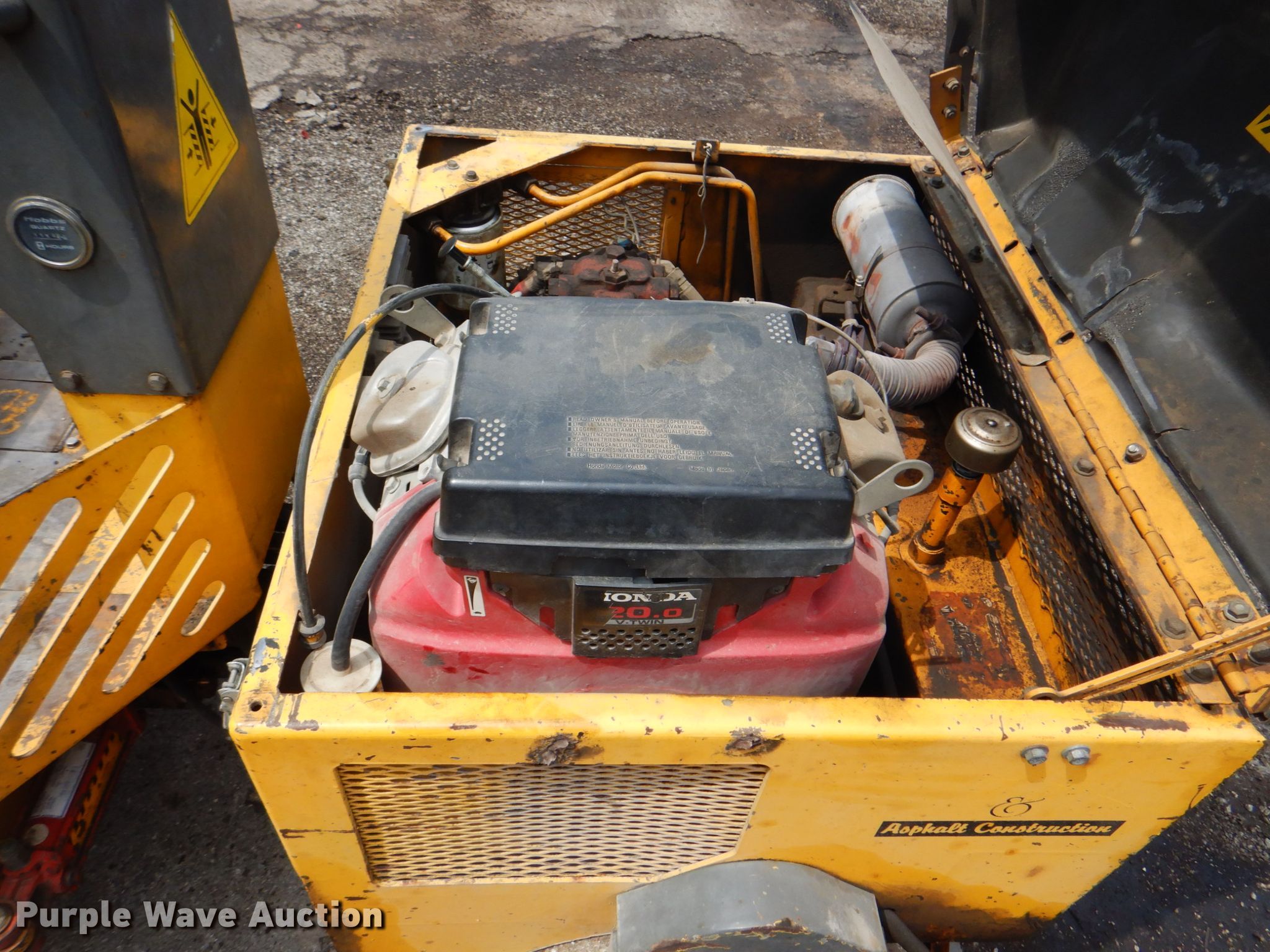 Wolf Pac 3100 double drum vibratory roller. 1,154 hours on meter. Engine Honda, Cylinders: 2, Fuel type: Gas, HP: 18. Transmission Hydrostatic. Operational Drum: Smooth, Vibratory system: Single, Front drum Width: 36", Diameter: 21", Rear drum Width: 36", Diameter: 21", Drum scrapers: Front, Rear, Water spray applicator: Front, Rear. Branchcomb Asphalt. 9845 Frankoma Rd. Sapulpa, OK 74066