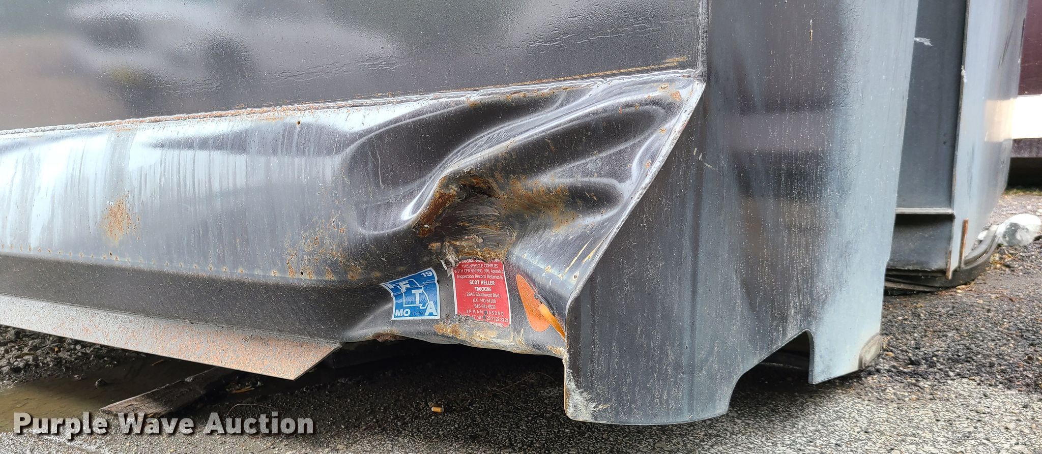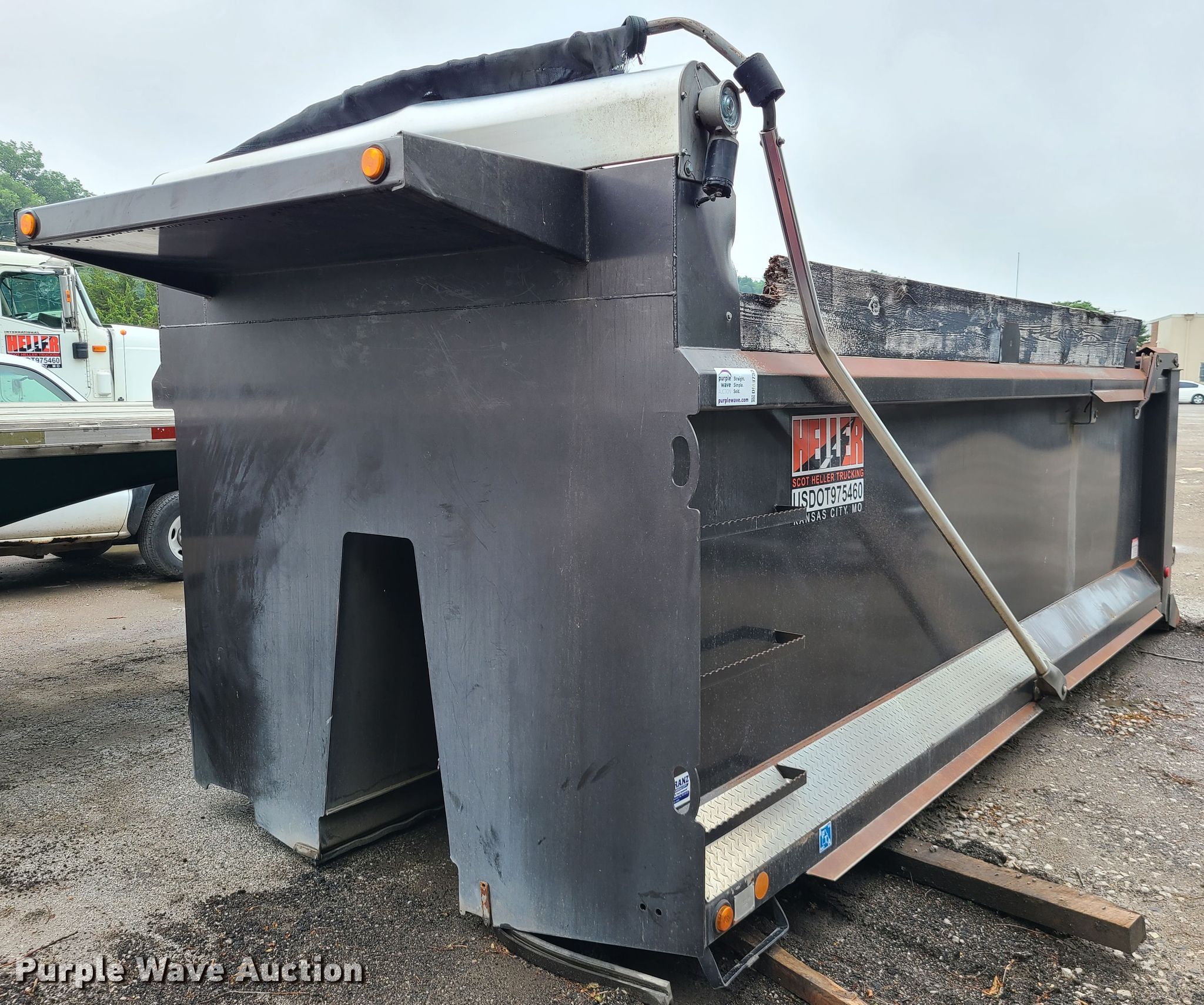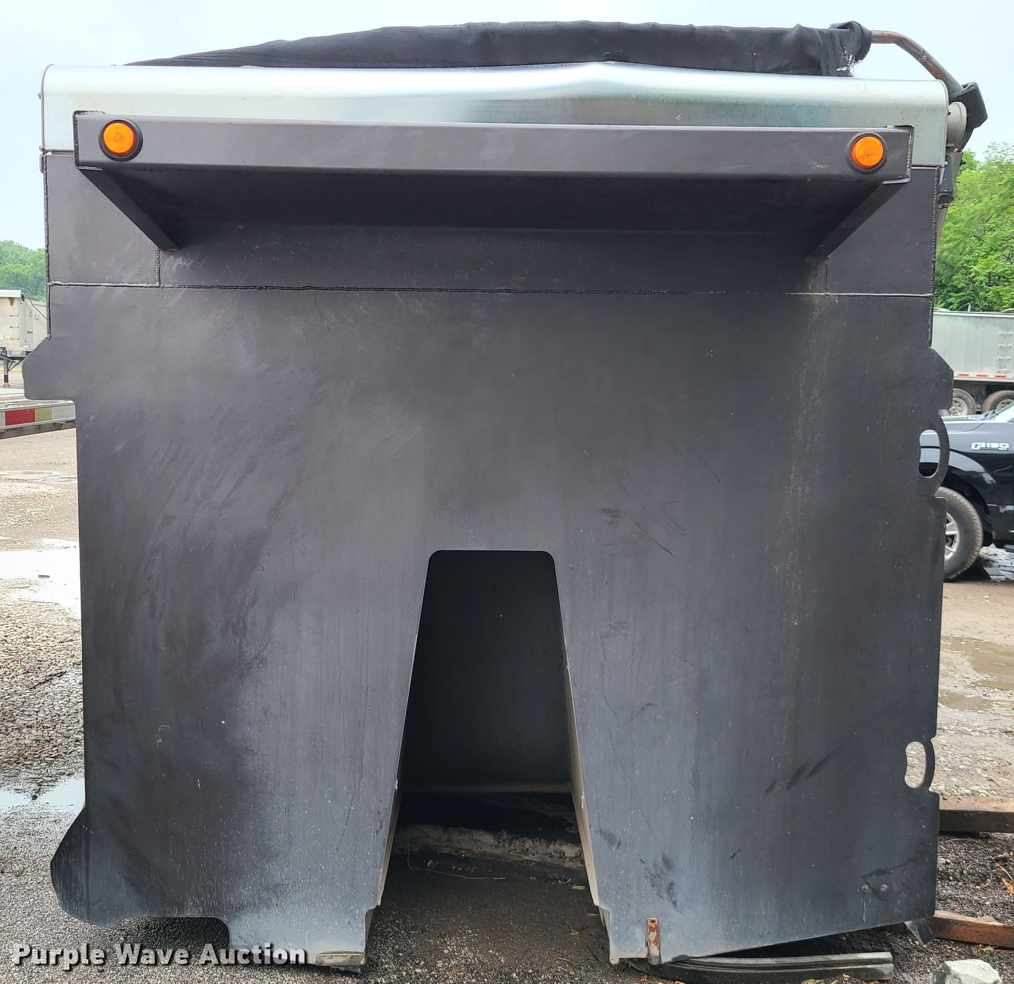 Godwin CS190600415 dump bed. Serial: 0033537, 18' L x 8' W x 56" H, Side board height: 11", Tarp cover. Scot Heller Trucking. 2845 Southwest Blvd. Kansas City, MO 64108
