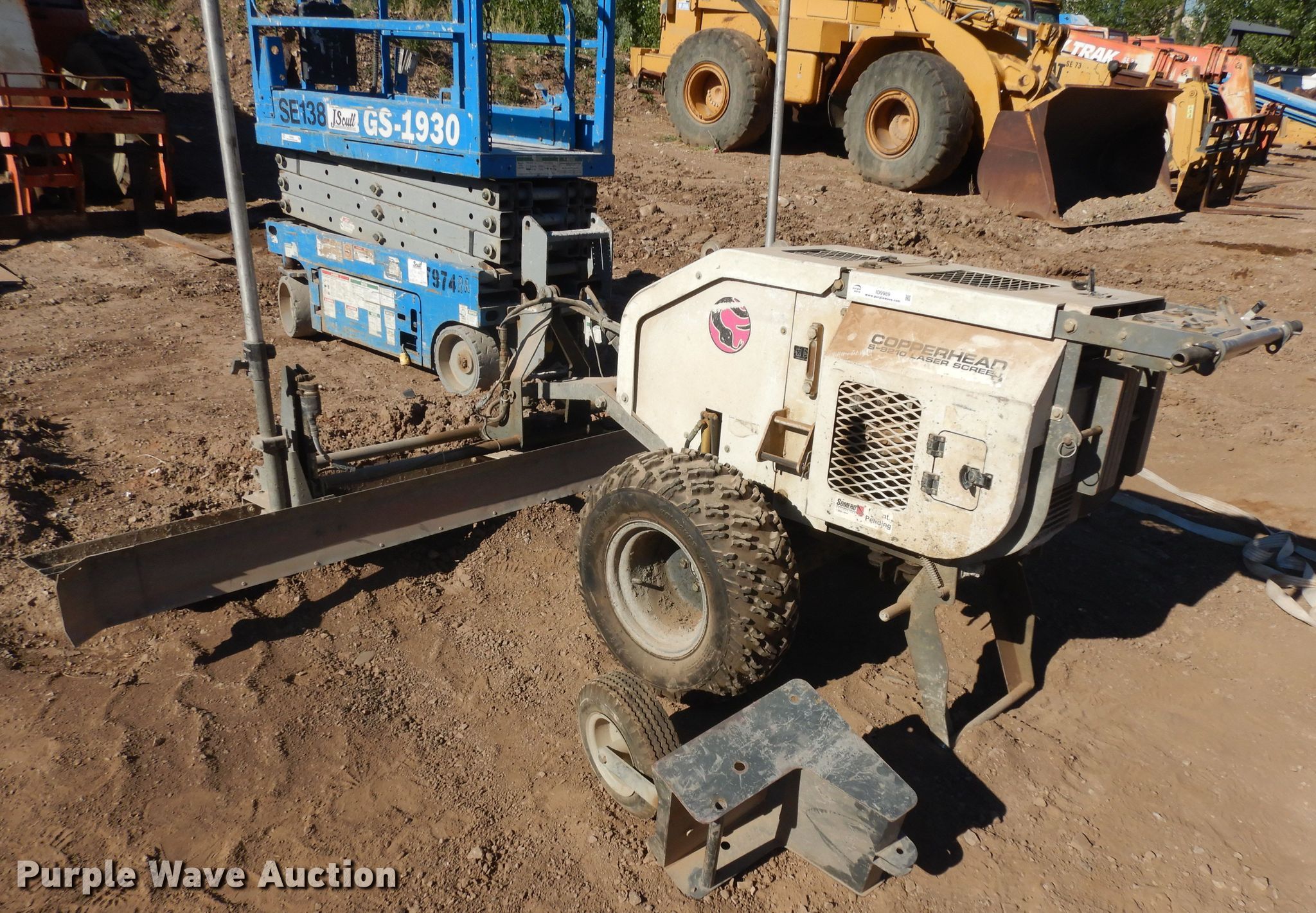 2003 Copperhead S-9210 screed. Serial: 10225ABA0403, Unit #: SE16. Engine Honda, Cylinders: 1, Fuel type: Gas. Transmission Hydrostatic. Operational Screed, Paving width: 10', Grade and slope controls. Tires Size: 205/80R12. Scull Construction Service Inc.. Rapid City, SD 57703