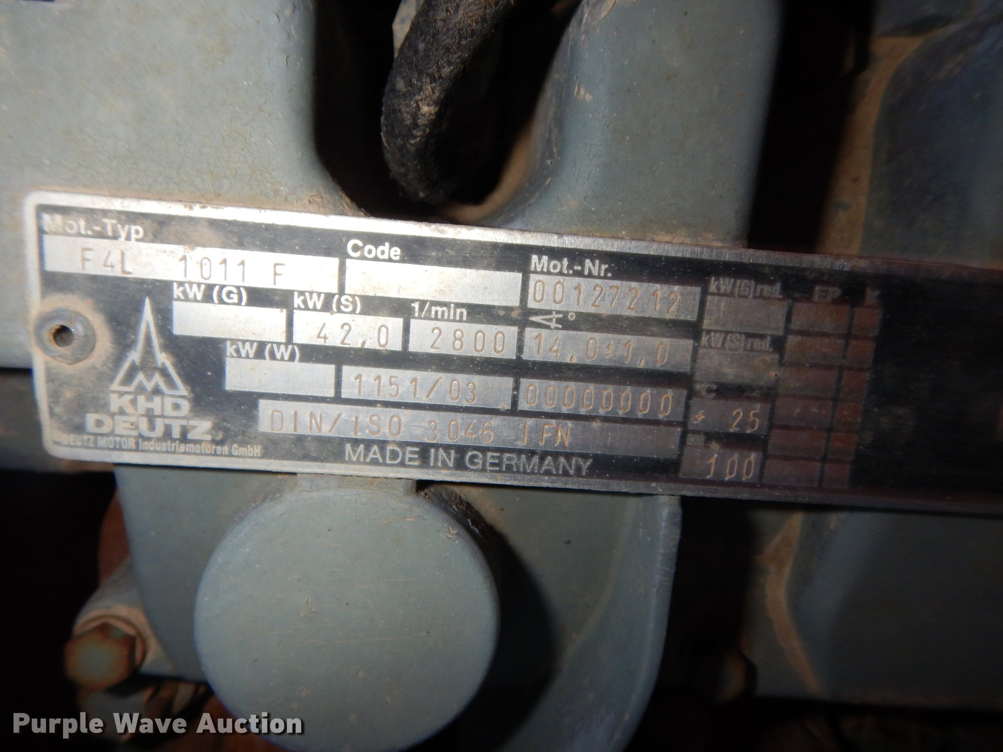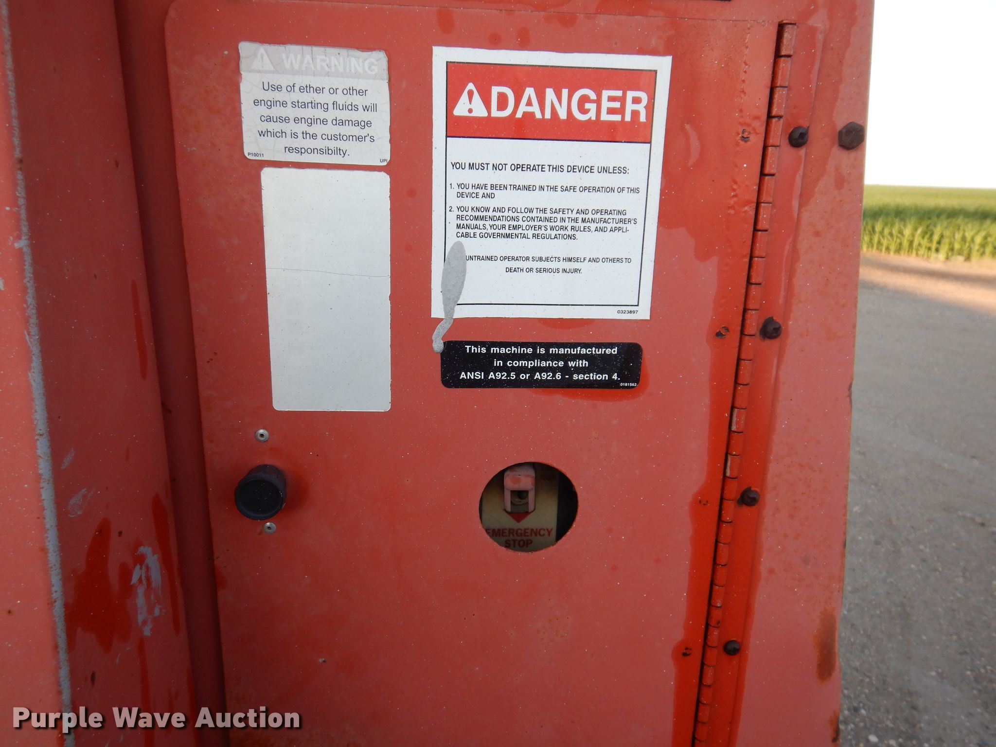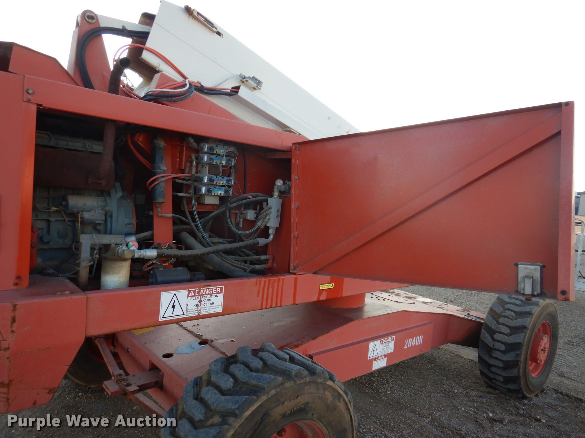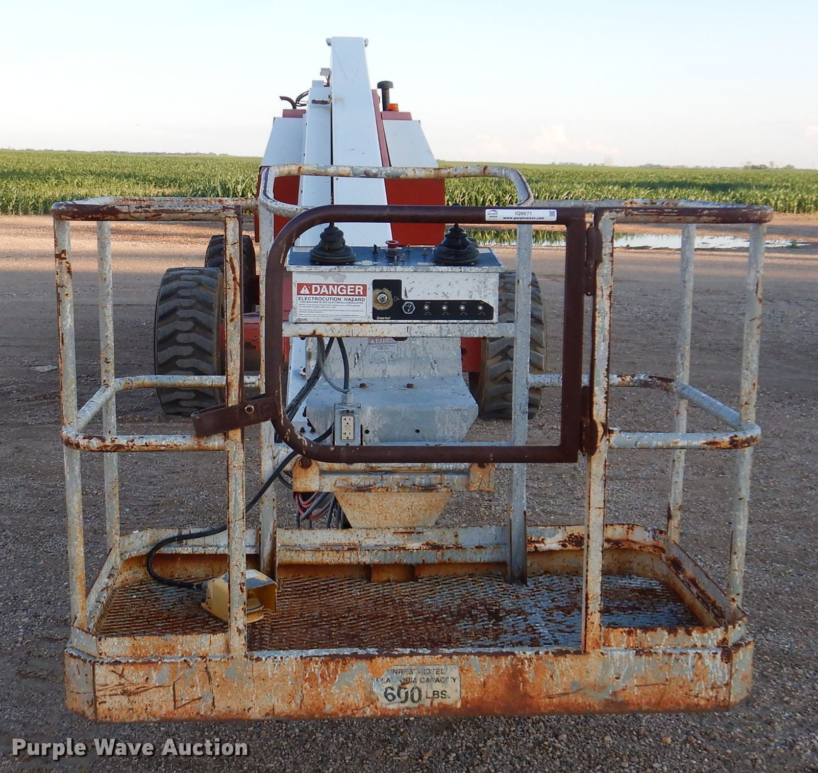 1996 Snorkel TB-A60RDZ boom lift. 5,261 hours on meter, Serial: 961452. Engine Deutz, Serial: F4L 1011 F, Cylinders: 4, Fuel type: Diesel. Chassis Four wheel drive. Operational Maximum lift capacity: 600 lbs, Maximum reach length: 50', Maximum lift height: 60', Platform: 92" L x 30" W, AC power outlet, Controls: Platform, Ground, Platform rotation: Hydraulic. Tires Tire size: 15-19.5. Northland Steel & Trim. 9262 93rd Ave SE. Fullerton, ND 58441