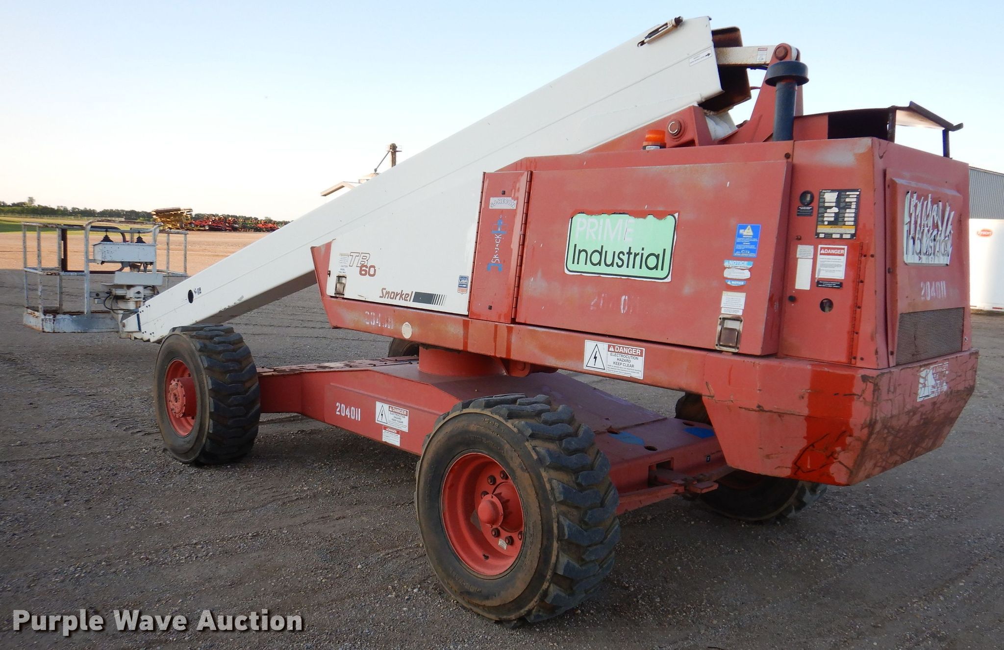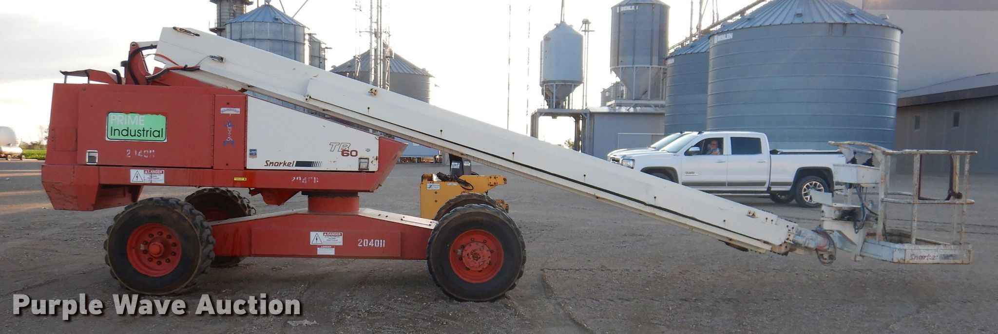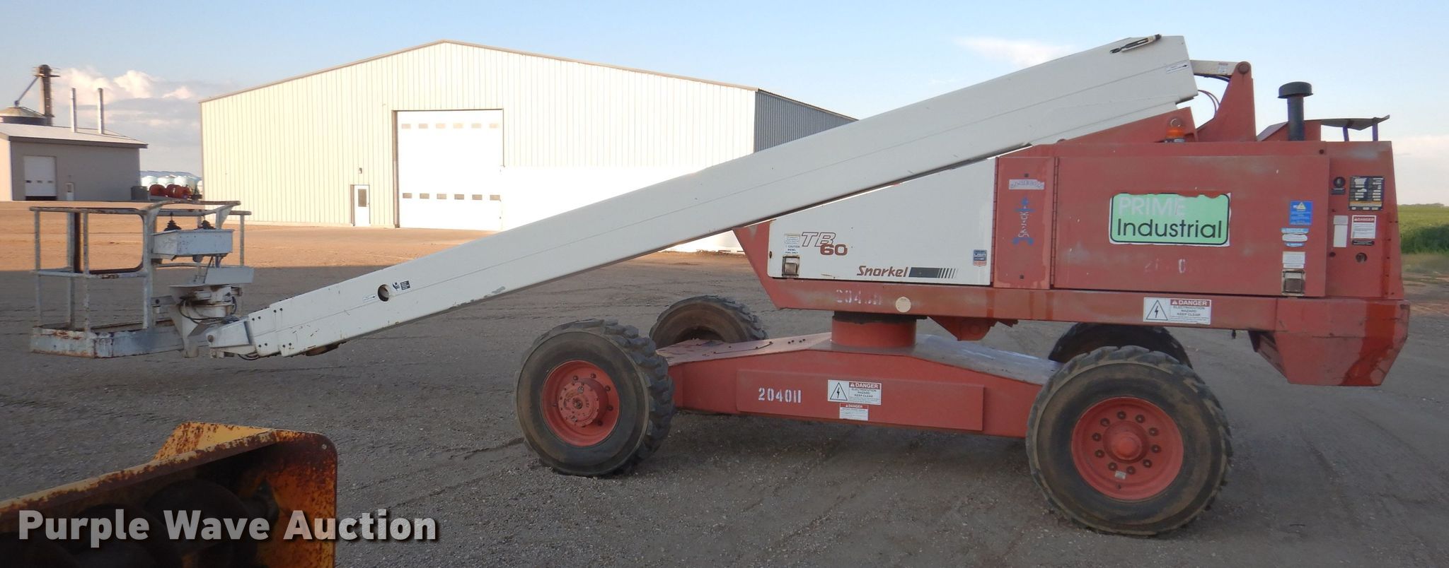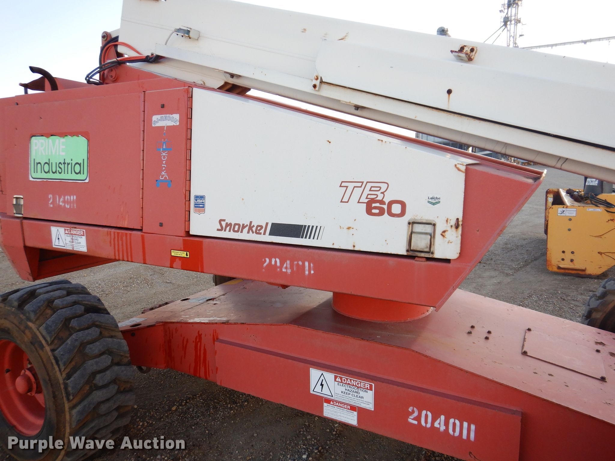 Purple Wave is selling a used Boom Lift in North Dakota. This item is a 1996 Snorkel TB-A60RDZ boom lift with the following: 5,261 hours on meter, Serial: 961452