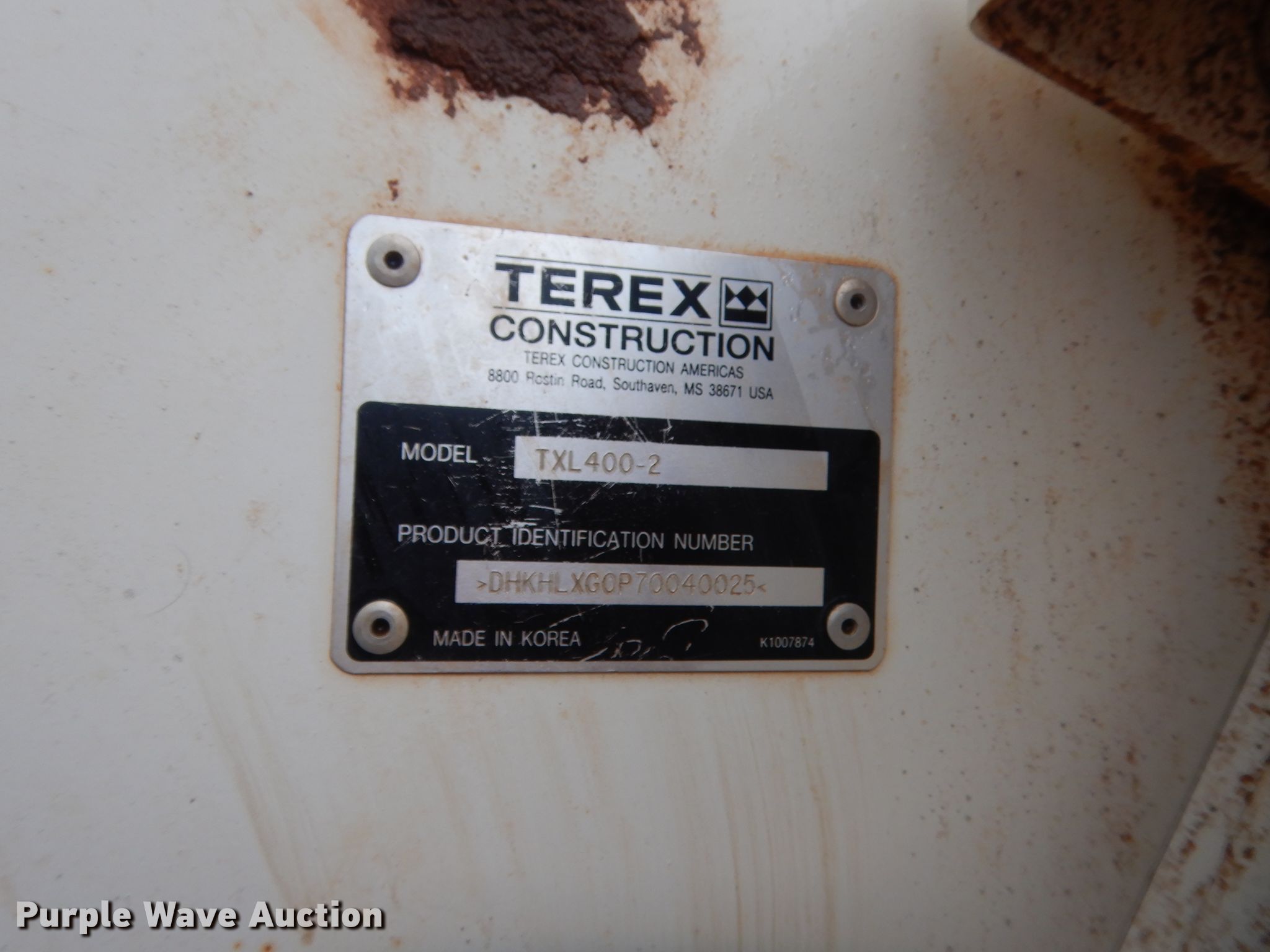 Purple Wave is selling a used Wheel Loader in Oklahoma. This item is a 2007 Terex TXL400-2 wheel loader with the following: 6,900 hours on meter, Serial: DHKHLXGOP70040025