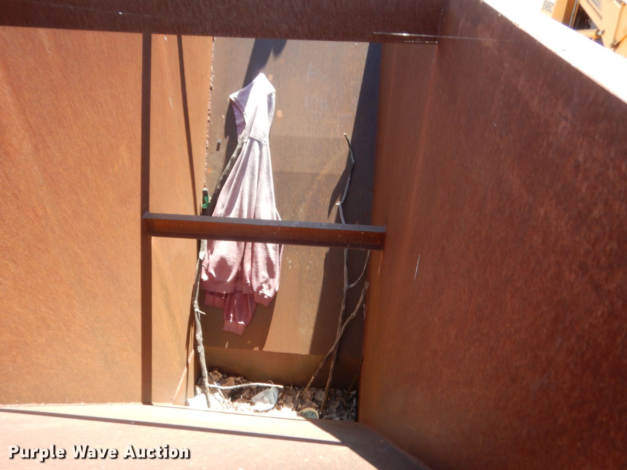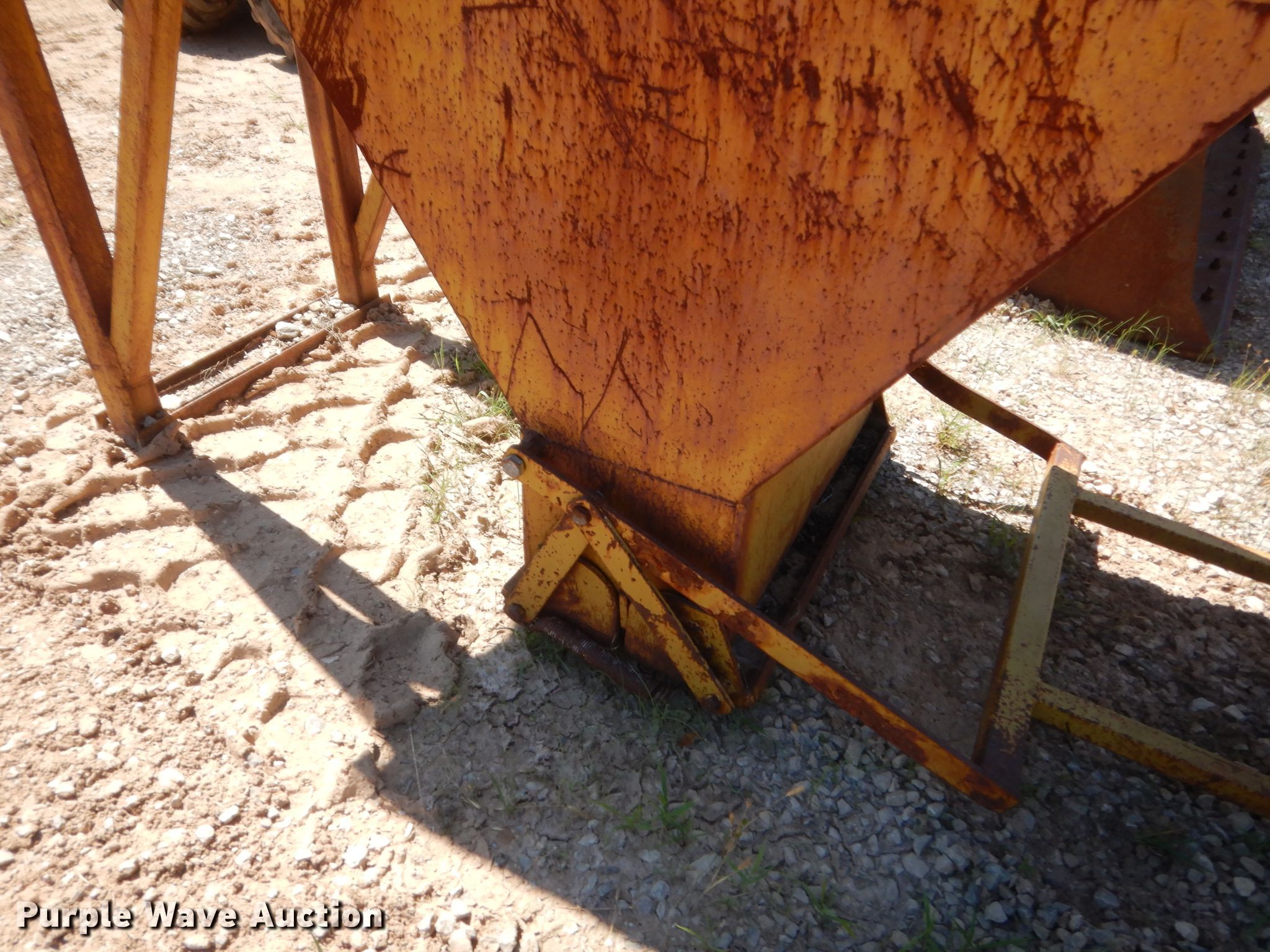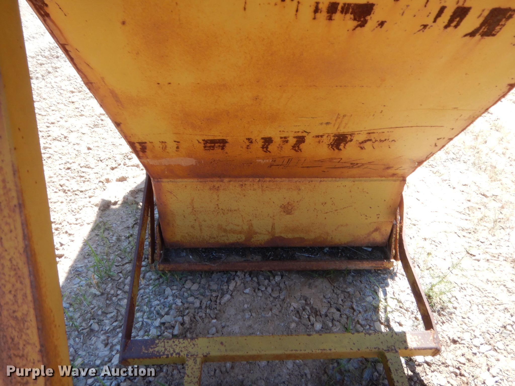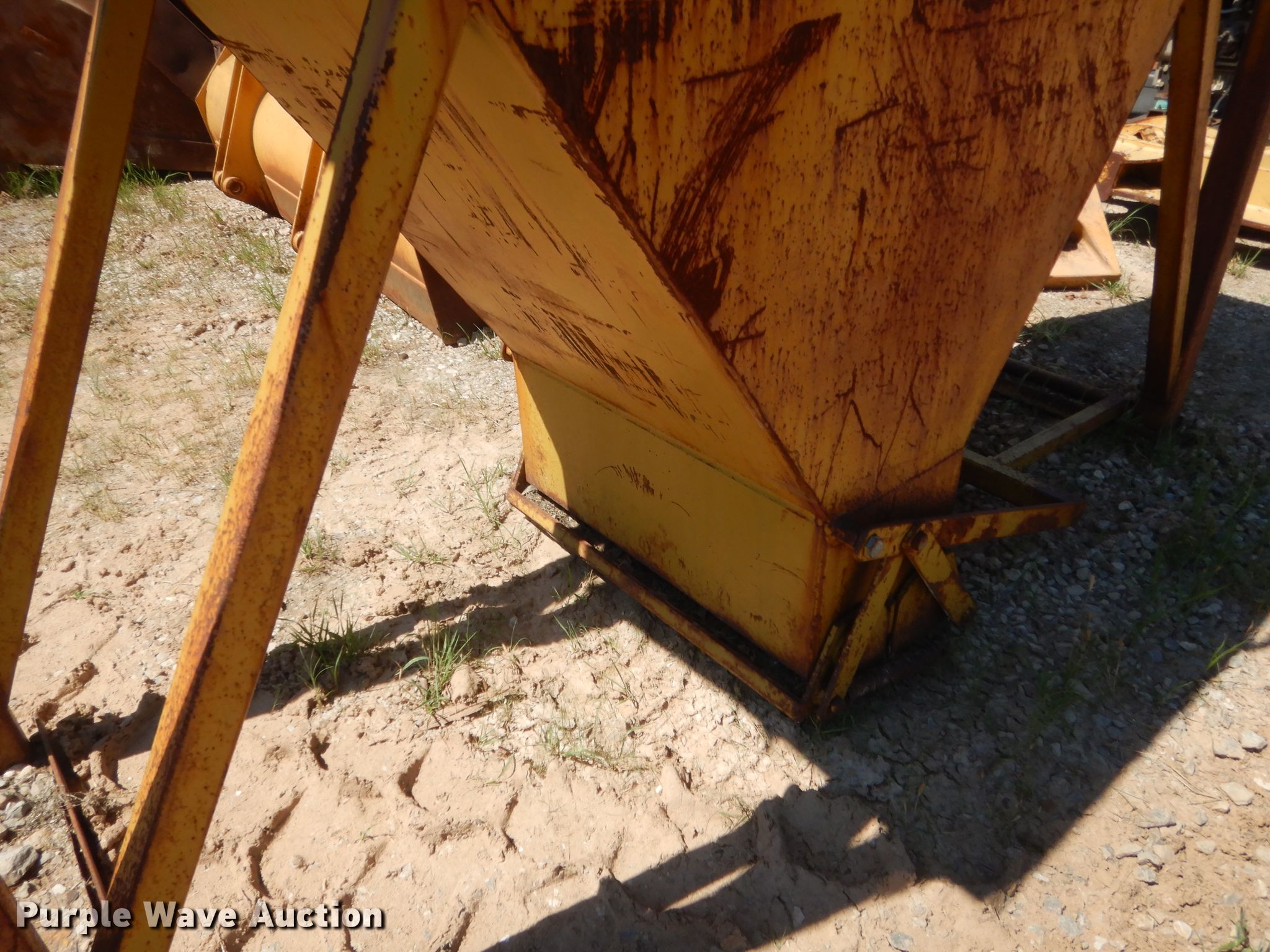 Aggregate bucket. Approximately 90" L x 30" W, Spring operated manual door. United Trenching. 821 Inla Ave. Yukon, OK 73099