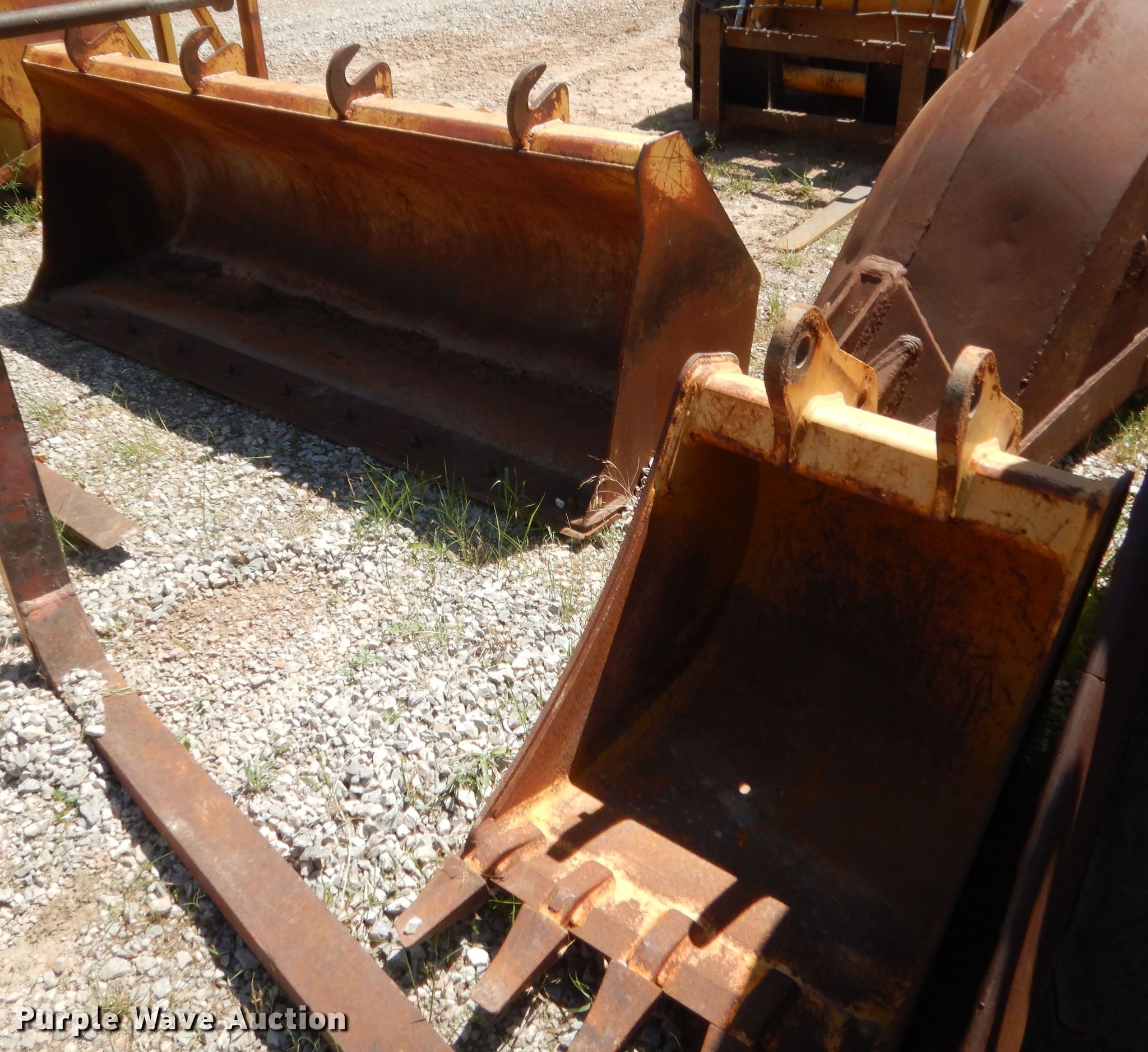 Purple Wave is selling a used Bucket or Loader Attach. in Oklahoma. This item is a (2) Case buckets with the following: Backhoe bucket, Width: 24", Teeth: 5, Loader bucket, Width: 93", Cutting edge: Bolt-on, Fit Case 590