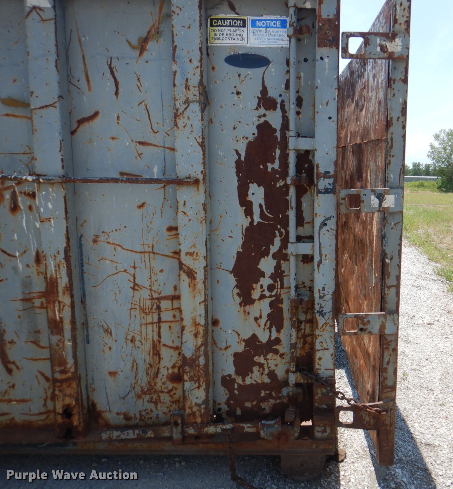 Purple Wave is selling a used Refuse or Compaction Equip. in Iowa. This item is a Gregory roll-off dumpster with the following: 21'8" L x 94" W x 82" H