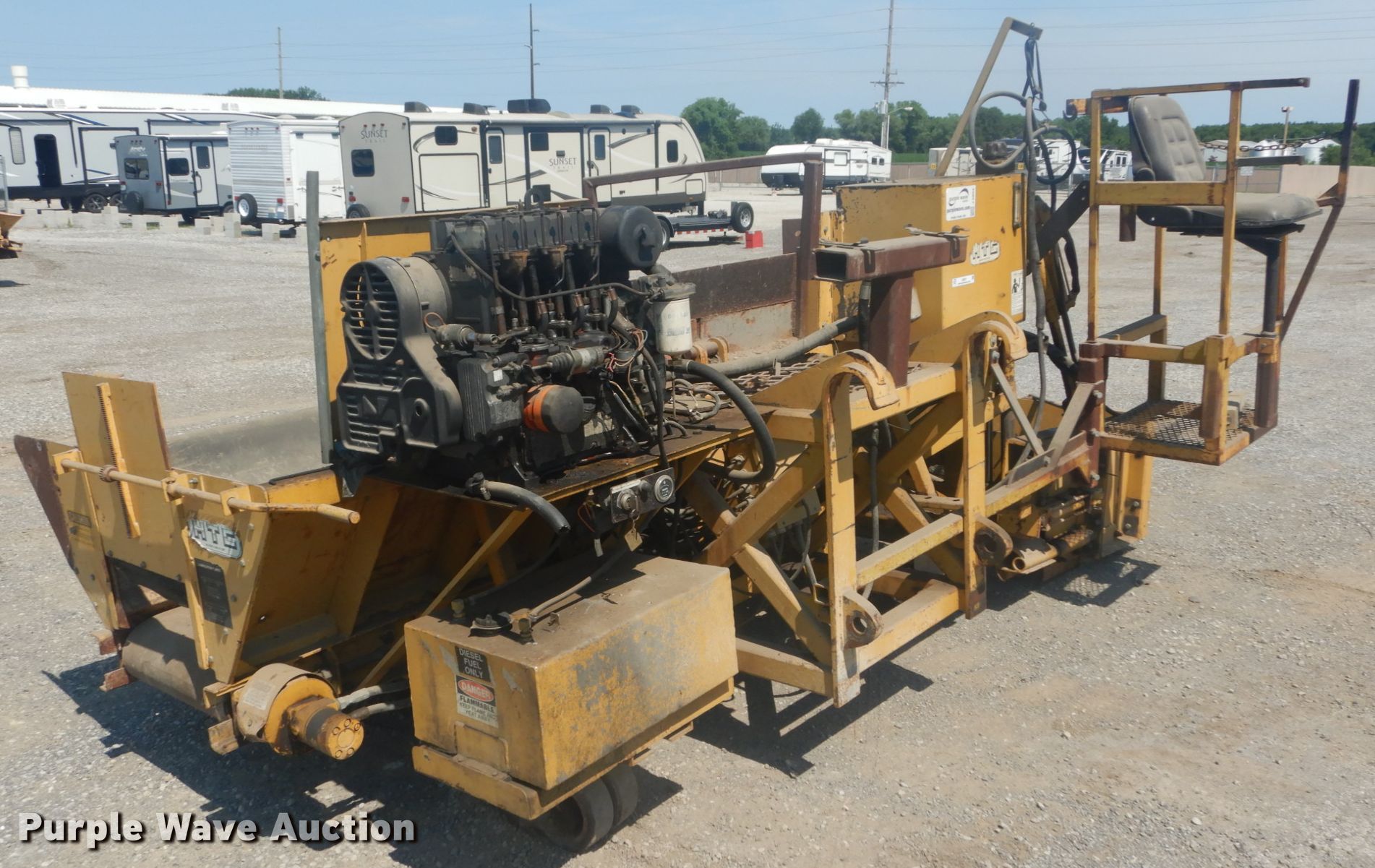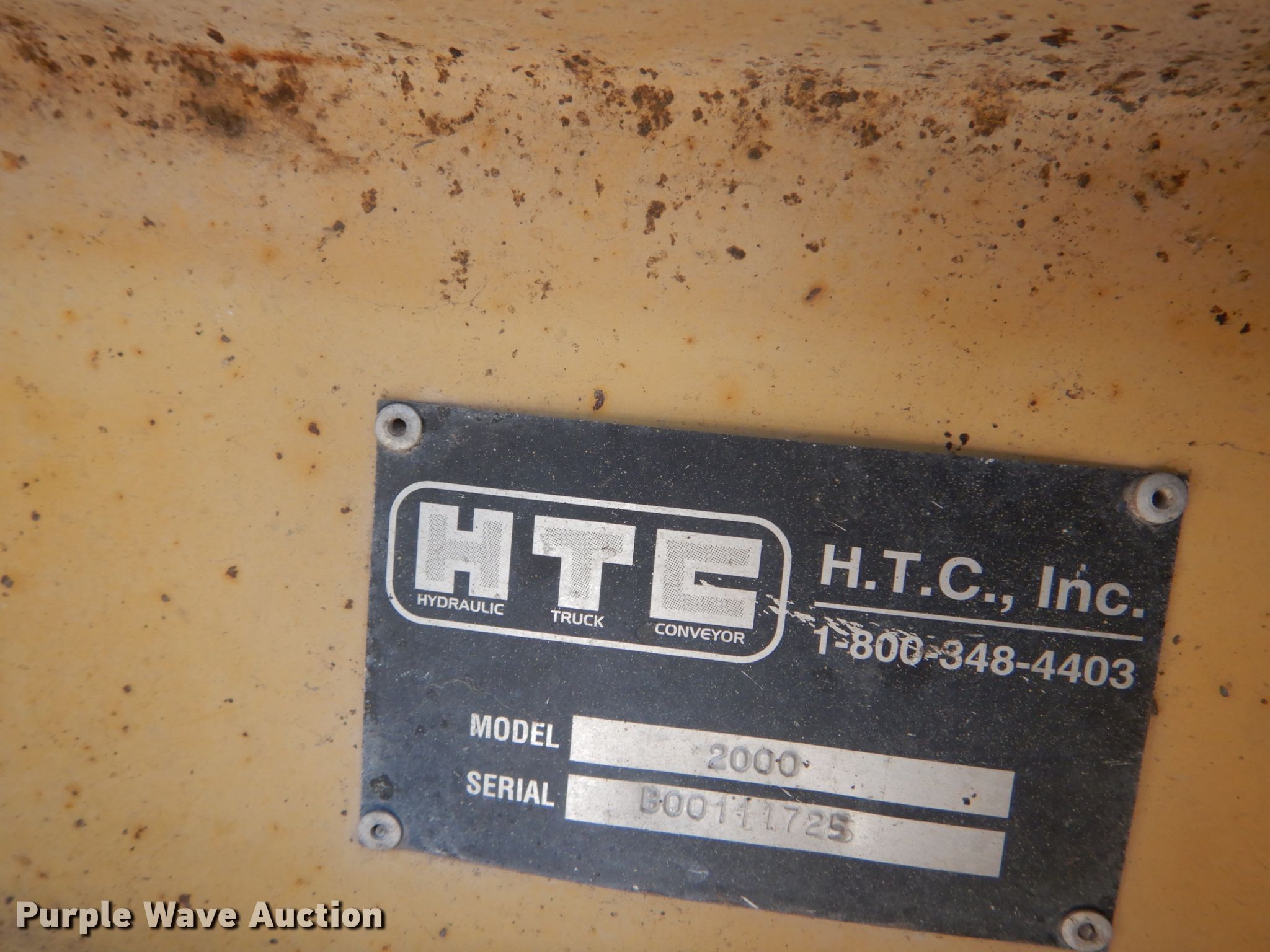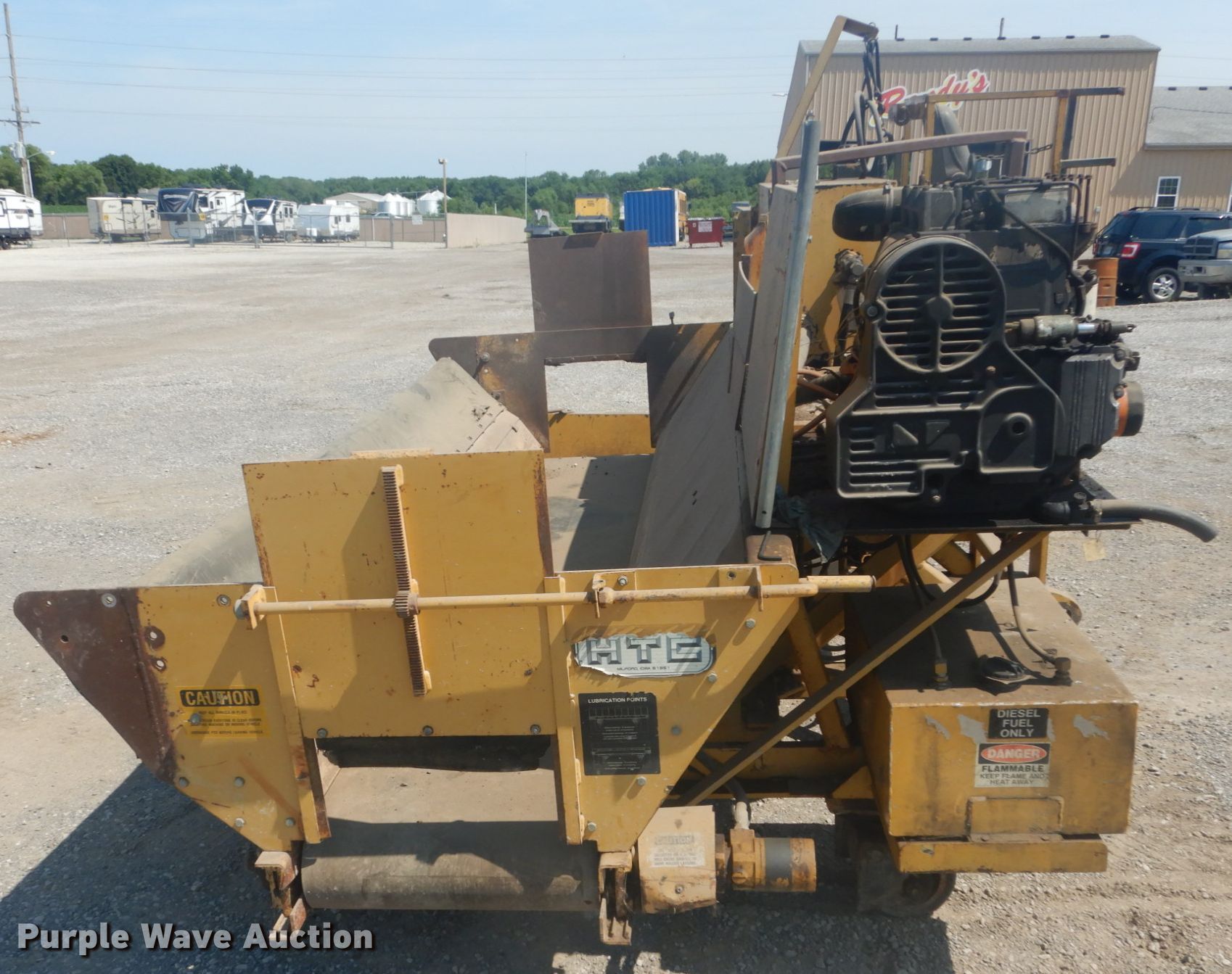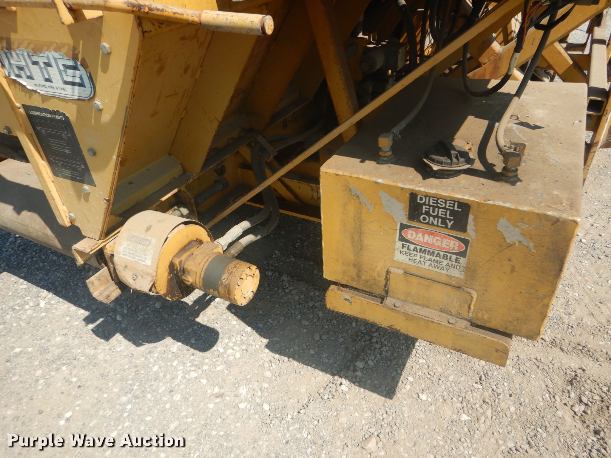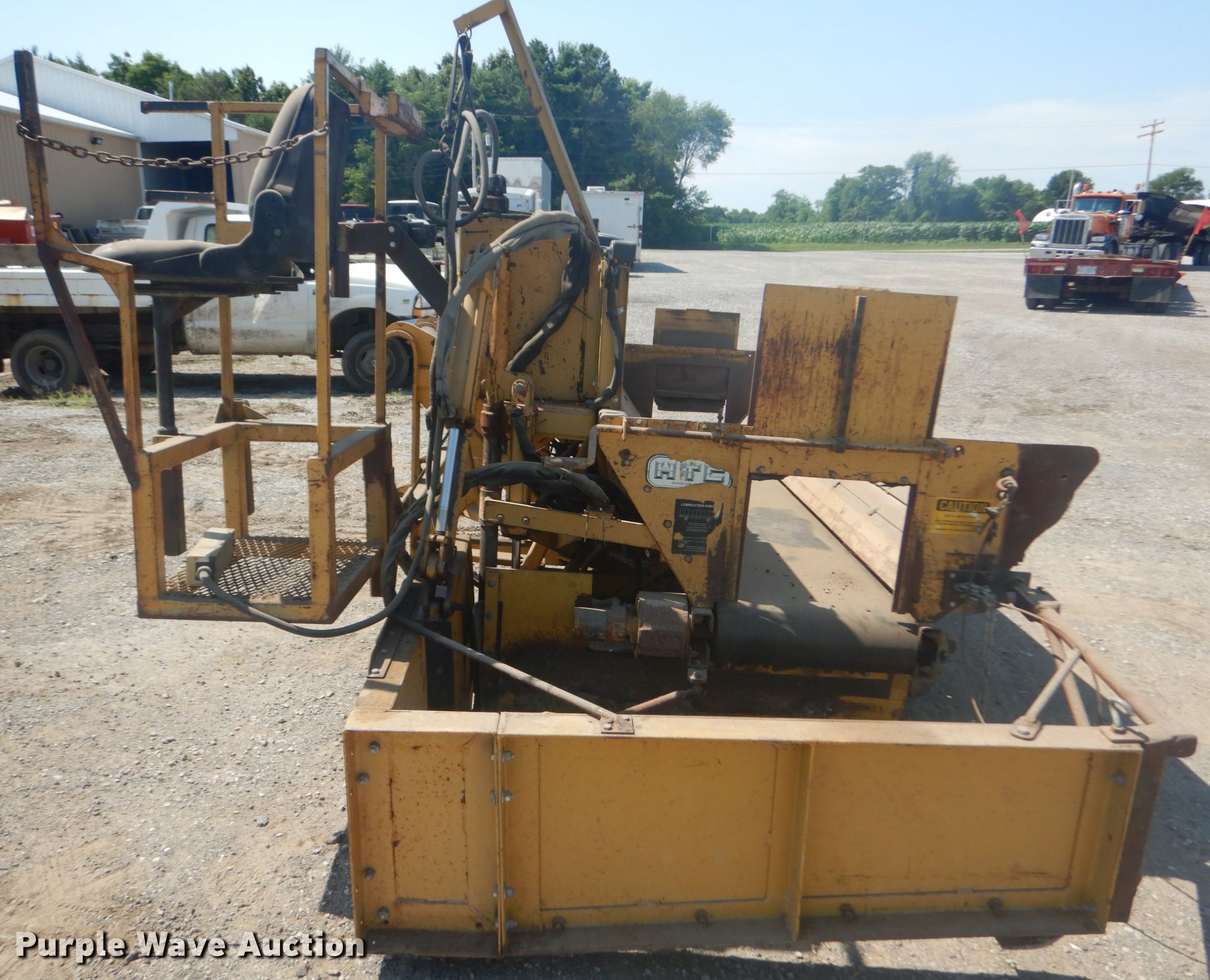 Purple Wave is selling a used Paving Sply. or Attach. in Illinois. This item is a HTC 2000 shoulder side spreader with the following: 2,248 hours on meter, Three cylinder diesel engine, 10'W hopper, Loader mount, Unknown operating condition, Serial B00111725