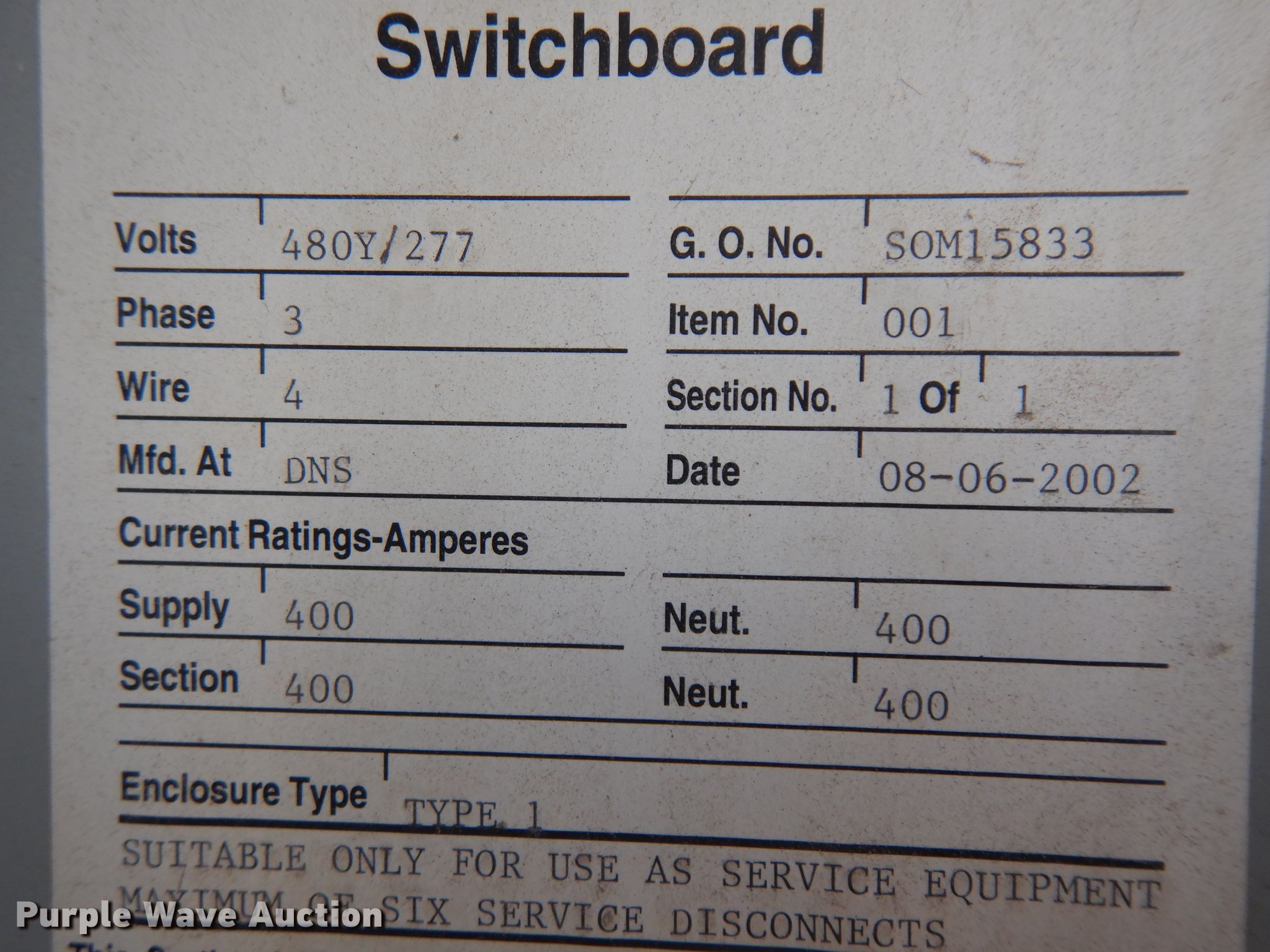 Purple Wave is selling a used Building Materials in Nebraska. This item is a Cutler Hammer Pow-R-Line C switchboard with the following: 480Y/277V, Three phase
