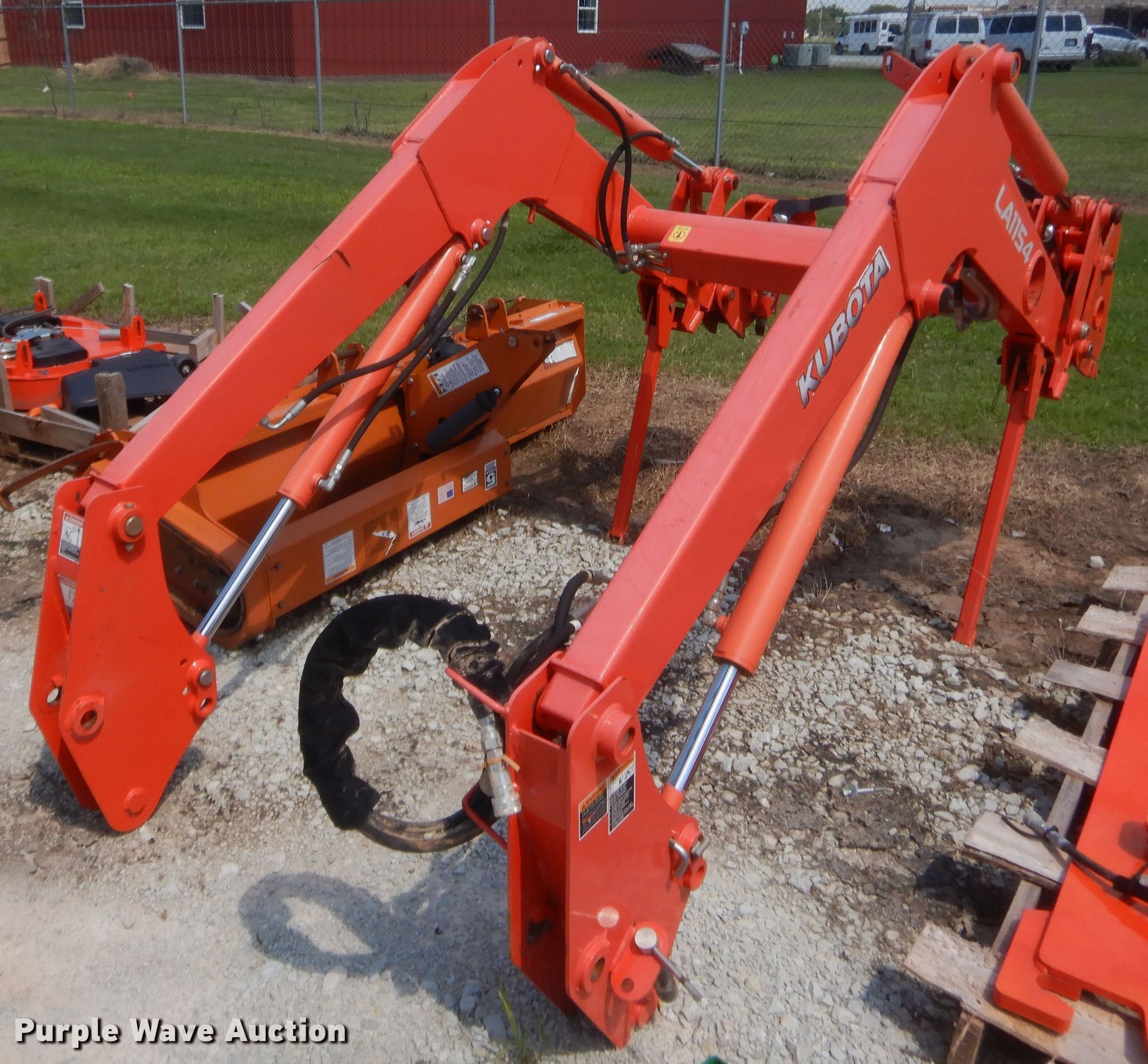 Purple Wave is selling a used Ag Tractor Loader or Attach. in Oklahoma. This item is a Kubota LA1154 loader with the following: Control valves, Mounting brackets, Hardware