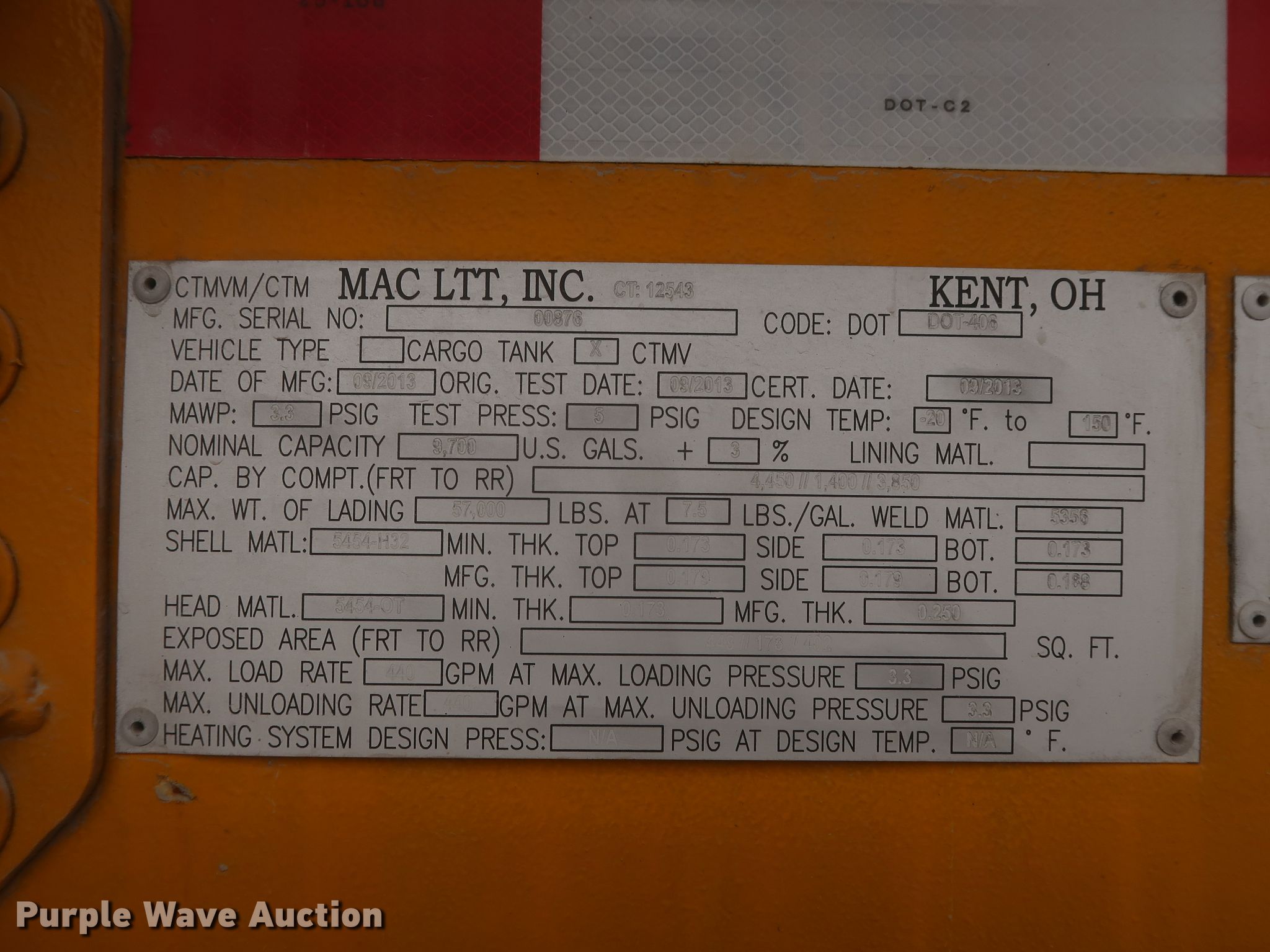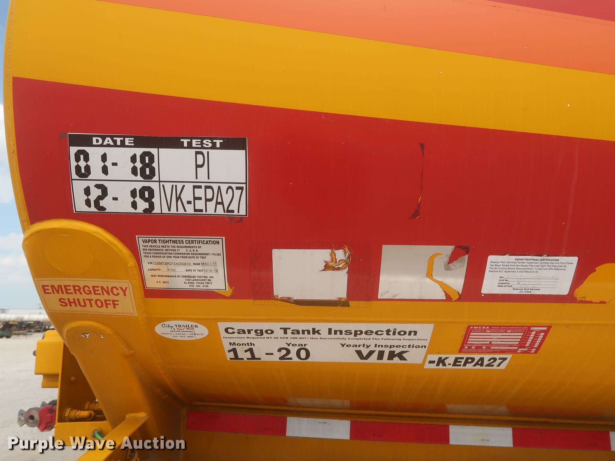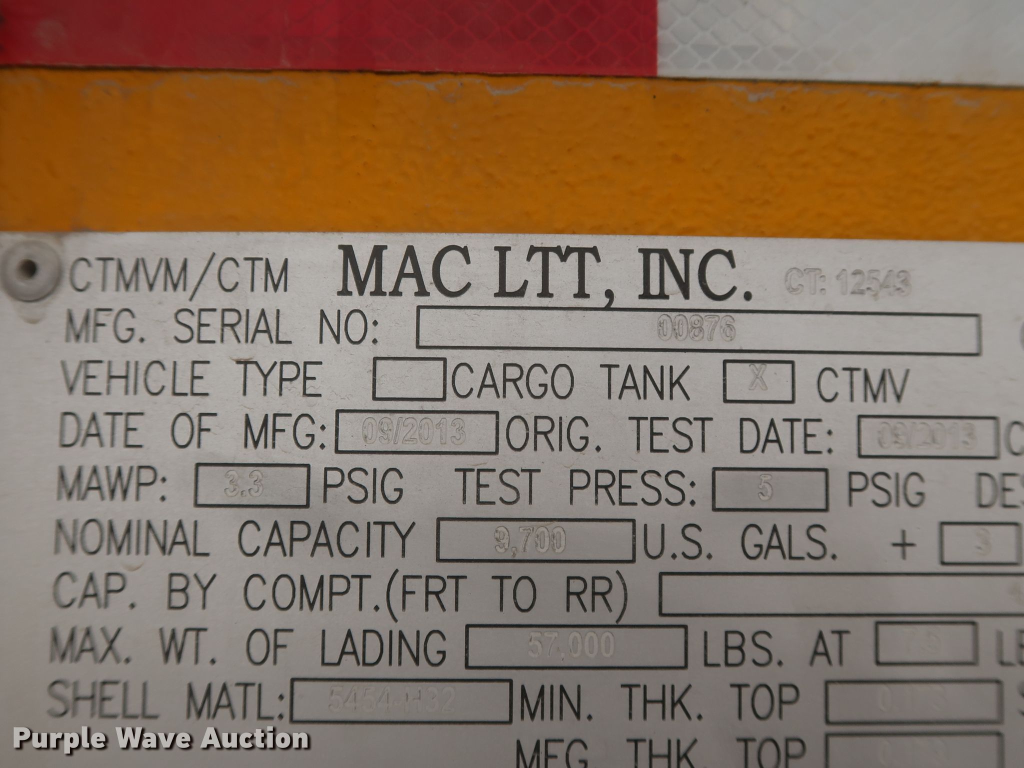 Purple Wave is selling a used Tank Trailer in Oklahoma. This item is a 2014 Mac LTT tank trailer with the following: Unit #: 3110
