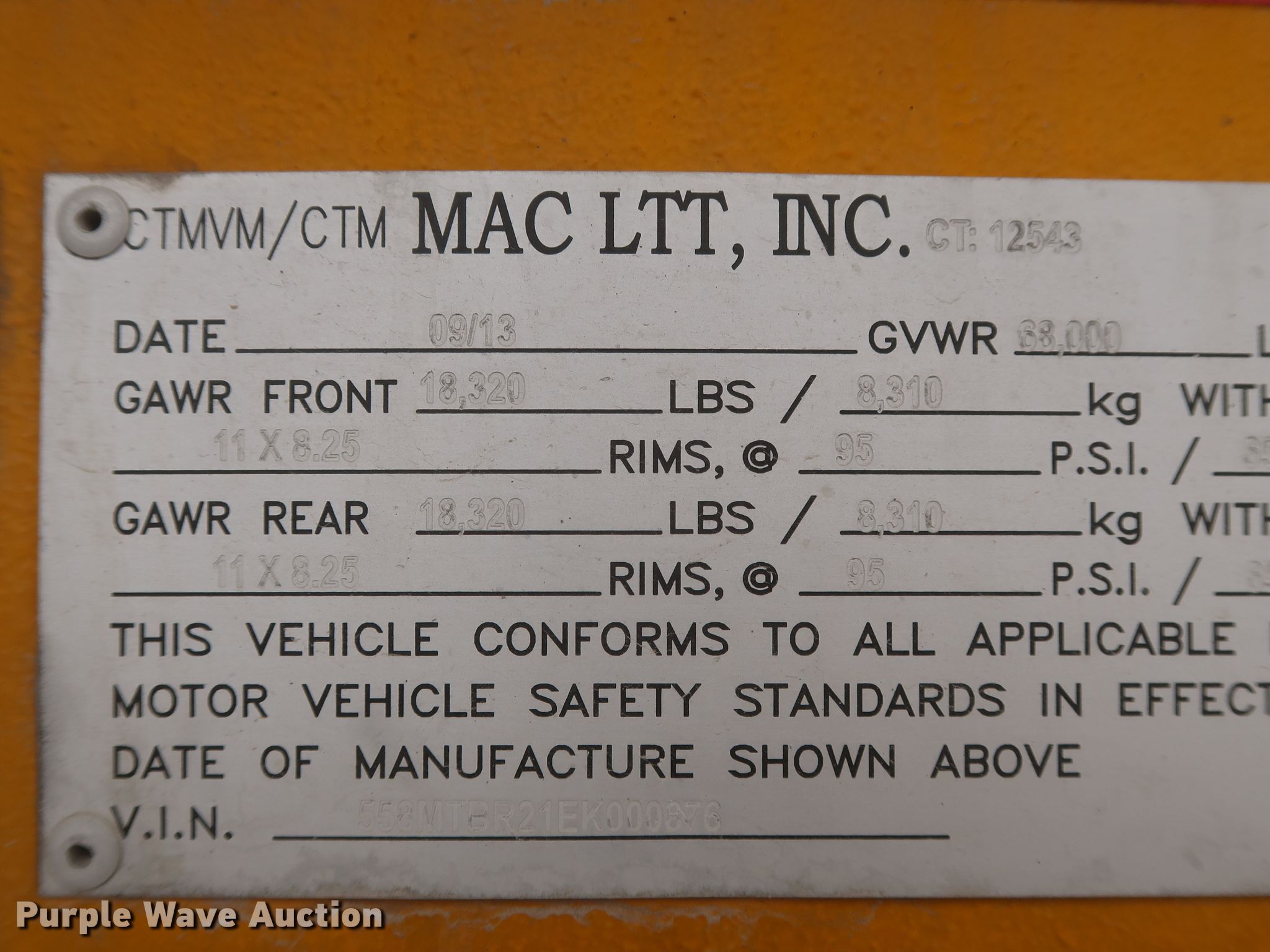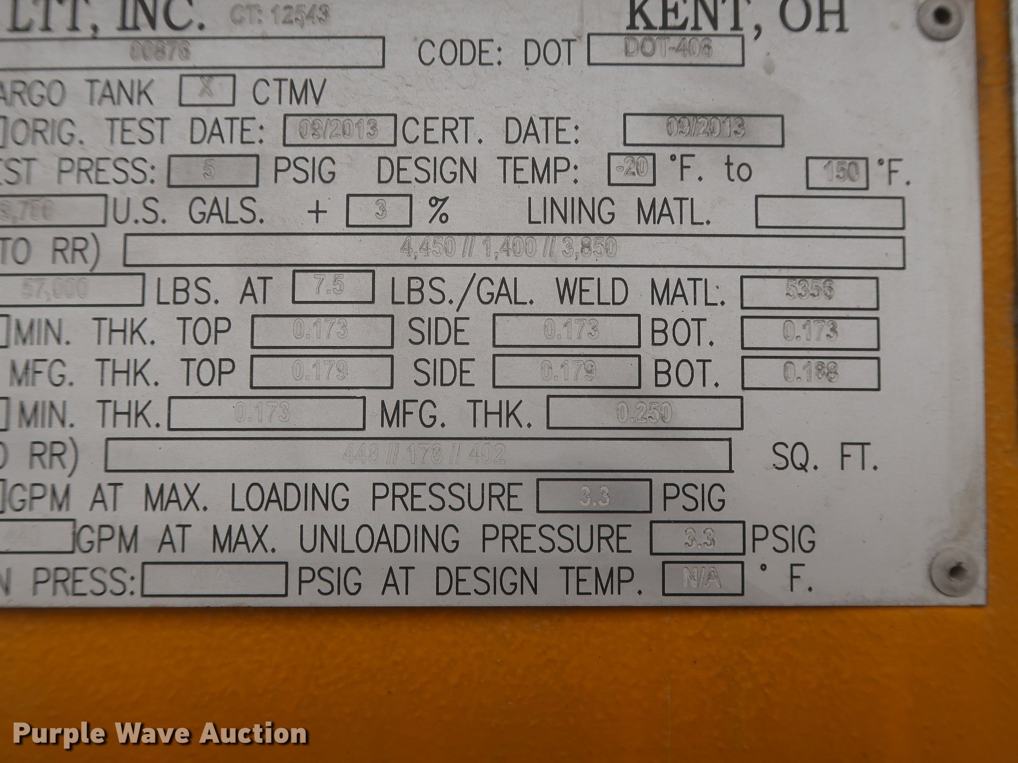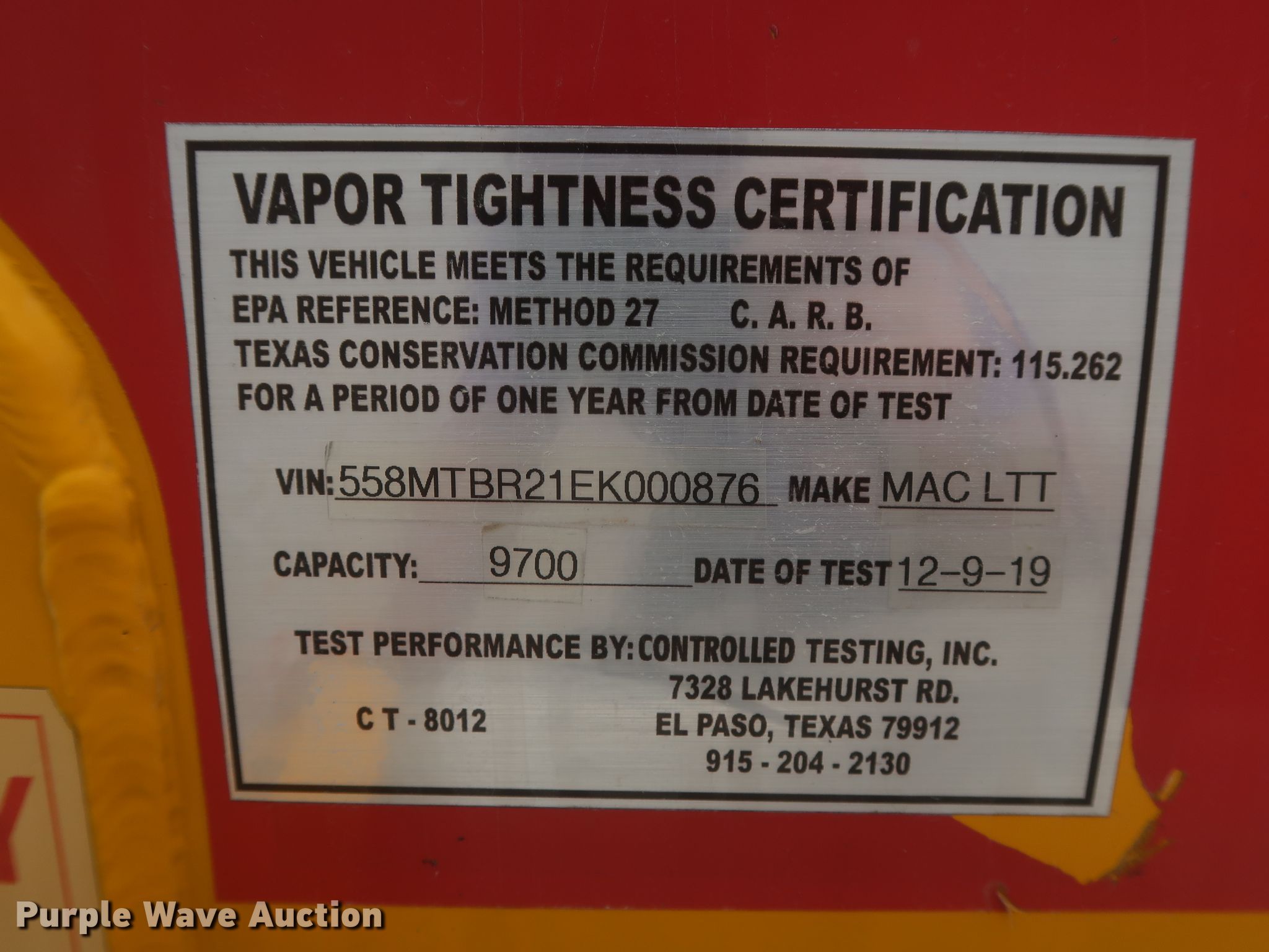 Purple Wave is selling a used Tank Trailer in Oklahoma. This item is a 2014 Mac LTT tank trailer with the following: Unit #: 3110