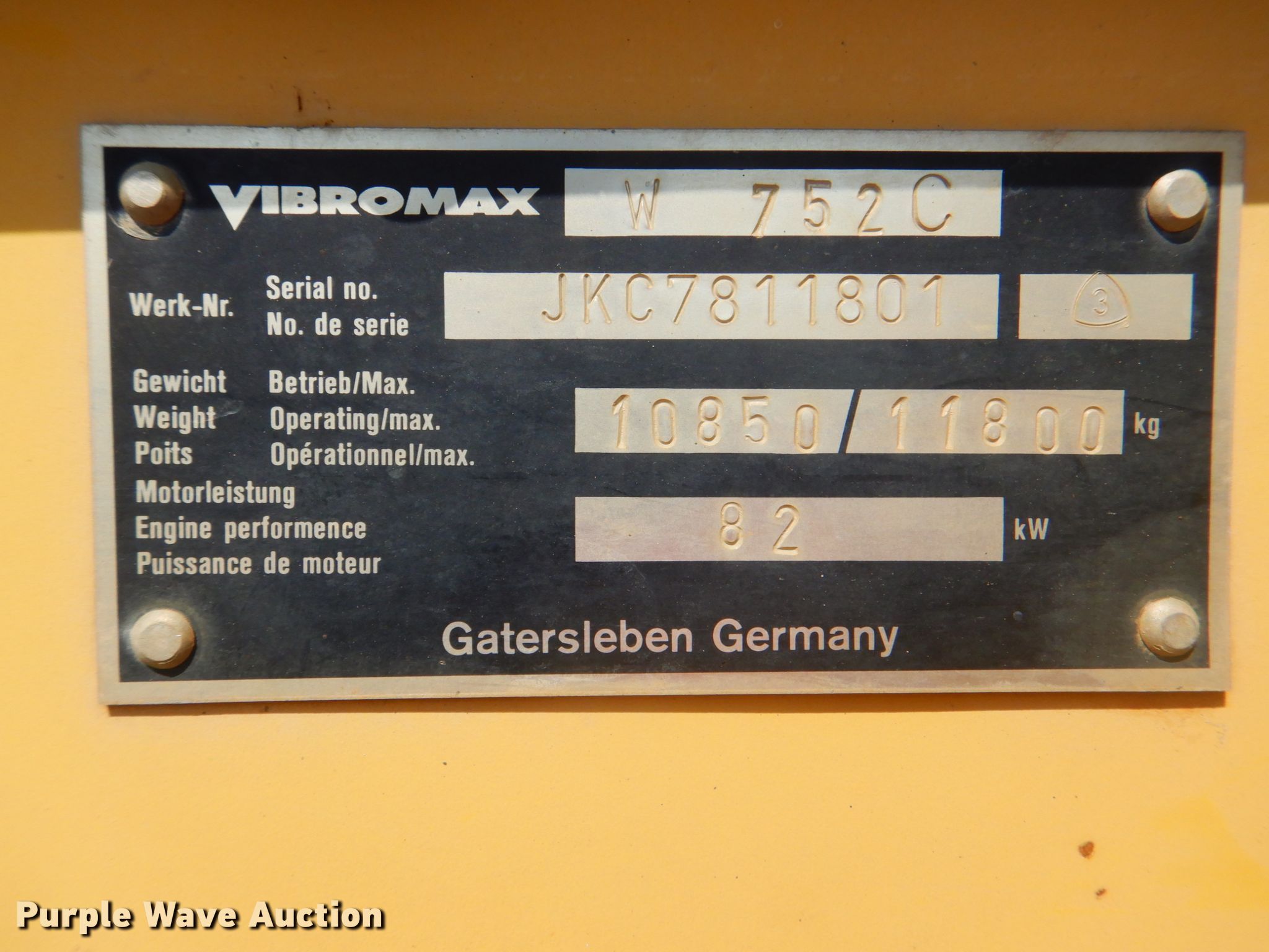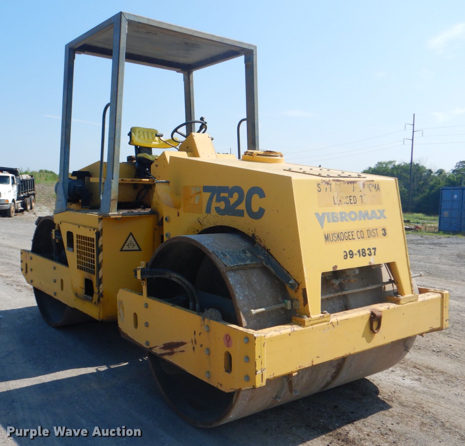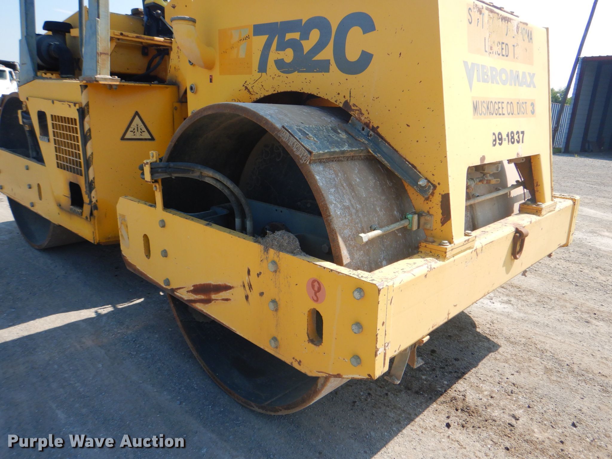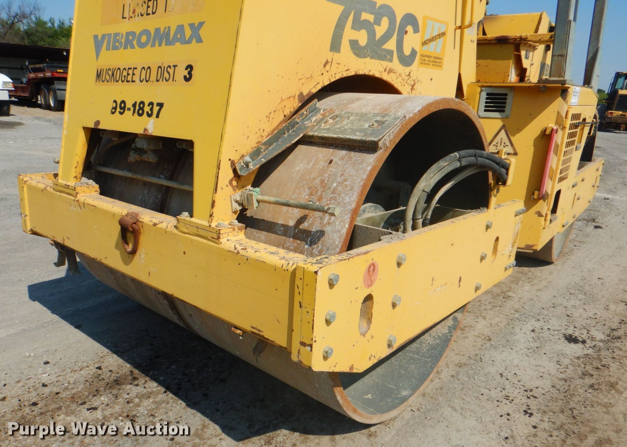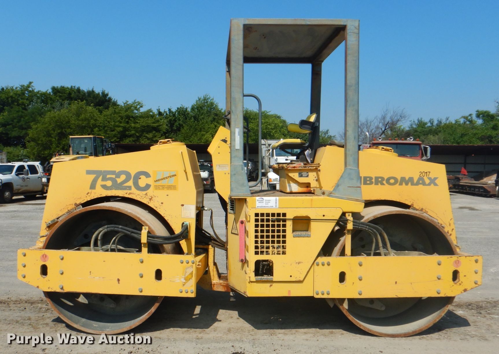 Purple Wave is selling a used Double Drum Roller Compactor in Oklahoma. This item is a 2004 Vibromax 752C double drum vibratory roller with the following: 1,088 hours on meter, Serial: JKC7811801