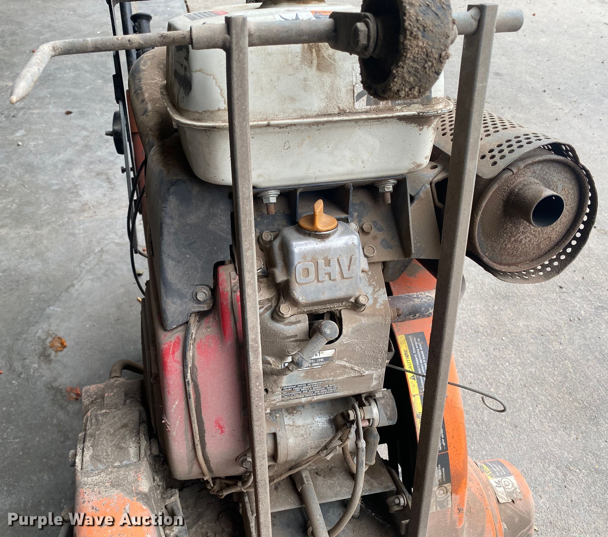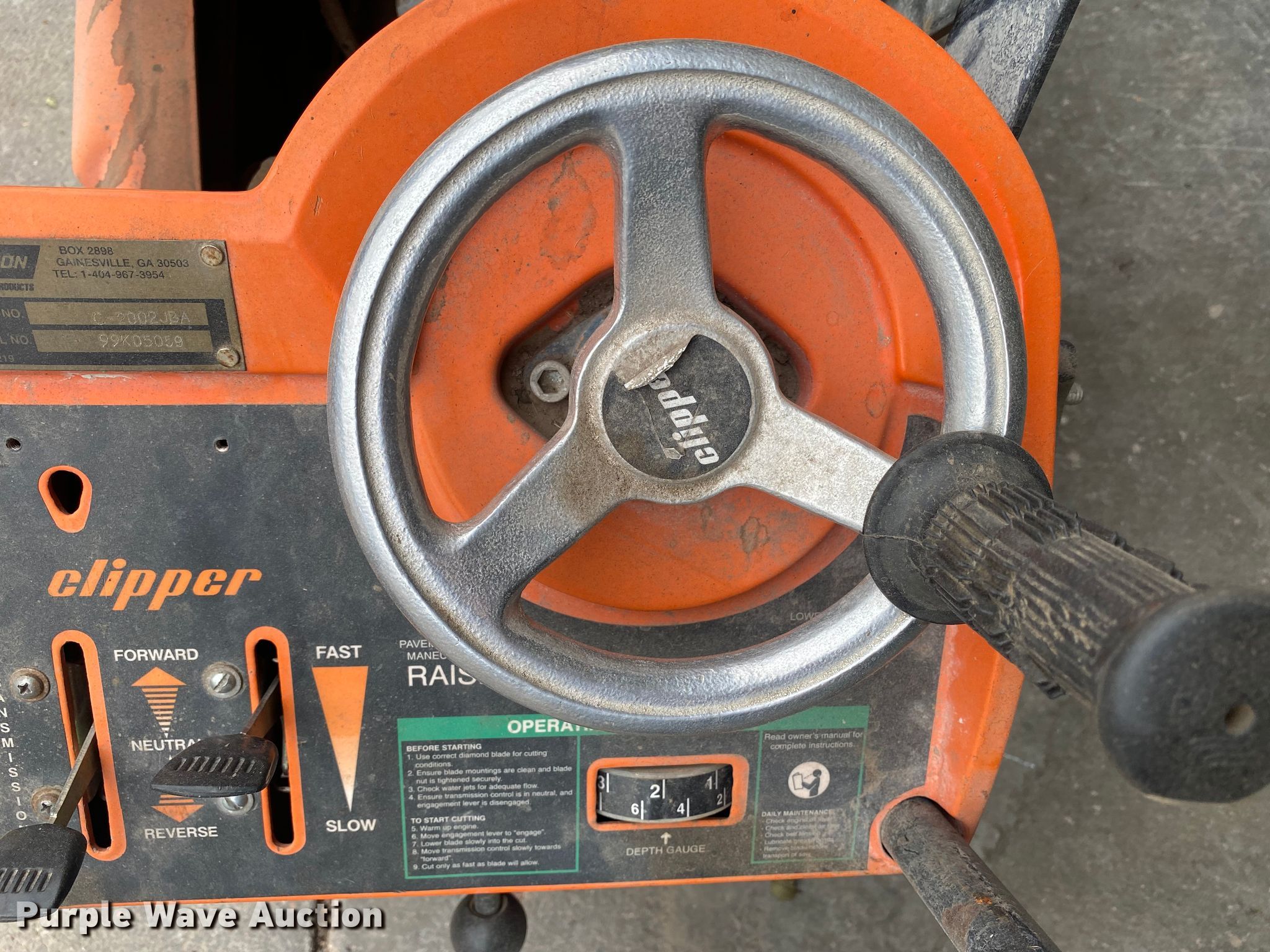 Purple Wave is selling a used Concrete Equip. or Acces. in Kansas. This item is a Norton C-2002JBA concrete saw with the following: Serial: 99K05059, 14" diameter blade, Honda GX620 gas motor