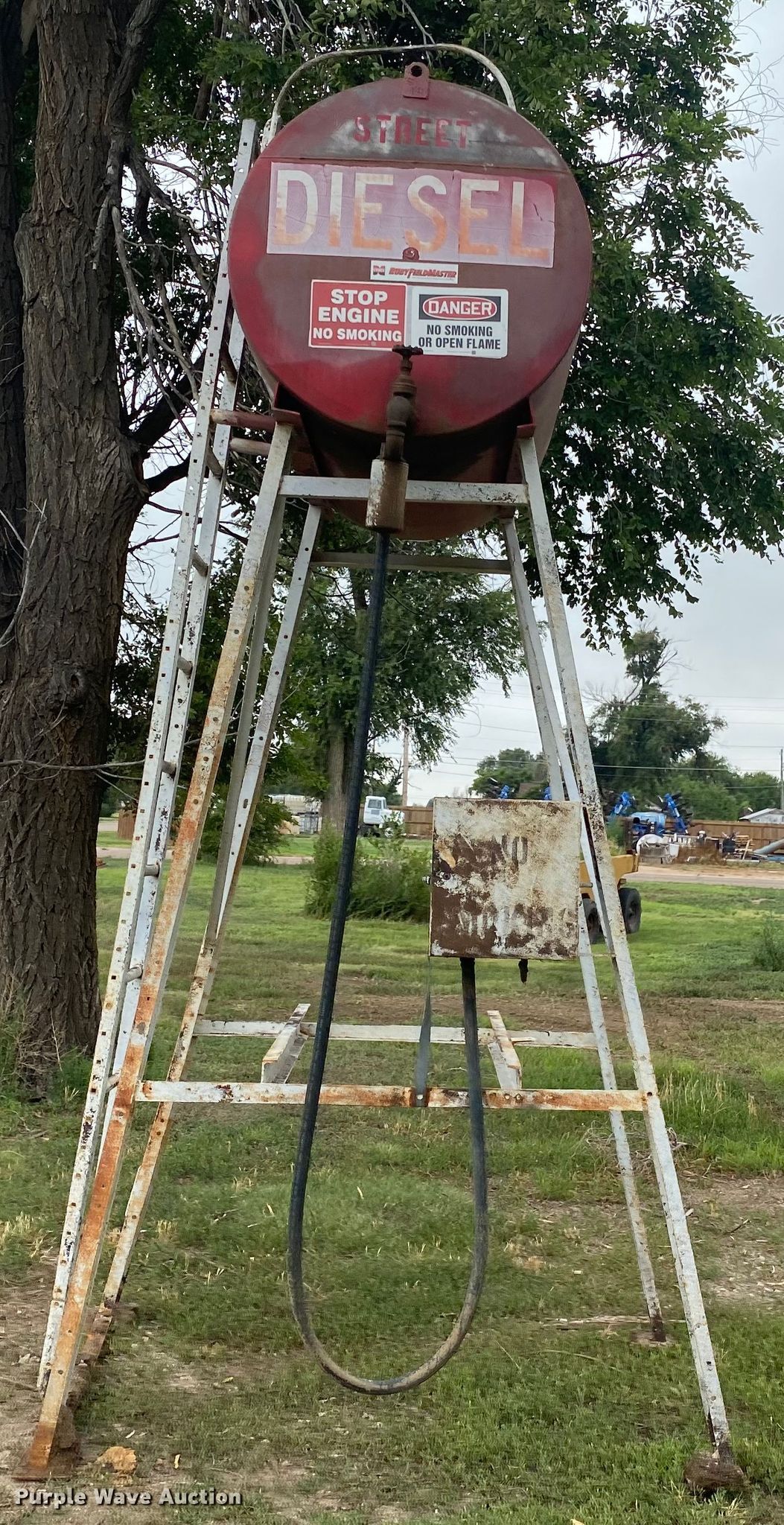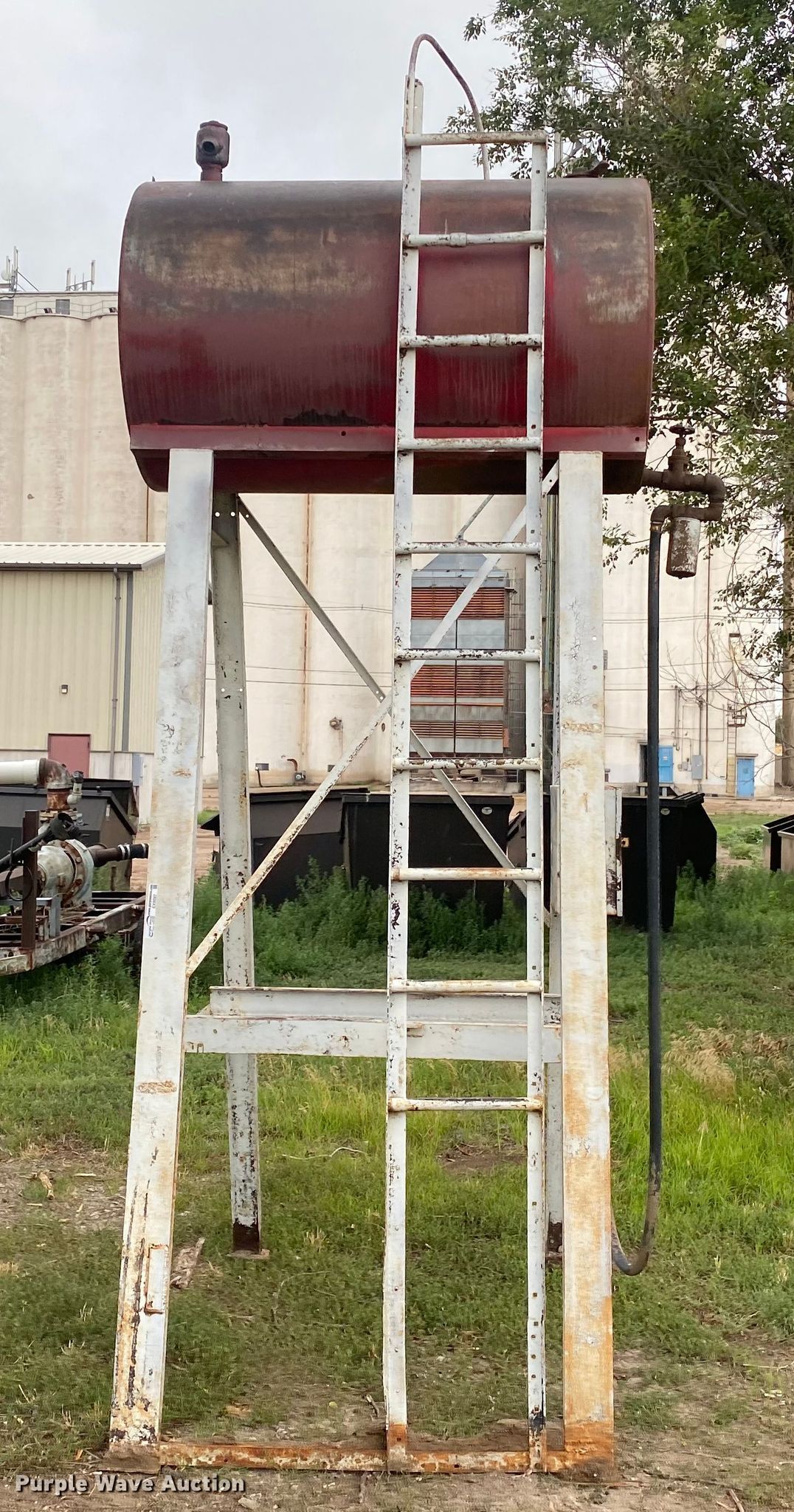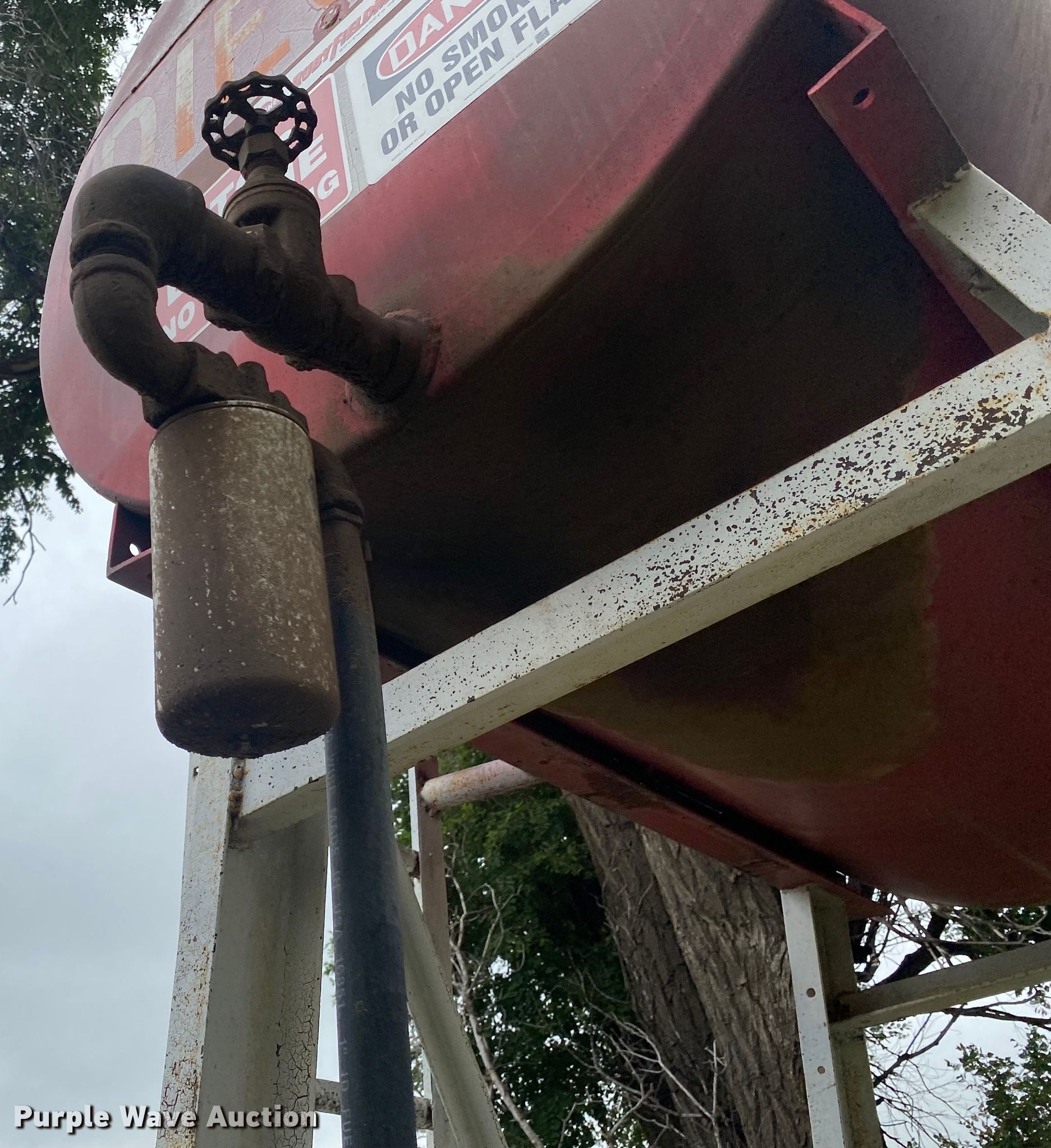 Purple Wave is selling a used Fuel and Lube in Kansas. This item is a Diesel tank with the following: 12'H, Approximately 300 gallons capacity