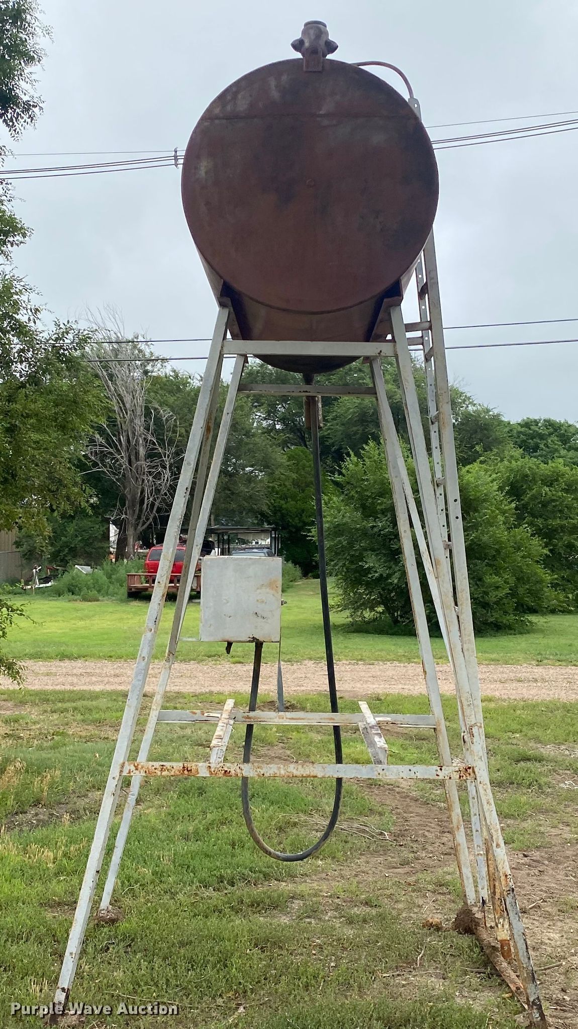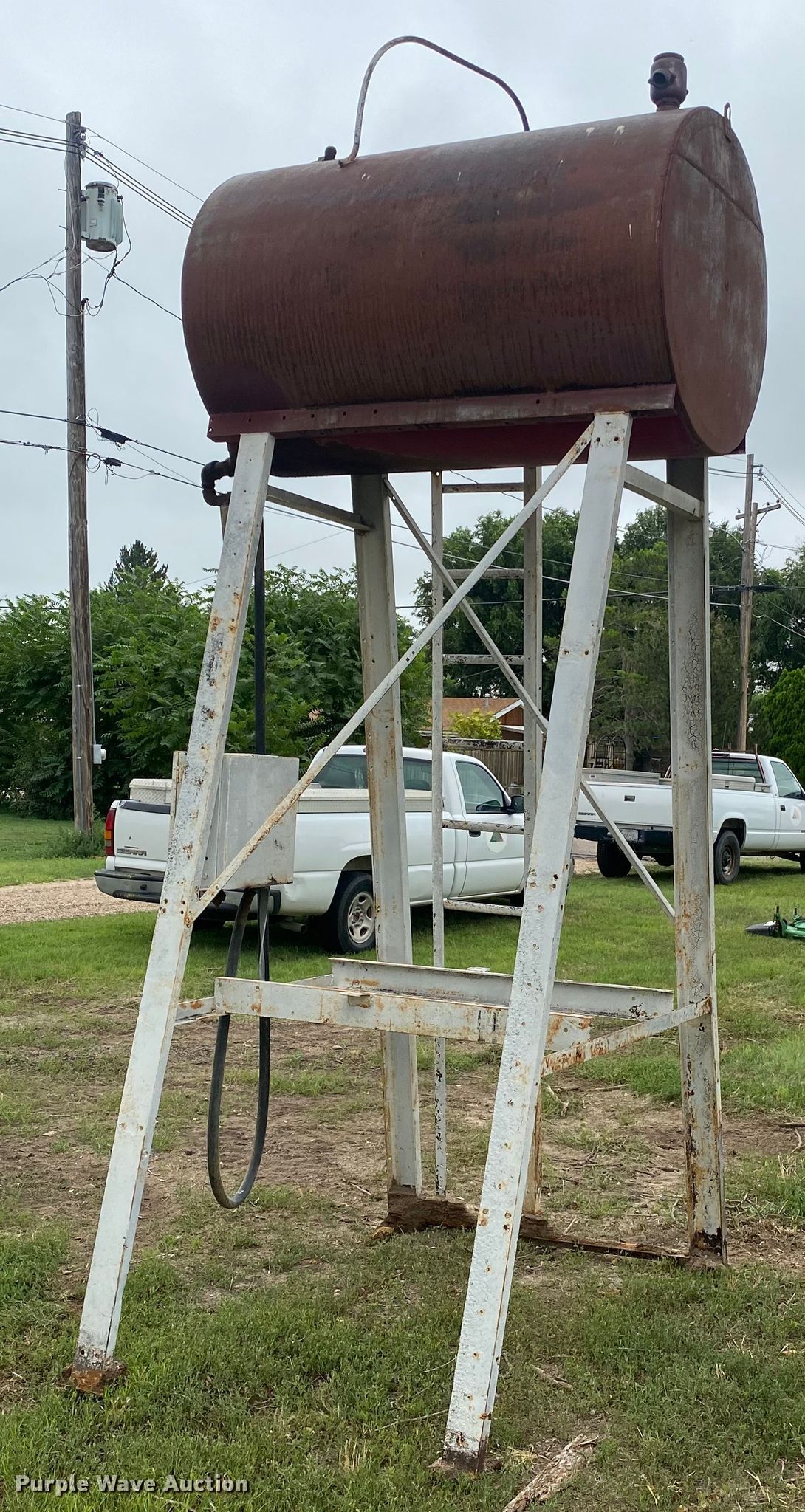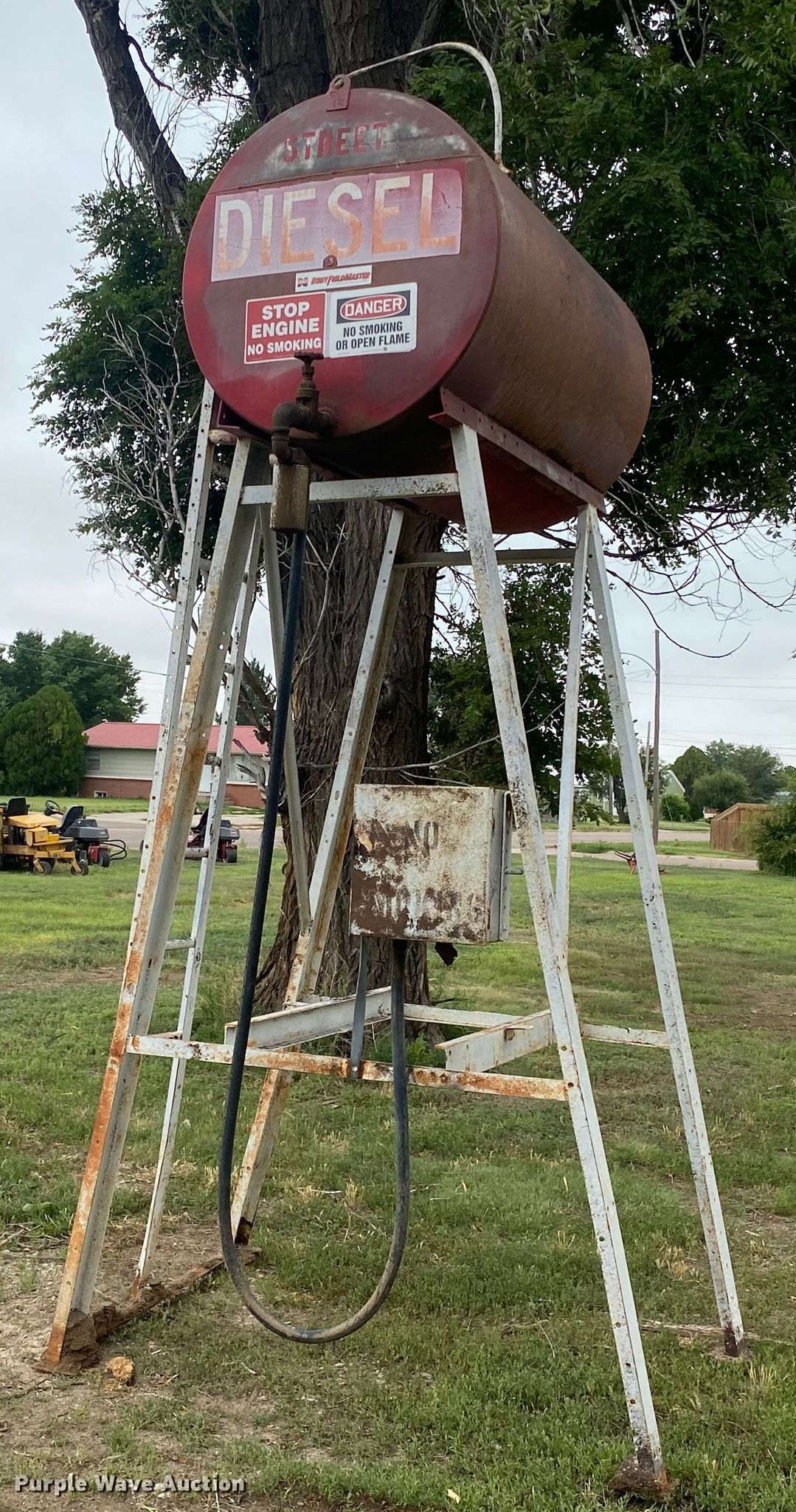Purple Wave is selling a used Fuel and Lube in Kansas. This item is a Diesel tank with the following: 12'H, Approximately 300 gallons capacity