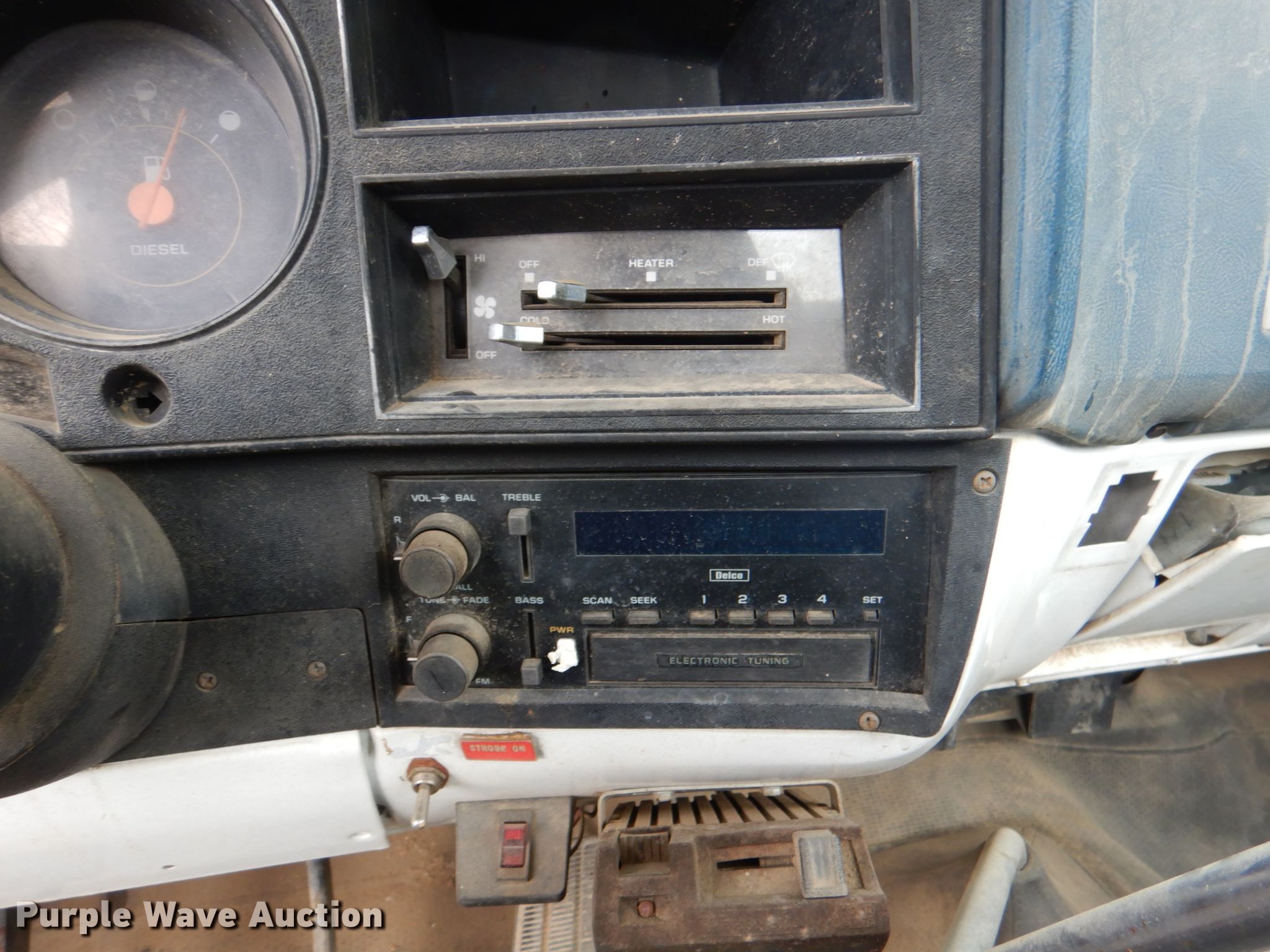 1989 GMC R3500 bucket truck. 59,759 miles on odometer. Engine Displacement: 6.2L V8 OHV 16V, Cylinders: 8, Fuel type: Diesel. Transmission Manual, Speed: 4. Chassis Axles: Single, Suspension: Spring, Brakes: Hydraulic. Interior AC, Heat. Operational Bed Knapheide, Serial: 46036, Length: 9', Width: 87", Boom 1982 Versalift SHV, Serial: 48239, Maximum lift height: 28', Boom controls Ground, Platform/ basket.. Tires Size: LT235/85R16. Notes Needs battery, Non-operational unit. Oklahoma title. Title distribution may be delayed up to 14 days from verification of funds. 1GDJR34J4KF700405. City of Poteau. 3001 Scholars Rd. Poteau, OK 74953