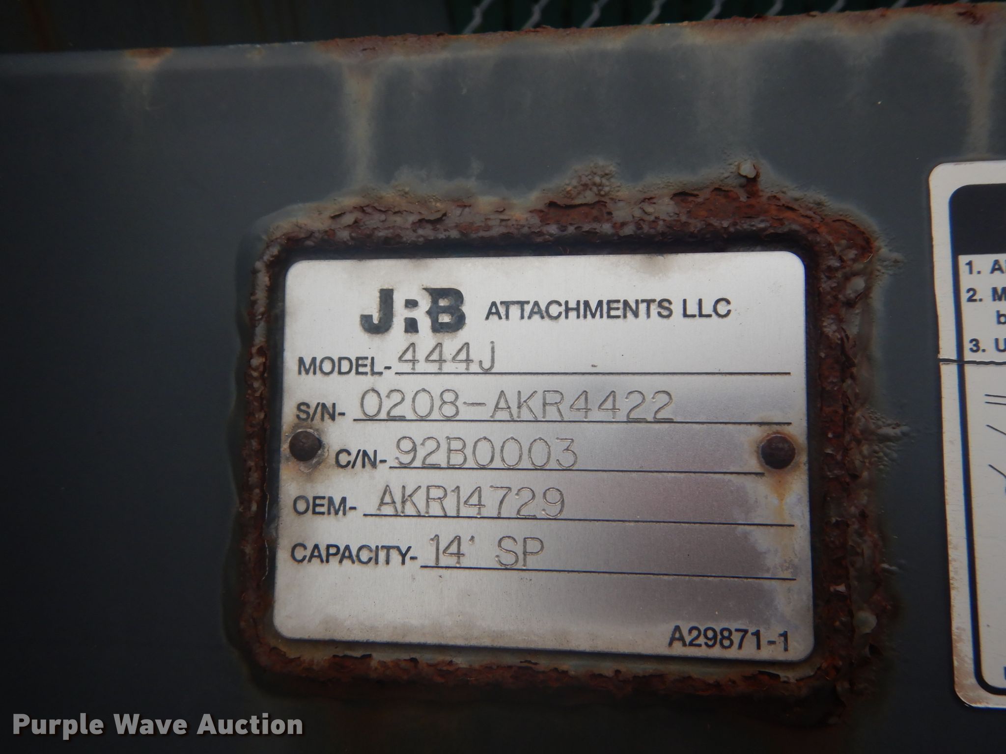 Purple Wave is selling a used Wheel Loader Attach. in Missouri. This item is a JRB 444J snow pusher with the following: 14'W, Adjustable rubber scraper, Serial 0208-AKR4422