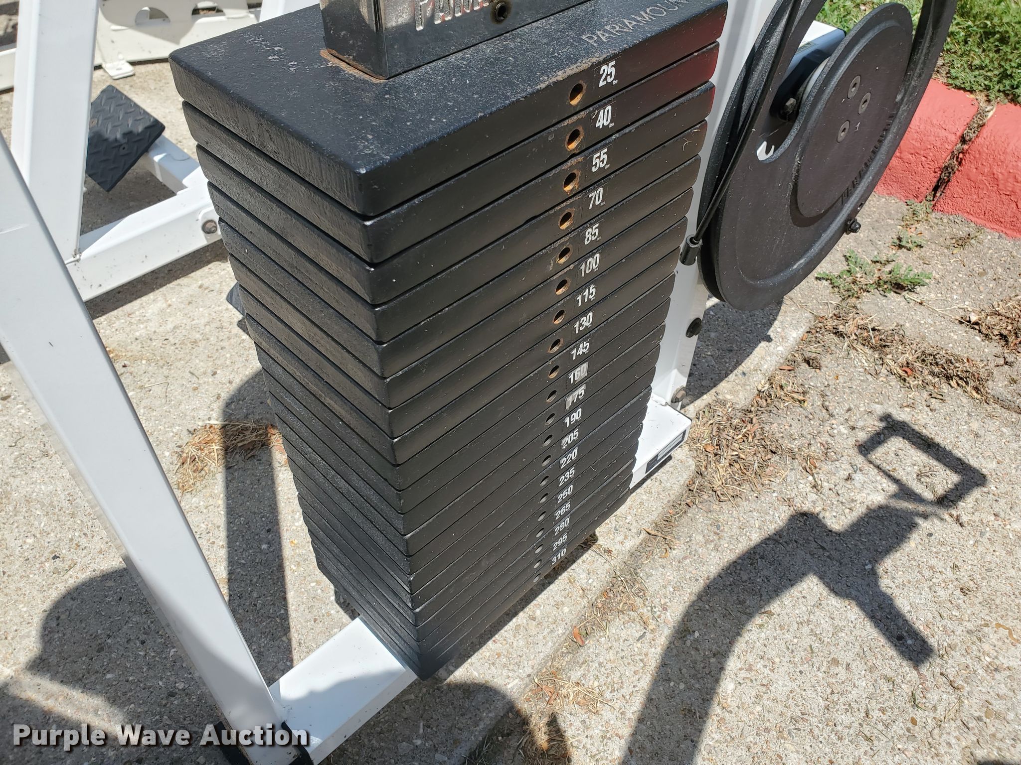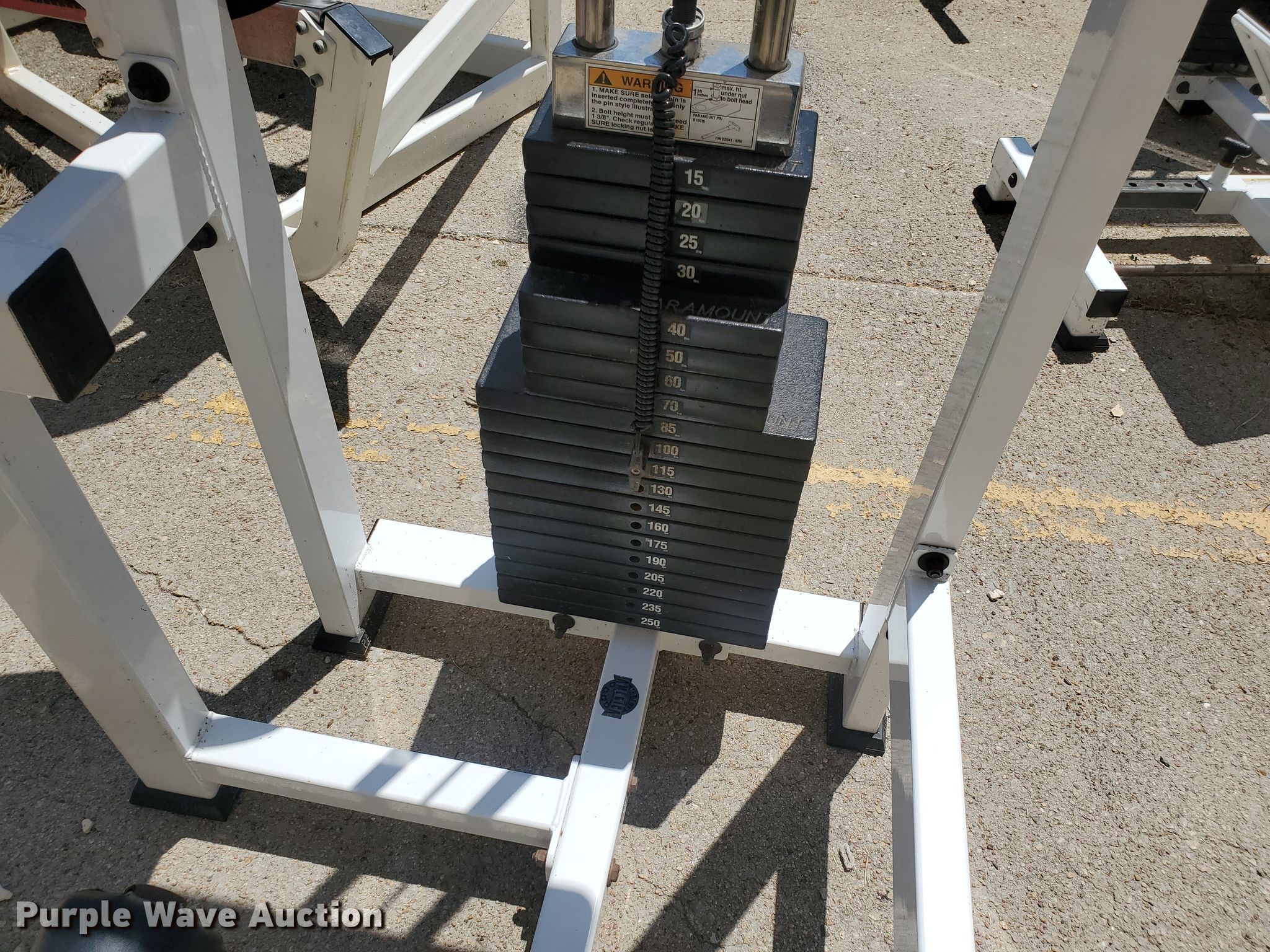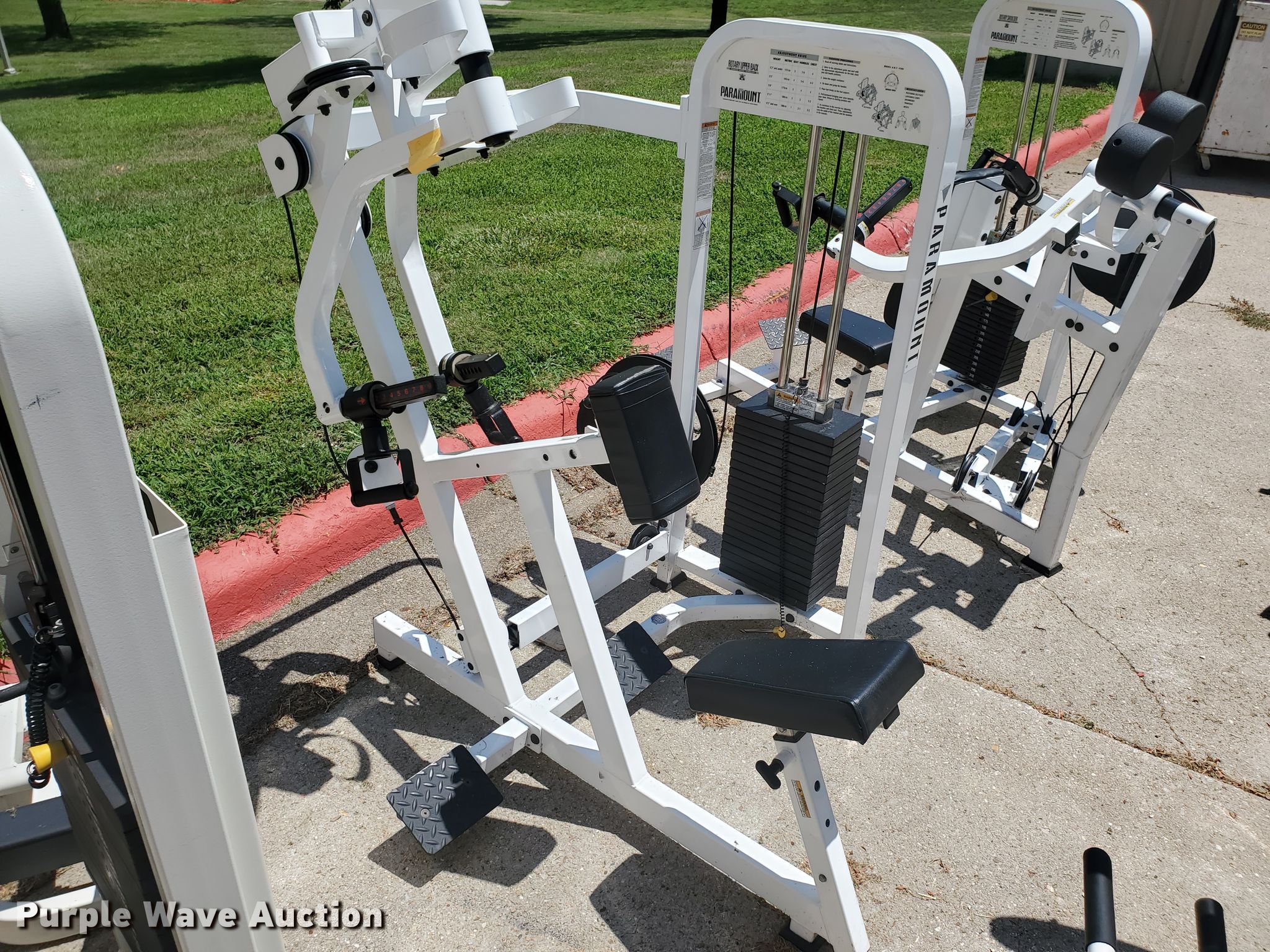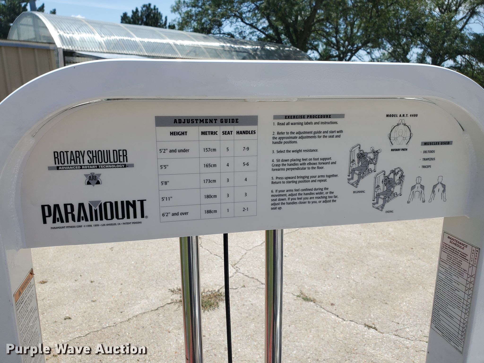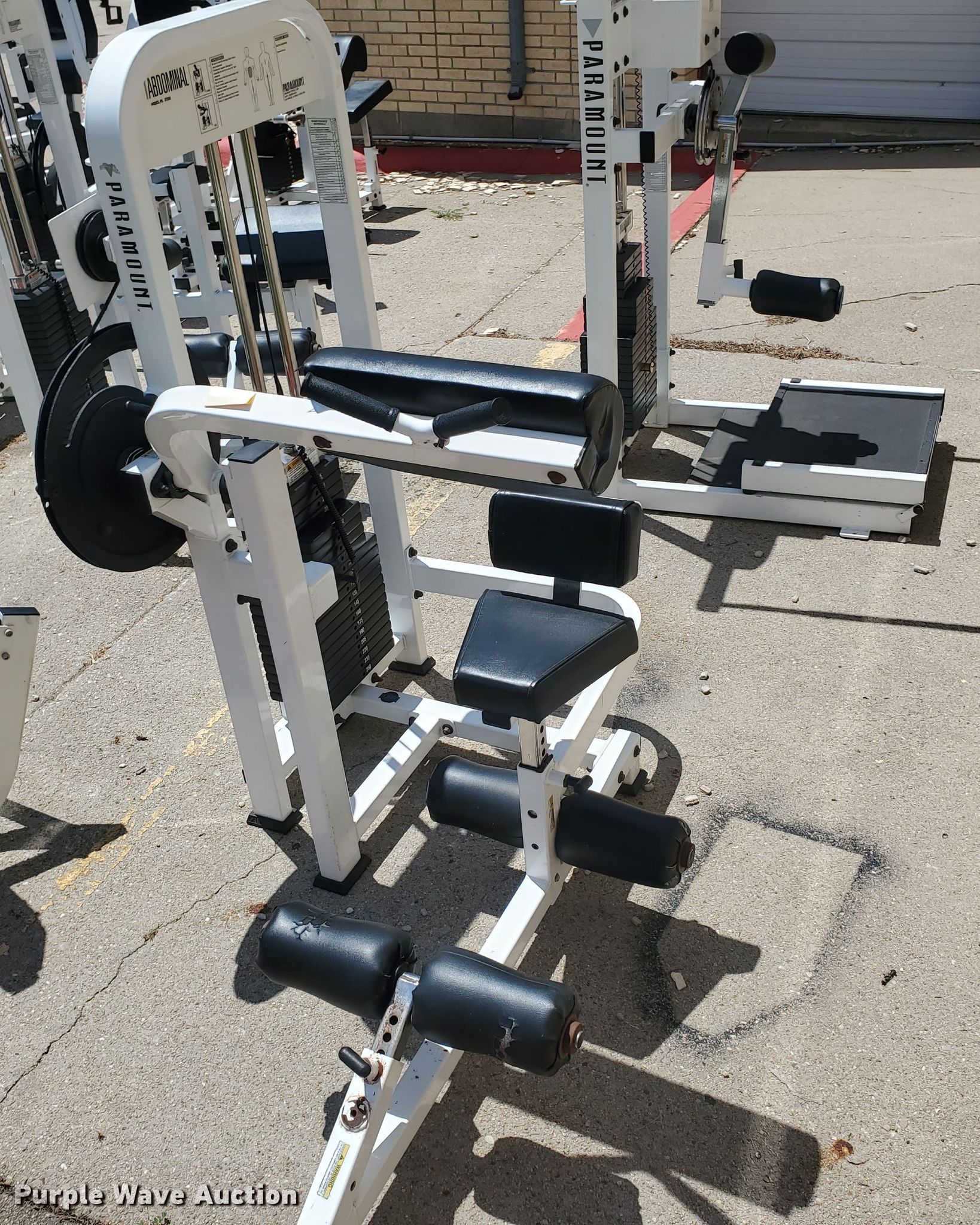 Purple Wave is selling a used Sporting Goods in Kansas. This item is a Exercise equipment with the following: Paramount rotary shoulder machine, Cybex rotary calf machine, Paramount abdominal machine, Paramount rotary upper back machine