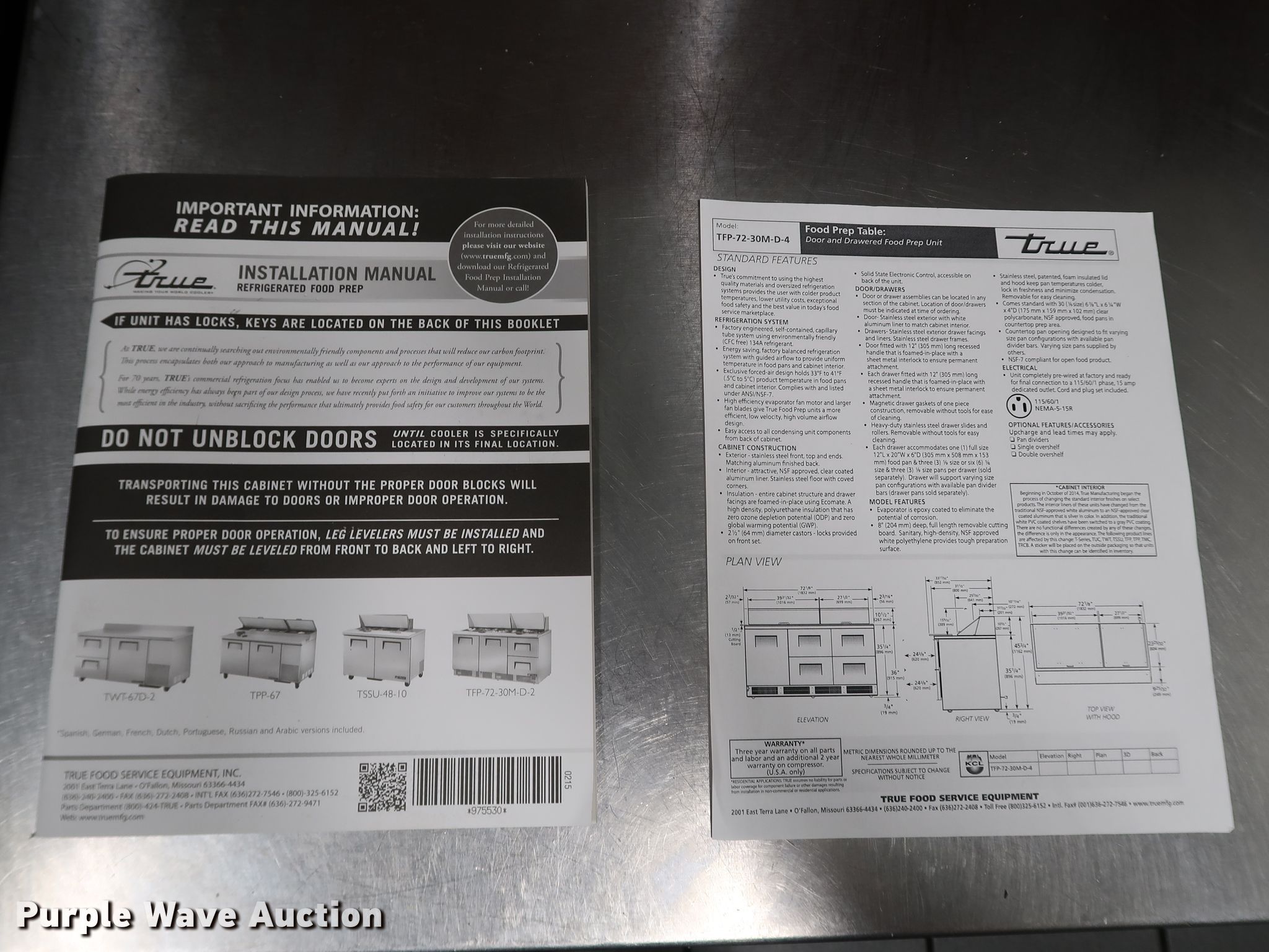 - True prep table and food cooler