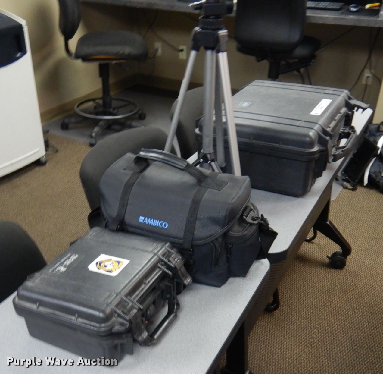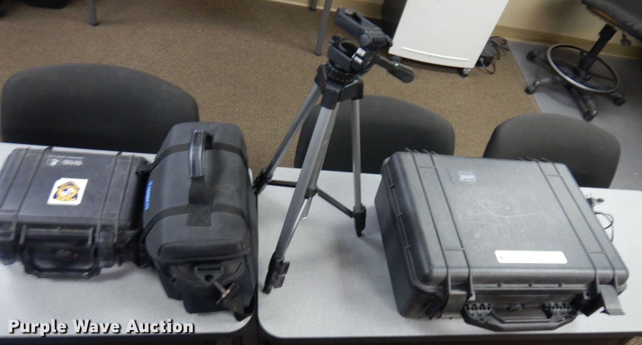 Purple Wave is selling a used Electronics in Oklahoma. This item is a AID U-2225 audio intelligence device with the following: Tripod, (2) camcorders included, Serial: 0033002, Unknown operating condition
