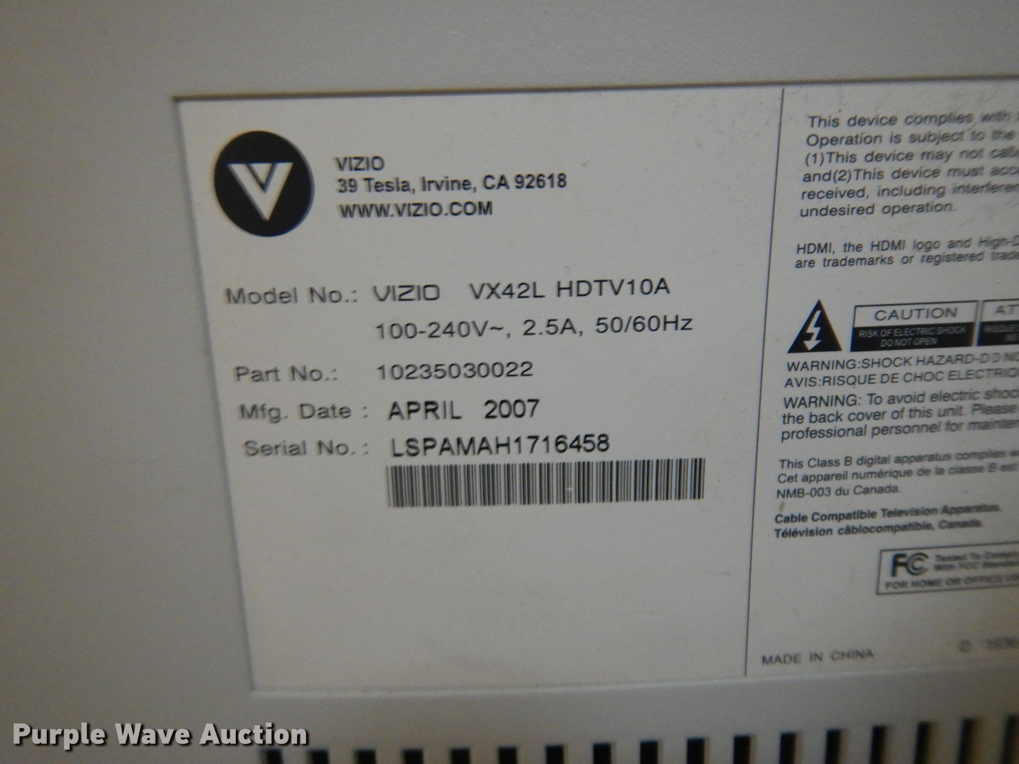 2007 Vizio VX24L 42" television | SOLD!August 10 Government Auction