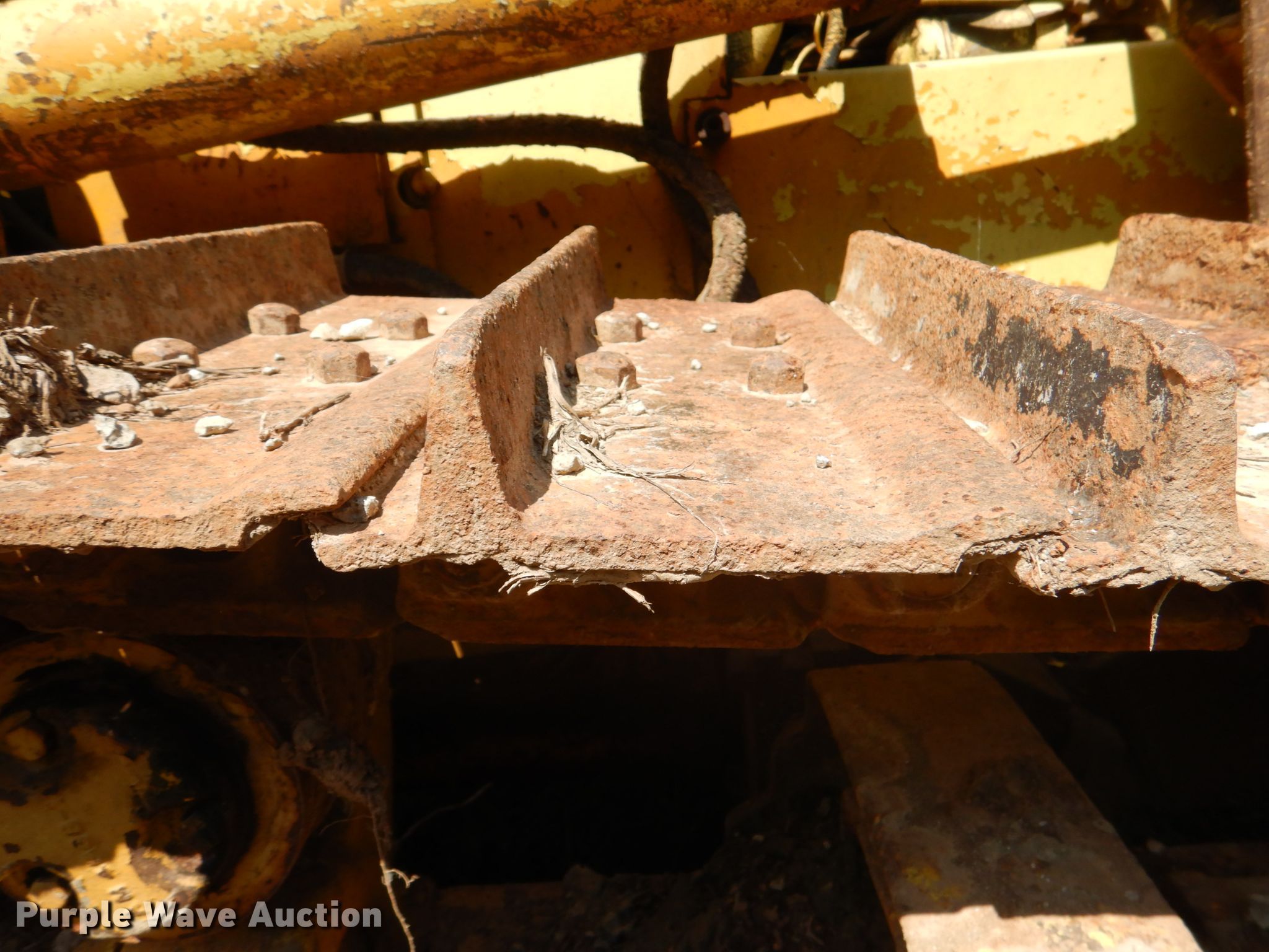 Allis-Chalmers dozer. 1,925 hours on meter. Engine Allis-Chalmers 2200, Serial: 2D-26755, Cylinders: 4, Fuel type: Diesel. Transmission Direct-drive. Operators station Canopy, Steering: Clutch brake. Operational Dozer blade Type: Straight, Width: 7' 6" W, Attachments Ripper. Tracks Width: 14", Grouser pads: Single, Bottom rollers: 5. Notes Non-operational unit. Howe, OK 74940