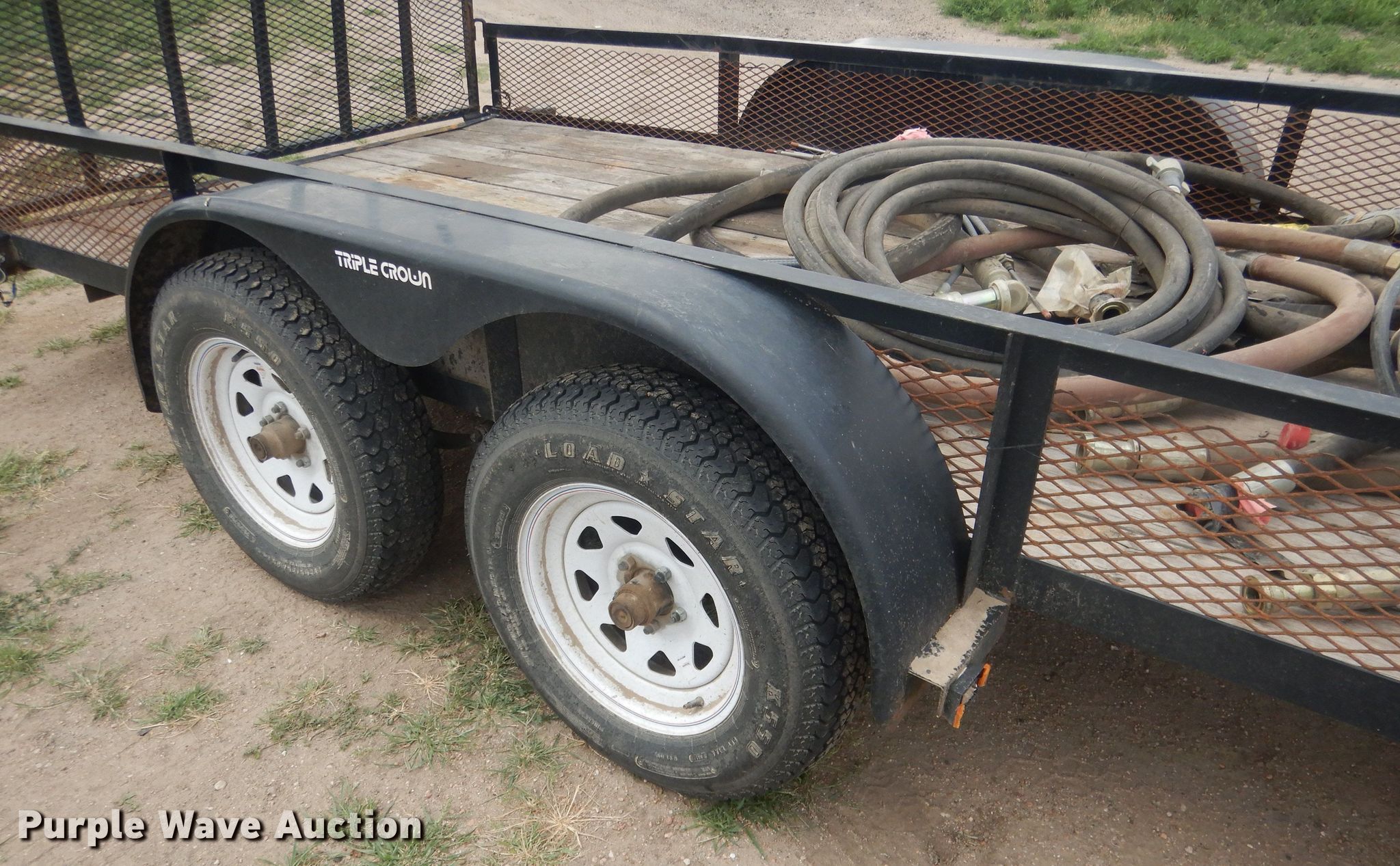2018 Gator Tail Triple Crown utility trailer. Dimensions. Deck: 16' L x 76" W, Side height: 13", Ramps: Manual Length: 48". Operational Deck type: Wood. Chassis Ball hitch: 2 5/16", Landing gear: Single, Suspension: Spring, Brakes: Electric, Axles: Tandem, GVWR: 2,990 lbs. Tires Steel wheels, Size: 205/75R15. Notes Contents not included, Serial 7281722. Transfer of ownership documentation will be a bill of sale. 7281722. 35425 Rd 702. Stratton, NE 69043